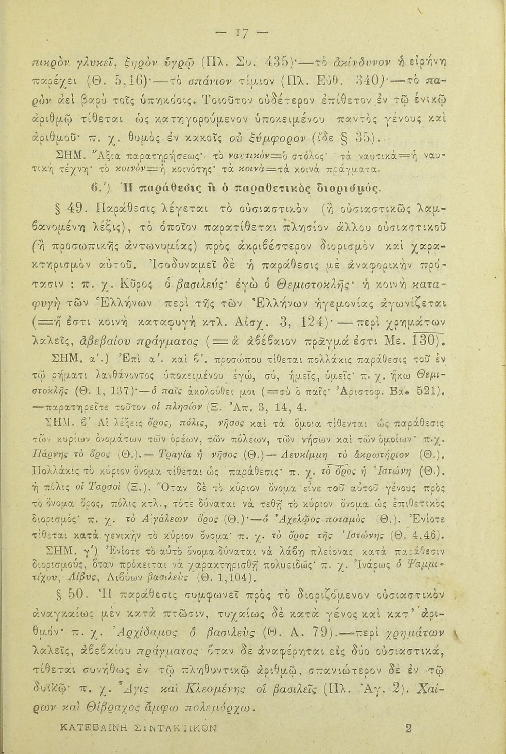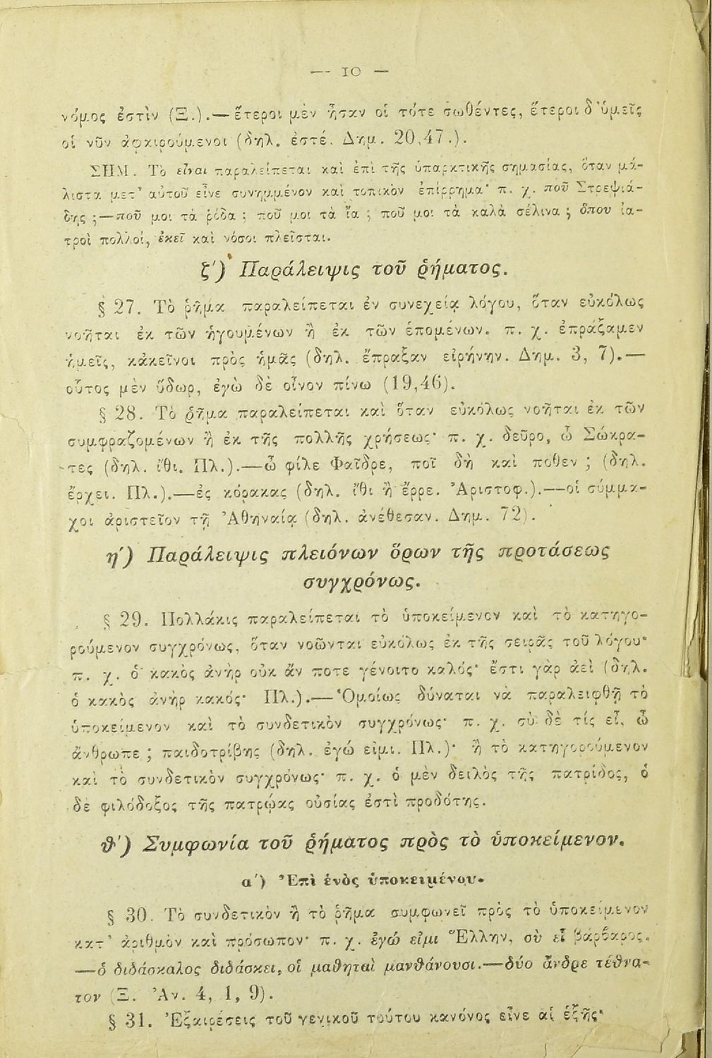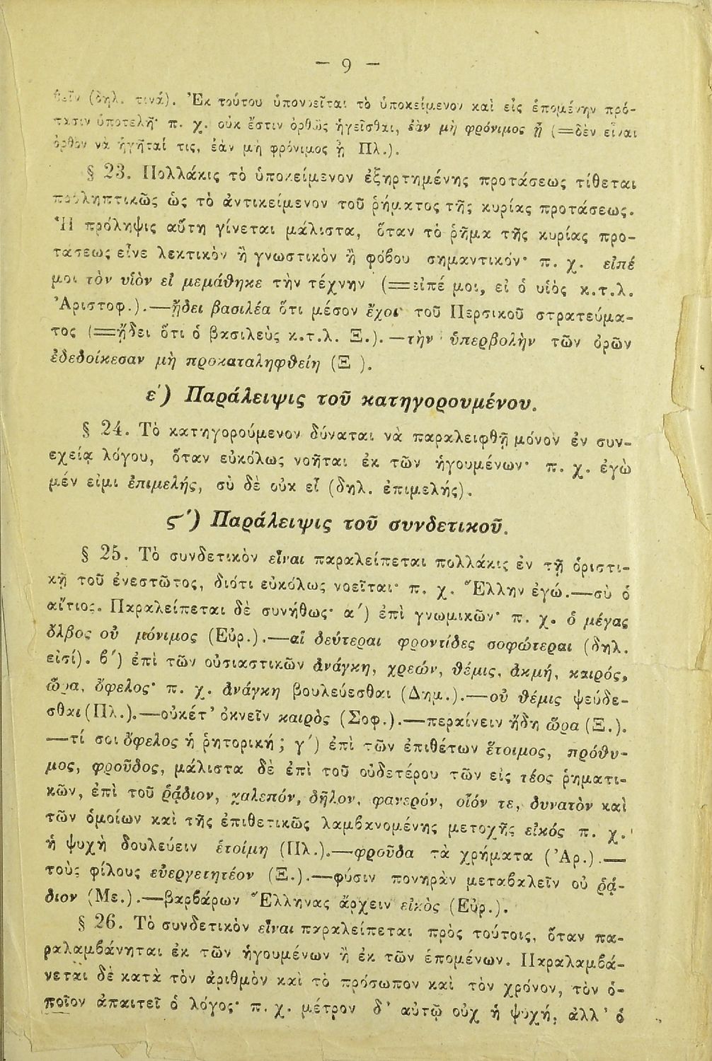 LDR 01028 2200193 4500 035 ## _a20-02754 040 ## _aΚΕΝΕΚ - Εταιρεία Σπουδών Νεοελληνικού Πολιτισμού και Παιδείας 041 ## _ael 100 ## _aΚωνσταντίνος Σ. Κατεβαίνης 110 ## _a2754 245 0# _aΣυντακτικόν της ελληνικής γλώσσης προς χρήσιν των Γυμνασίων 260 ## _aΑθήνα _bΙωάννης Δ. Κολλάρος, Βιβλιοπωλείο της "Εστίας" _c1914 300 ## _a238 _c19 520 ## _aΣχολικό εγχειρίδιο Αρχαίων Ελληνικών Γυμνασίου που εξετάζει τα μέρη του λόγου και την σύνταξή τους. 521 ## _aΓυμνάσιο 522 ## _aΕλλάδα 546 ## _aΚαθαρεύουσα 563 ## _aΜαλακό Εξώφυλλο 650 #4 _aΑντικείμενο _aΠροθέσεις _aΠροσδιορισμοί _aΡήματα _aΥποκείμενο