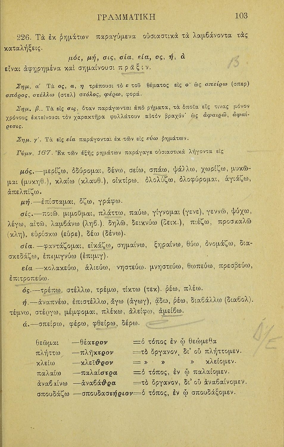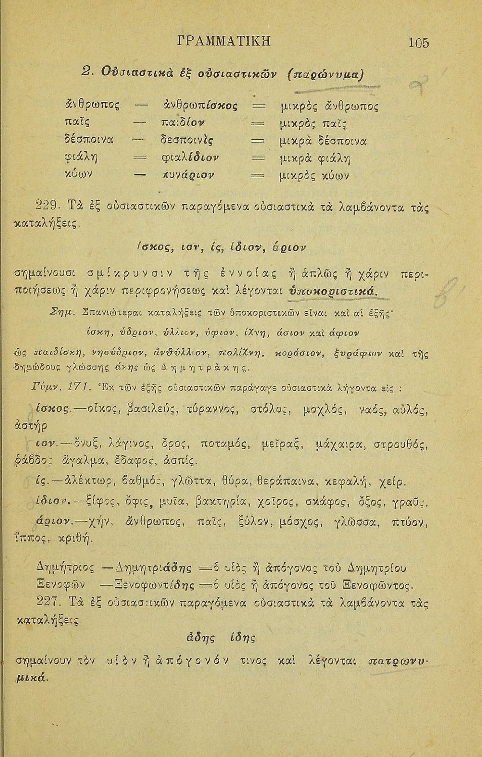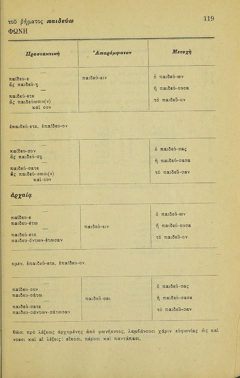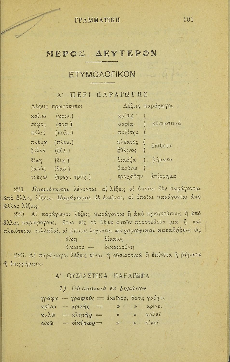 Σχολικό εγχειρίδιο Αρχαίων Ελληνικών Δημοτικού που περιλαμβάνει τους κανόνες γραμματικής και είναι χωρισμένο σε φθογγολογικό, τυπικό και ετυμολογικό μέρος.