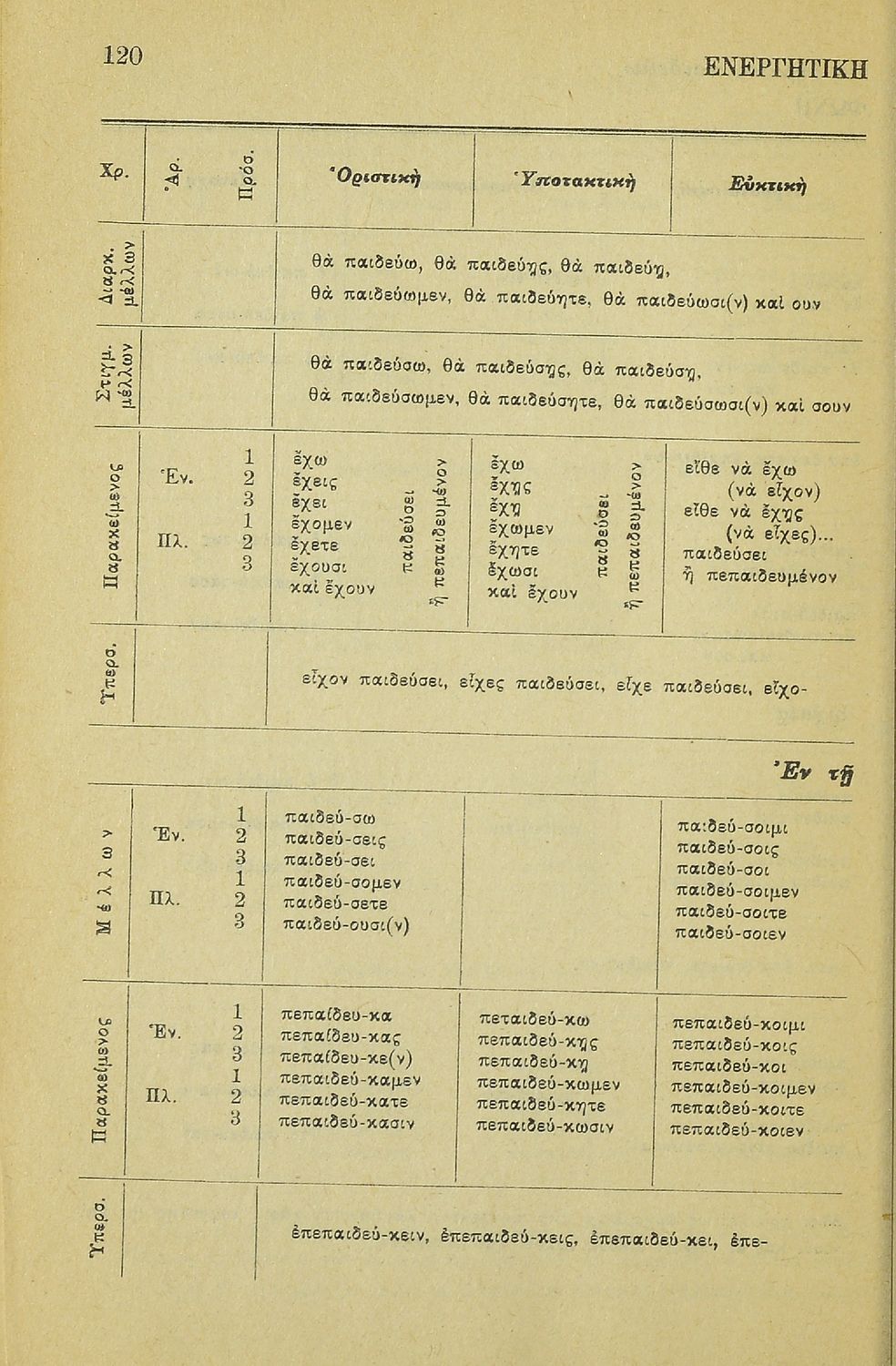 Σχολικό εγχειρίδιο που περιλαμβάνει τη γραμματική της αρχαίας ελληνικής, λεξικό ρημάτων και τους βασικότερους κανόνες του συντακτικού.