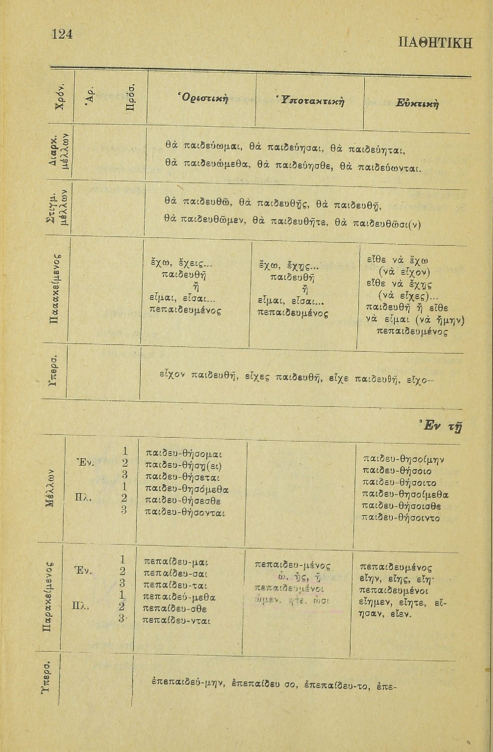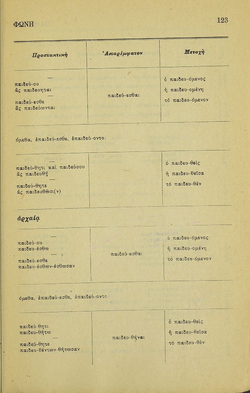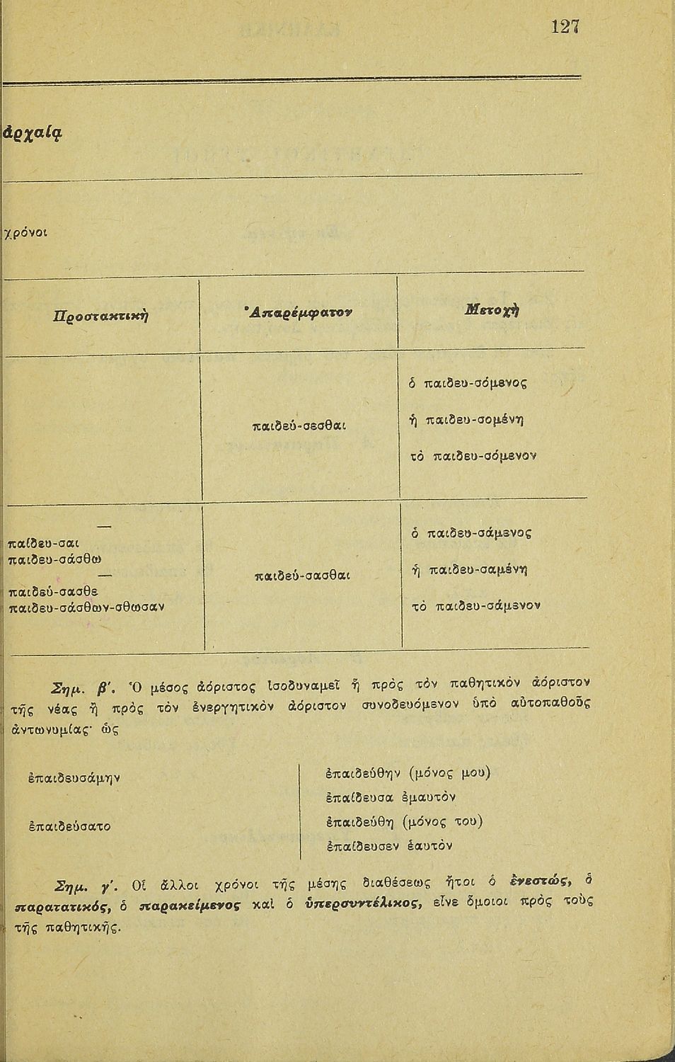Σχολικό εγχειρίδιο Αρχαίων Ελληνικών Δημοτικού που περιλαμβάνει τους κανόνες γραμματικής και είναι χωρισμένο σε φθογγολογικό, τυπικό και ετυμολογικό μέρος.