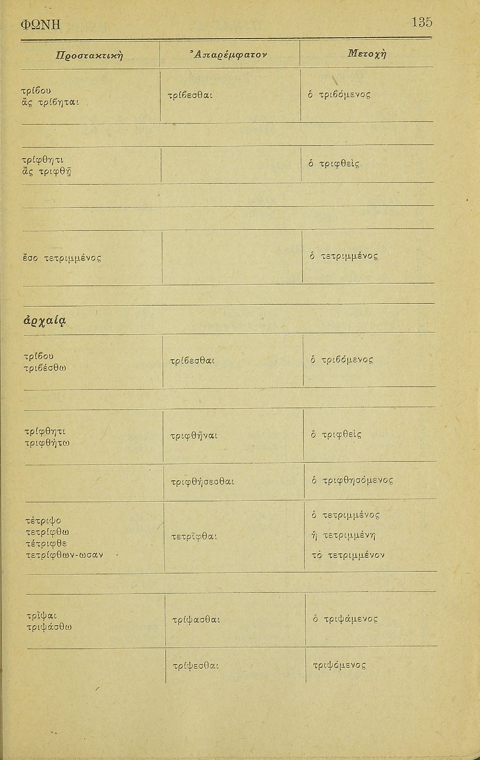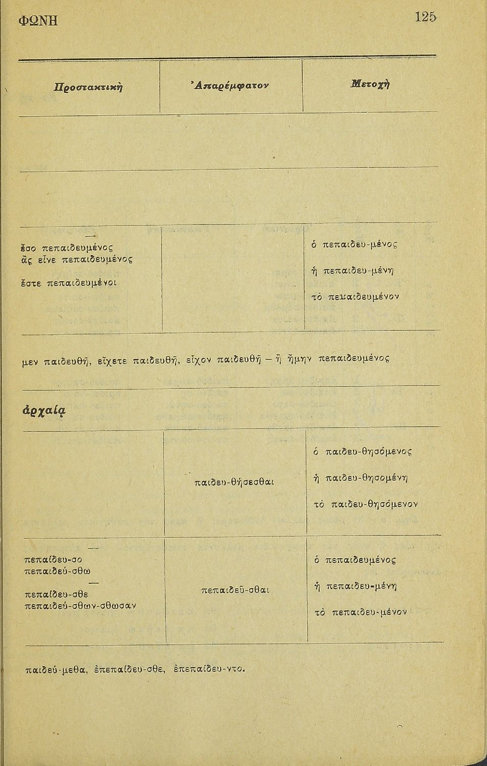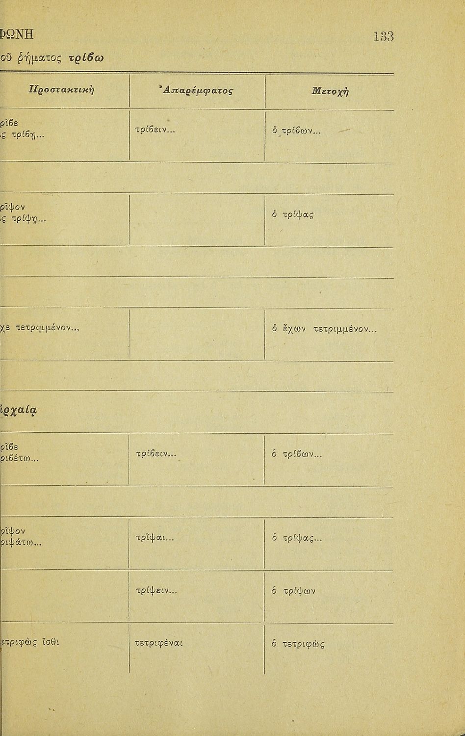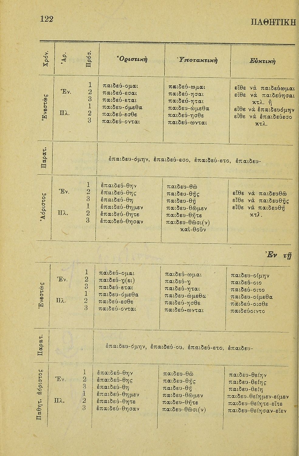 Σχολικό εγχειρίδιο Αρχαίων Ελληνικών Δημοτικού που περιλαμβάνει τους κανόνες γραμματικής και είναι χωρισμένο σε φθογγολογικό, τυπικό και ετυμολογικό μέρος.