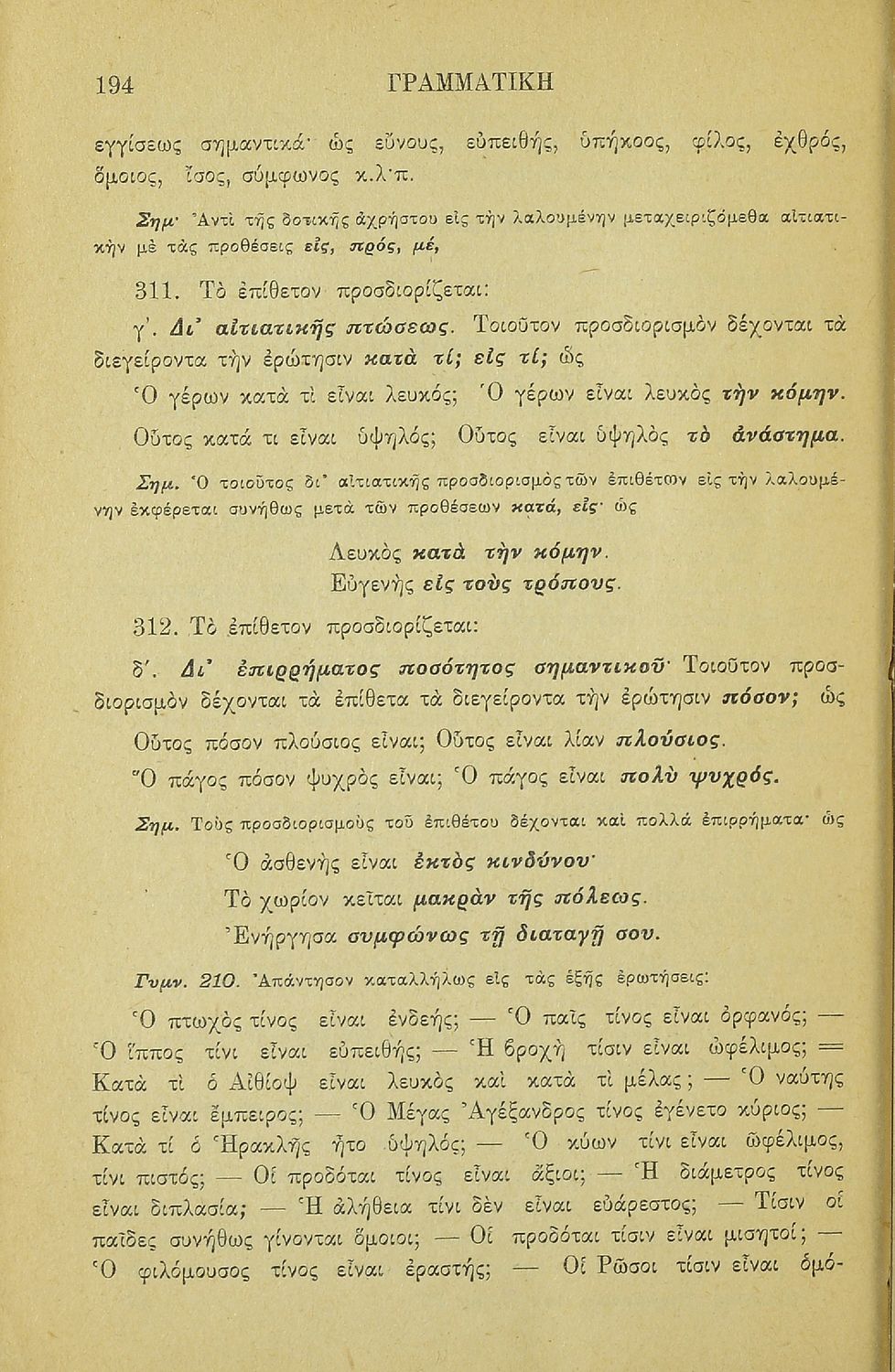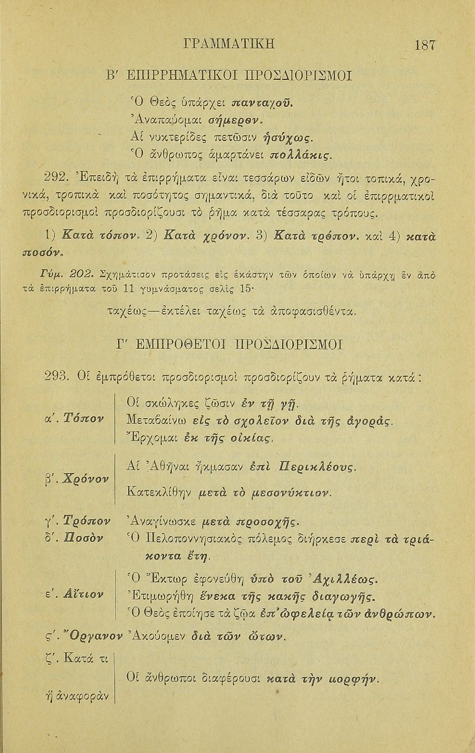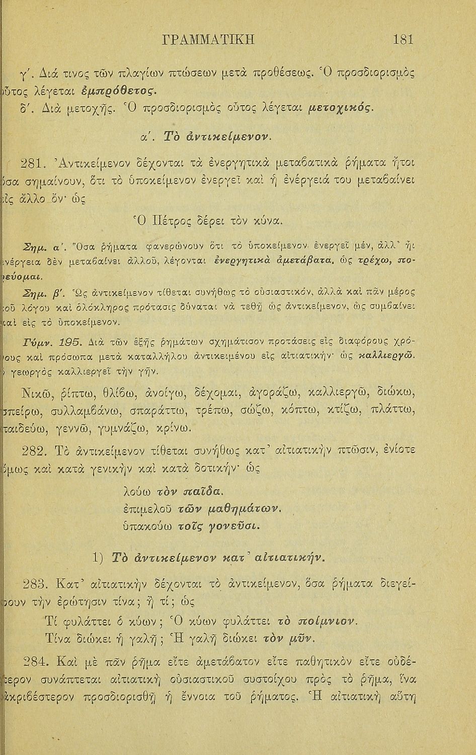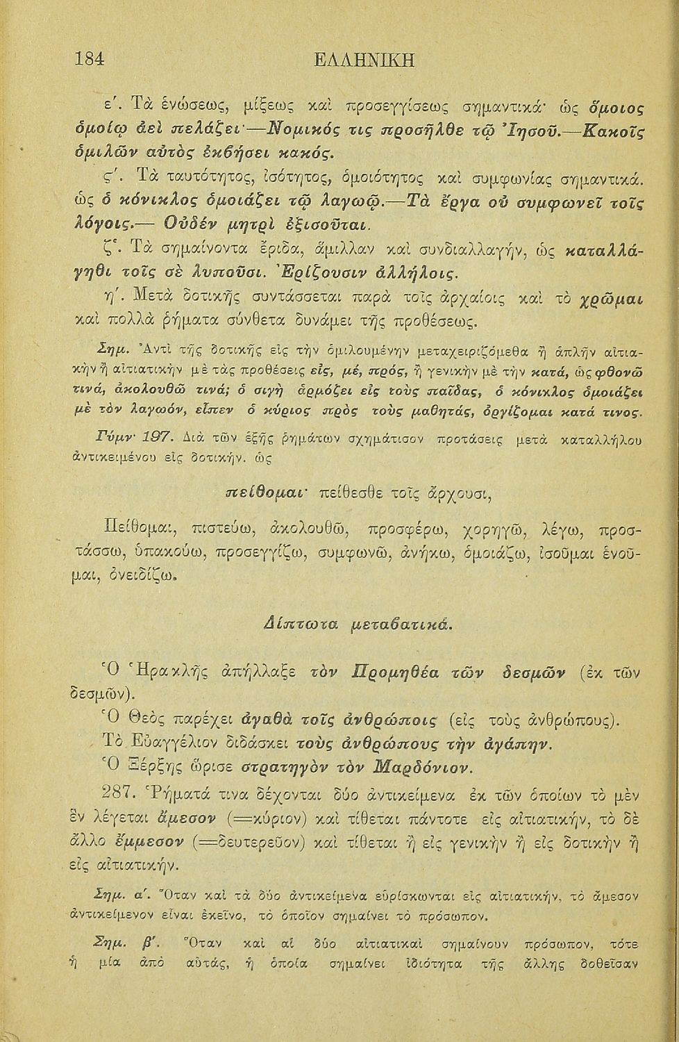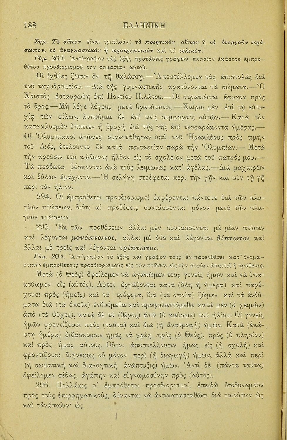 Σχολικό εγχειρίδιο Αρχαίων Ελληνικών για τα Ελληνικά Σχολεία και Παρθεναγωγεία που περιέχει τους κανόνες γραμματικής και είναι χωρισμένο σε φθογγολογικό, τυπολογικό και ετυμολογικό μέρος.