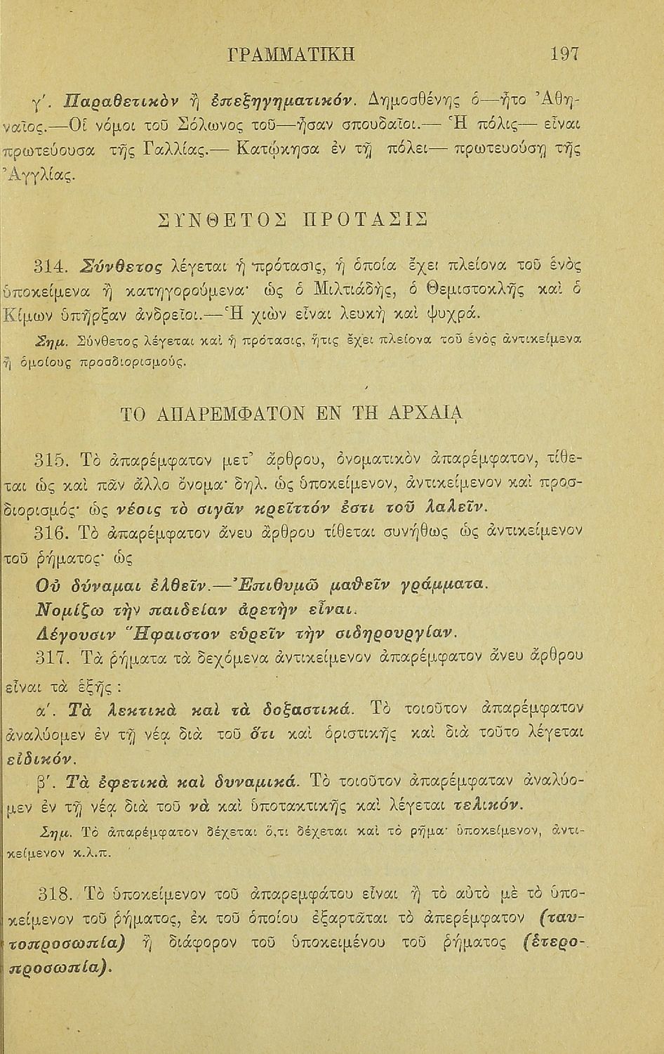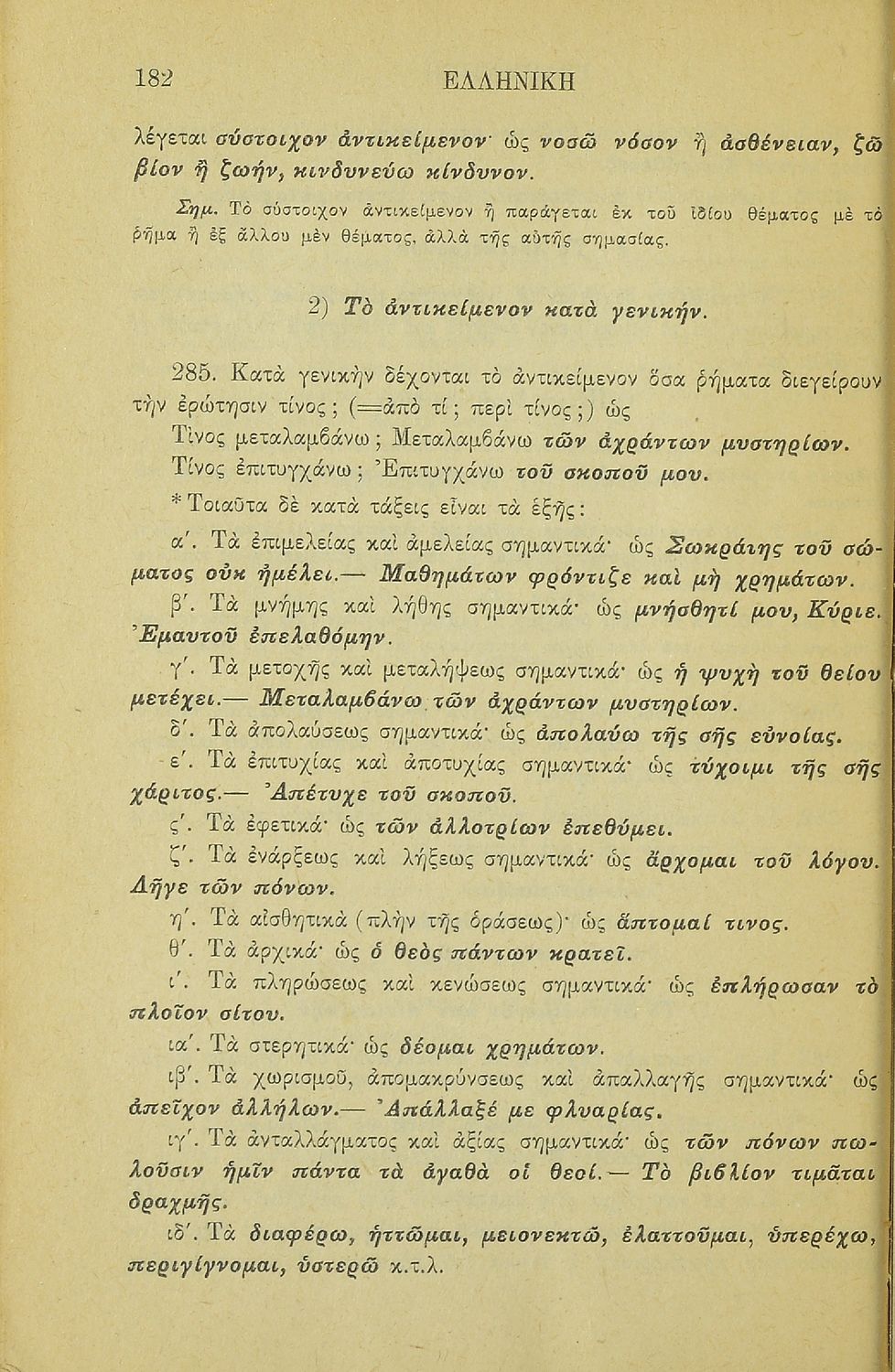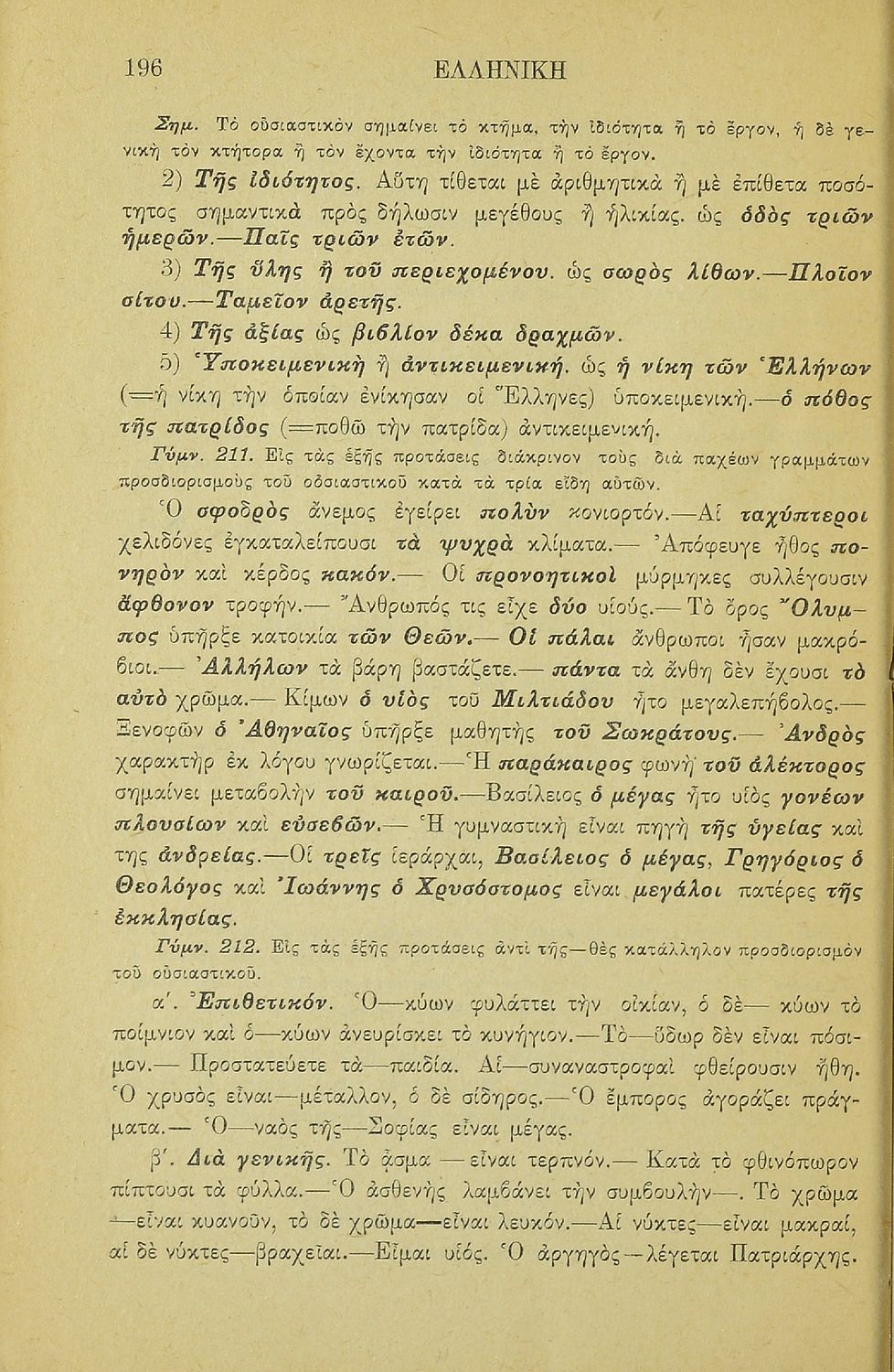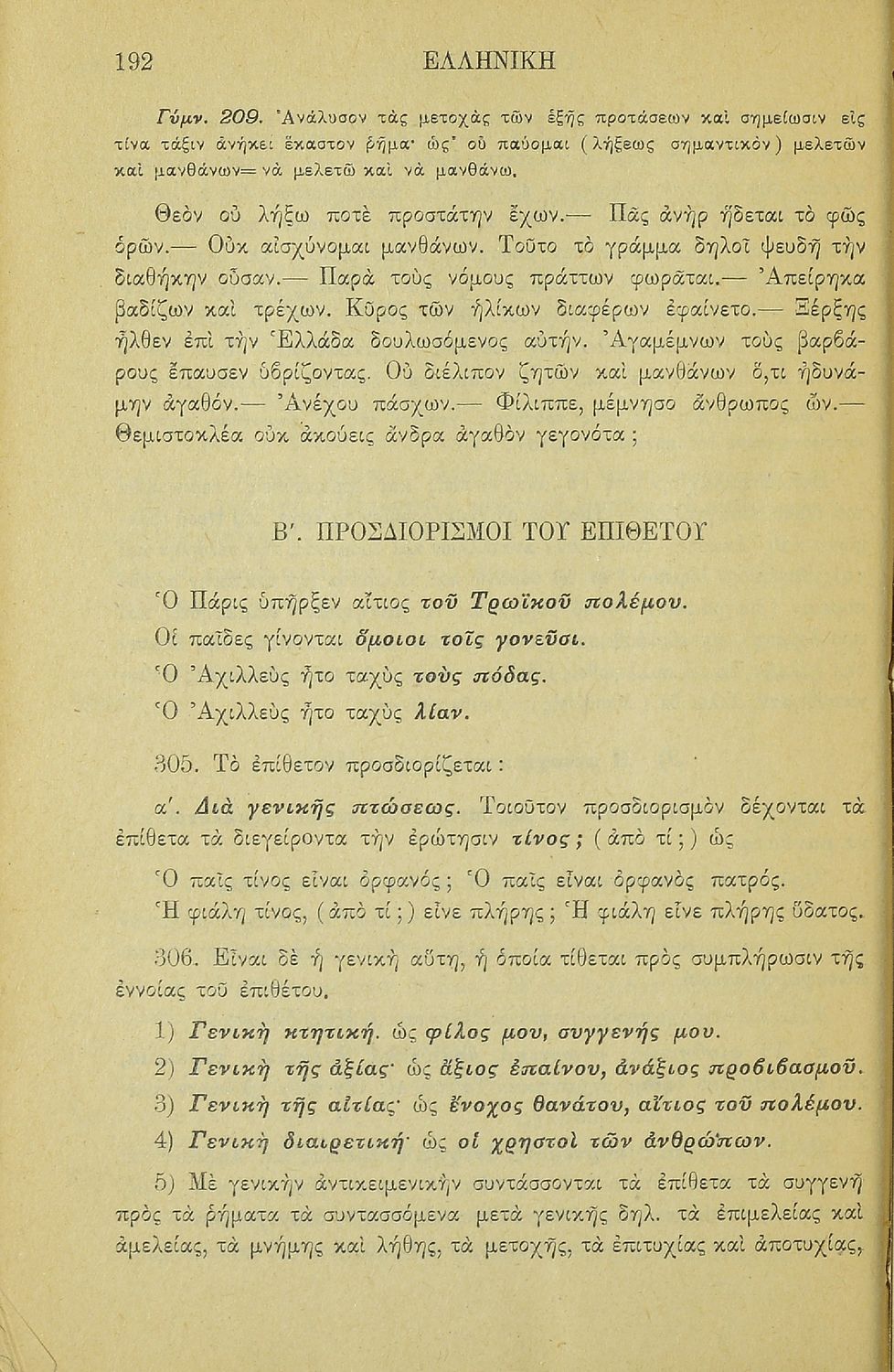 Σχολικό εγχειρίδιο Αρχαίων Ελληνικών για τα Ελληνικά Σχολεία και Παρθεναγωγεία που περιέχει τους κανόνες γραμματικής και είναι χωρισμένο σε φθογγολογικό, τυπολογικό και ετυμολογικό μέρος.
