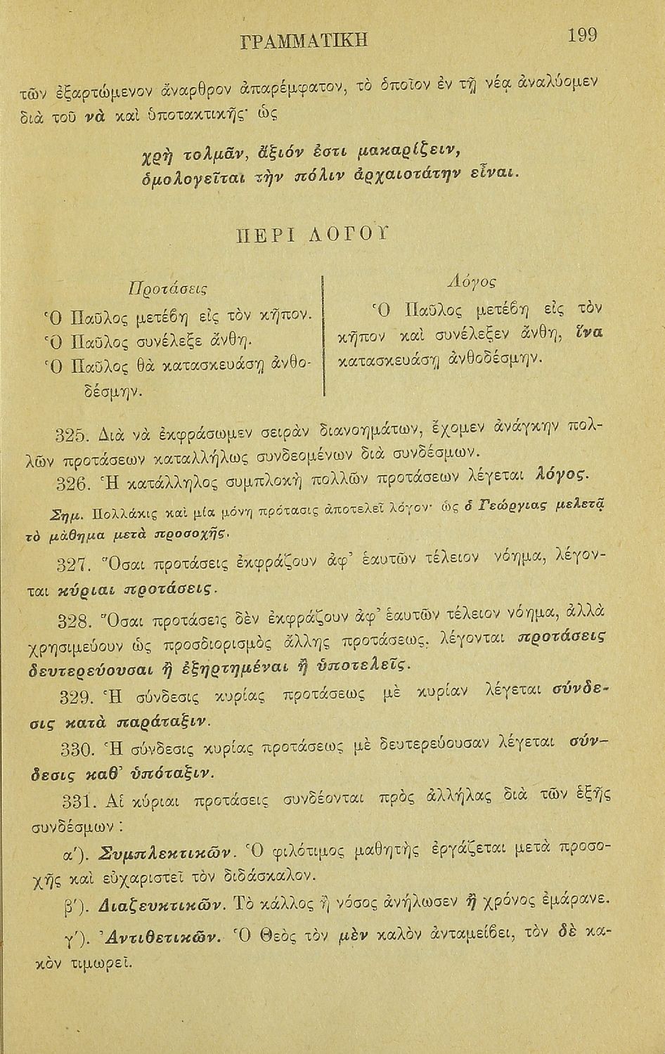 Σχολικό εγχειρίδιο Γ΄ και Δ΄ Δημοτικού που περιέχει τη γραμματικής της νέας ελληνικής. Την έκδοση επιμελήθηκε ο Γ. Λογοθέτης, τέως διευθυντής του επταταξίου δημ. Τμήμ.της Ευαγγελικής Σχολής.
