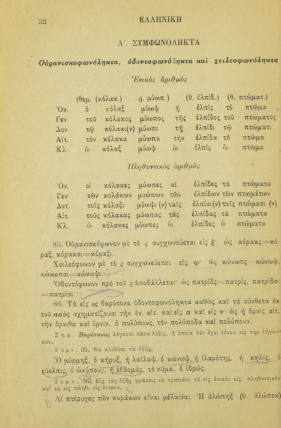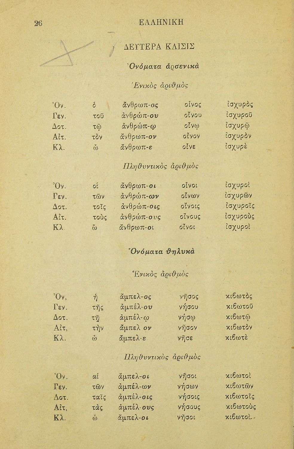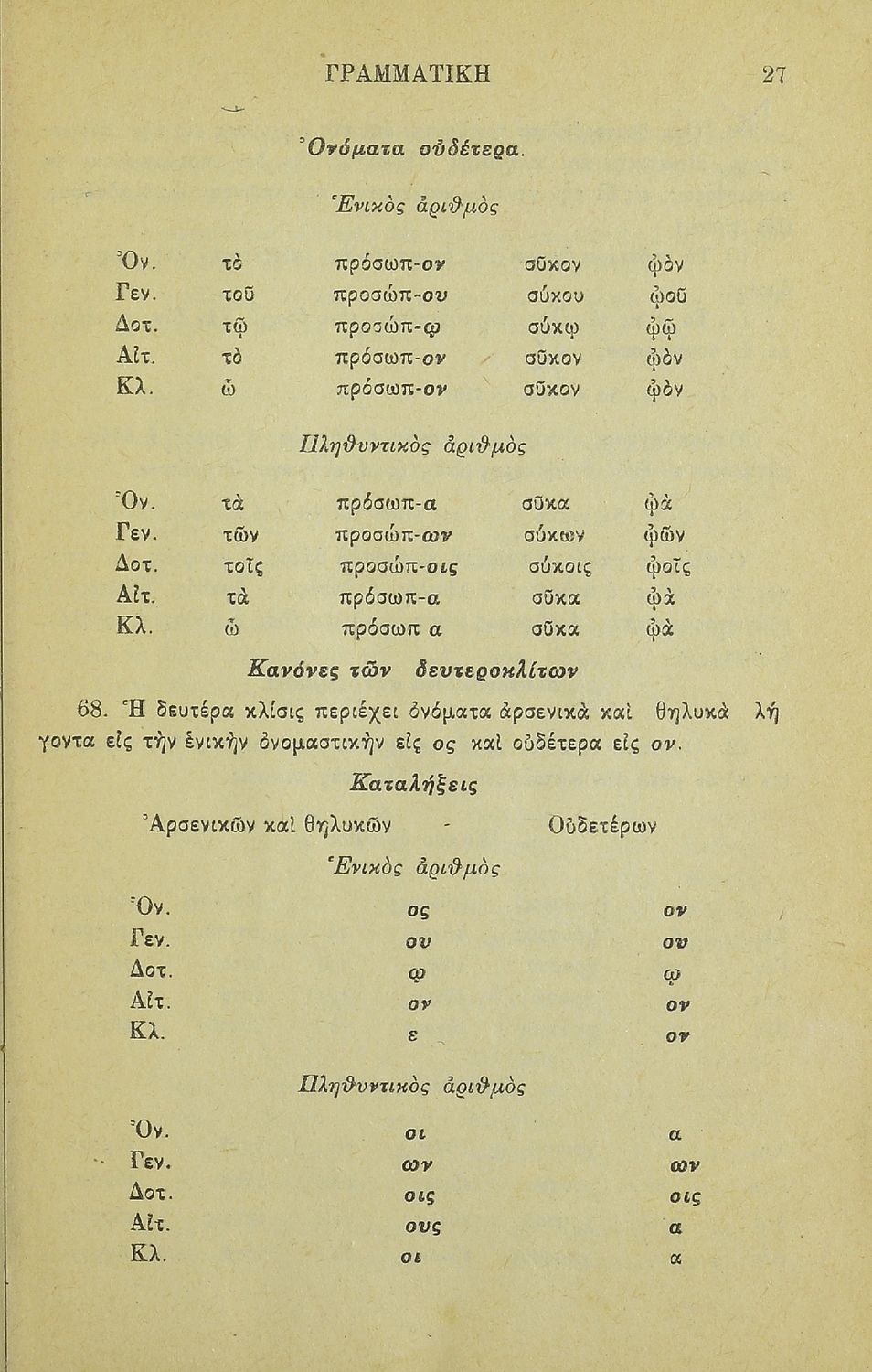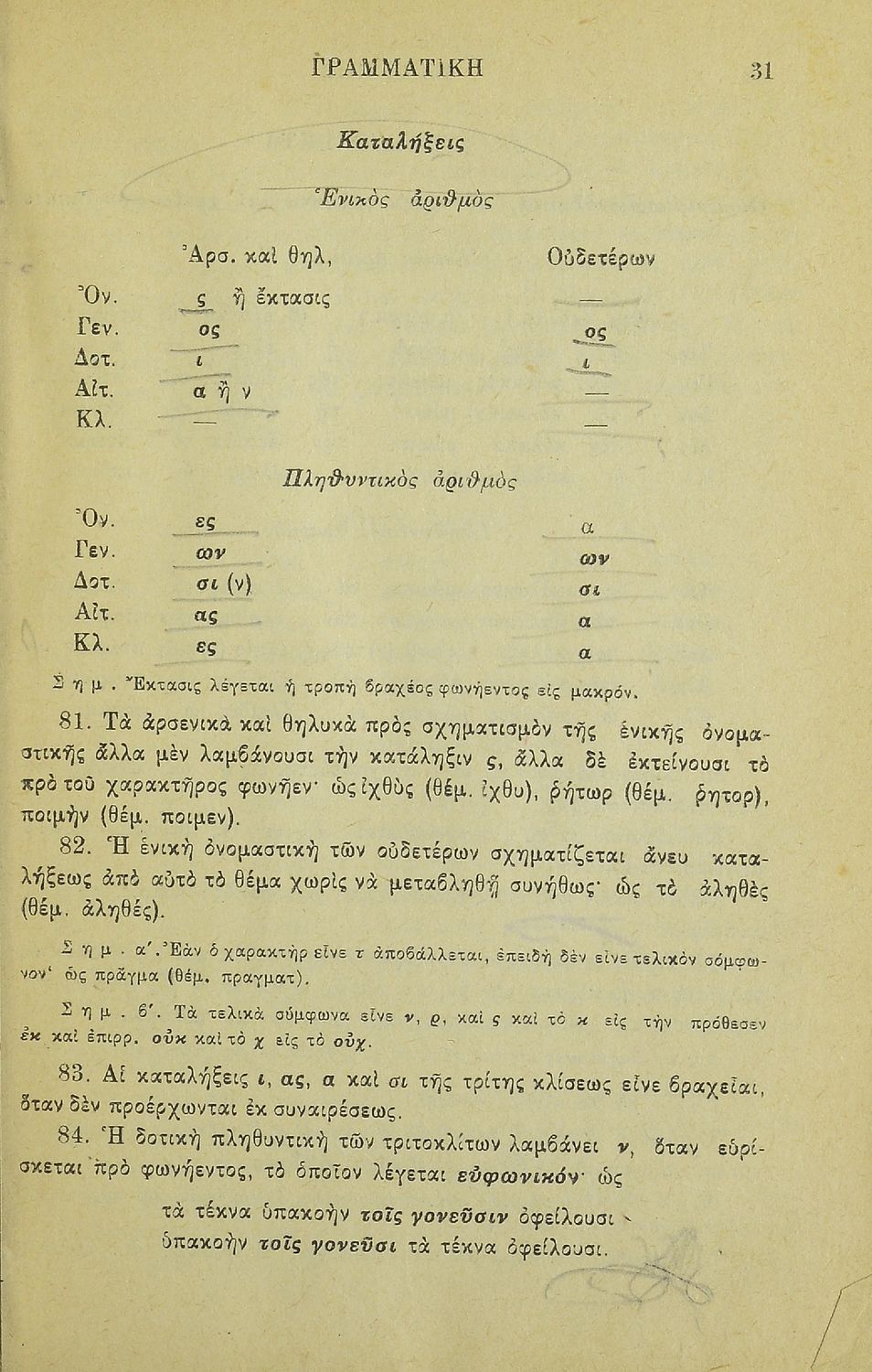 Σχολικό εγχειρίδιο Αρχαίων Ελληνικών Δημοτικού που περιλαμβάνει τους κανόνες γραμματικής και είναι χωρισμένο σε φθογγολογικό, τυπικό και ετυμολογικό μέρος.