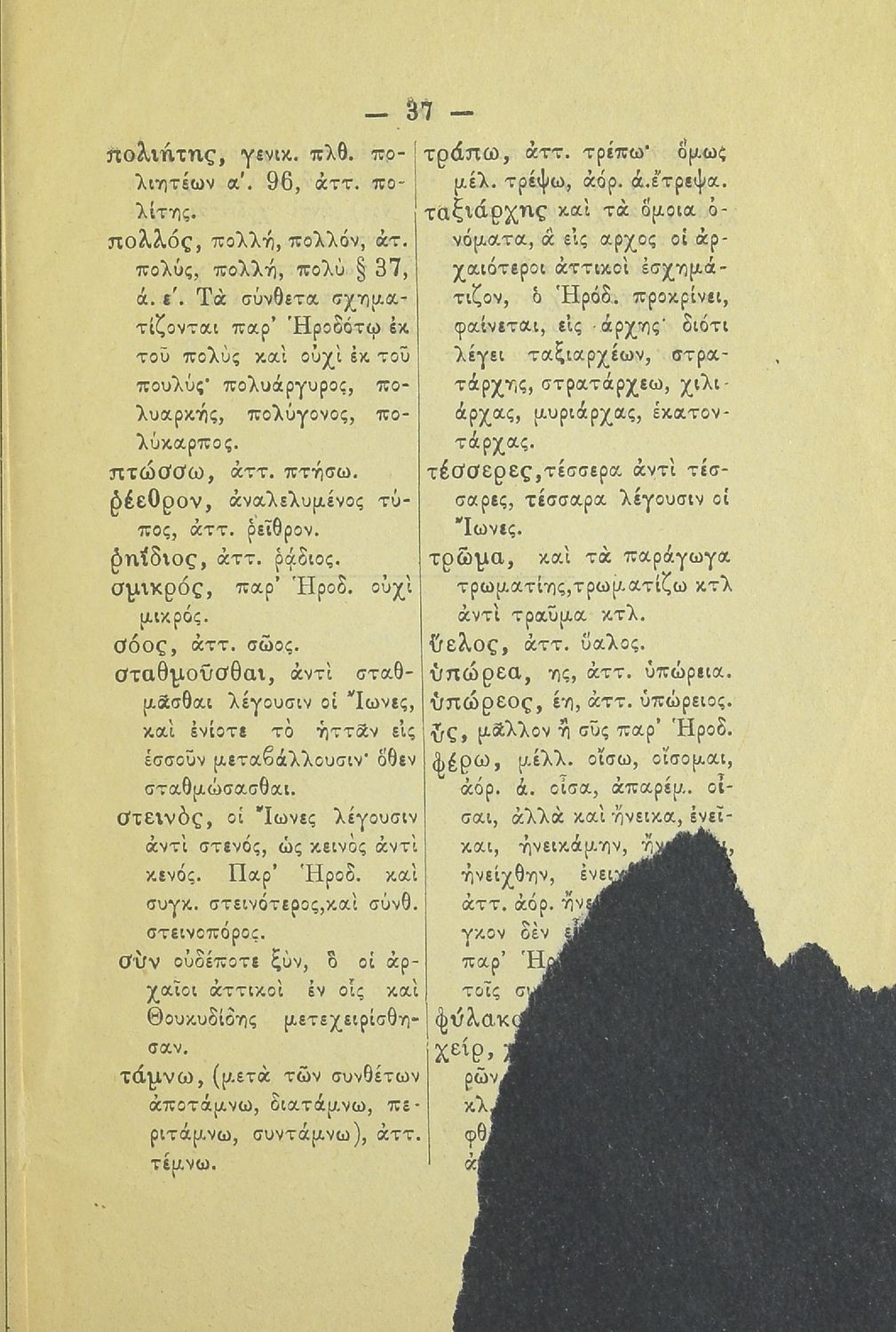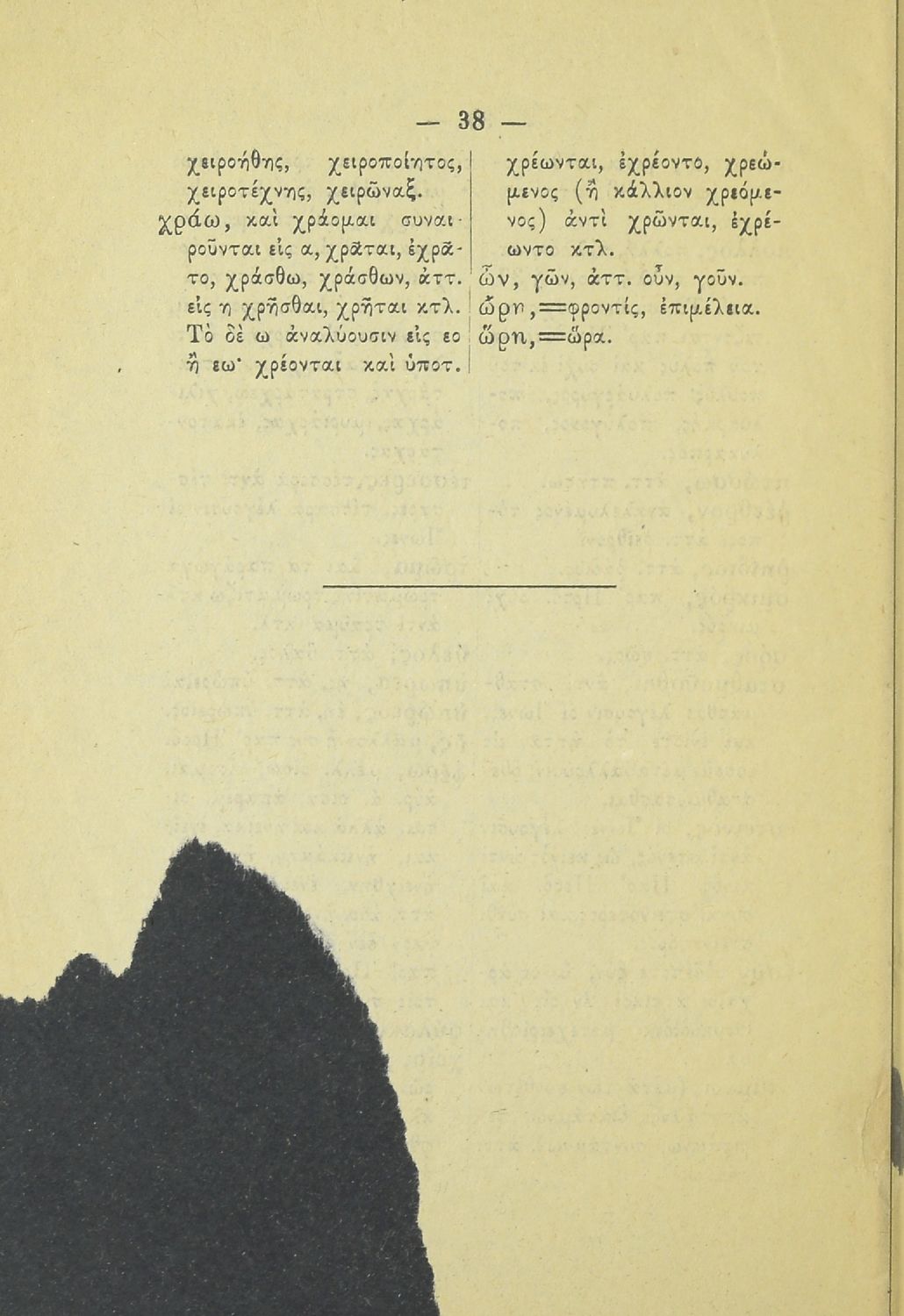 Μαθητικό βοήθημα Αρχαίων Ελληνικών για τα Ελληνικά Σχολεία, Παρθεναγωγεία και Γυμνάσια που περιλαμβάνει γραμματική της αρχαίας ελληνικής και κατάλογο ανωμάλων ρημάτων.