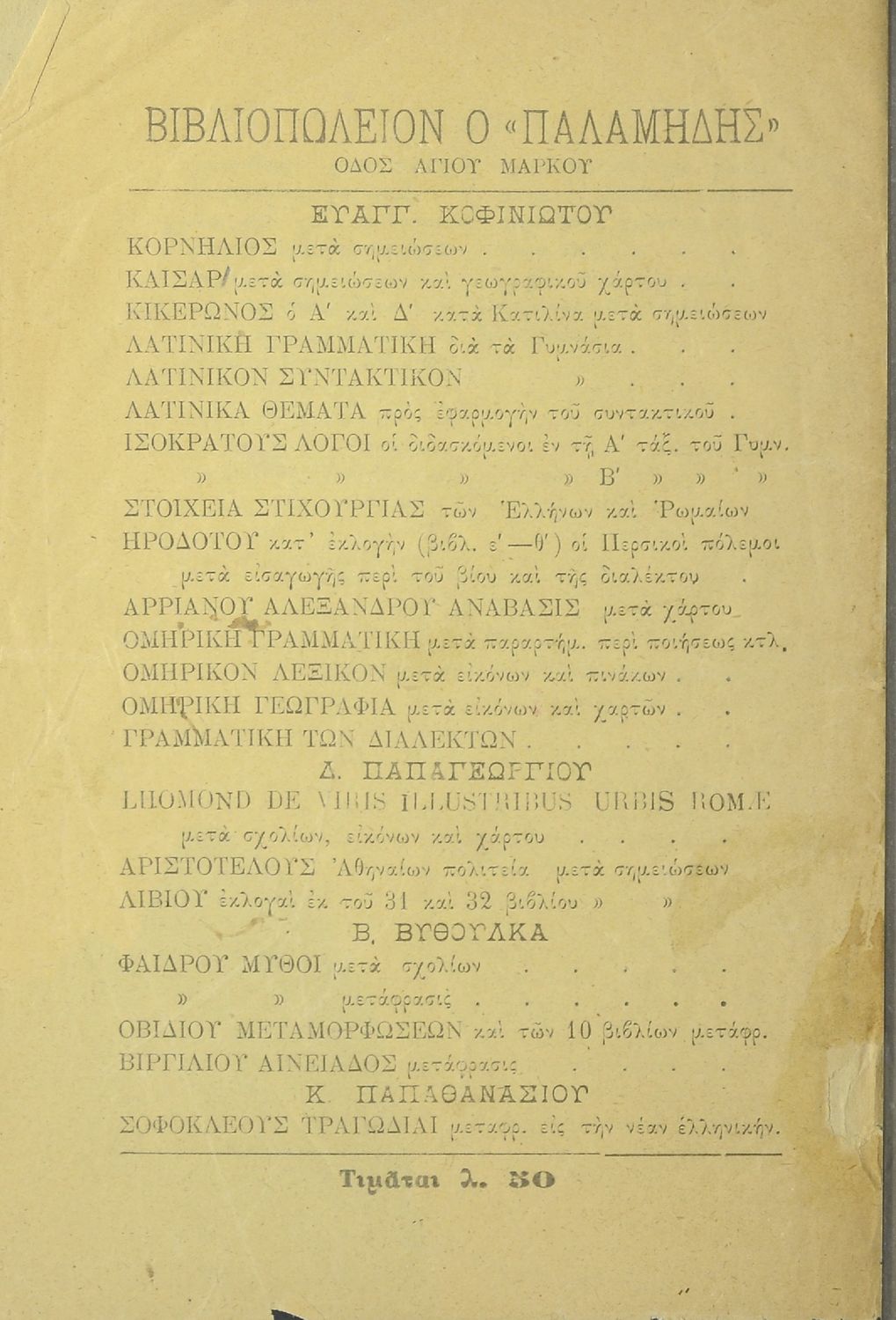 Εκδότης: Τυπογραφείο Ο Παλαμήδης