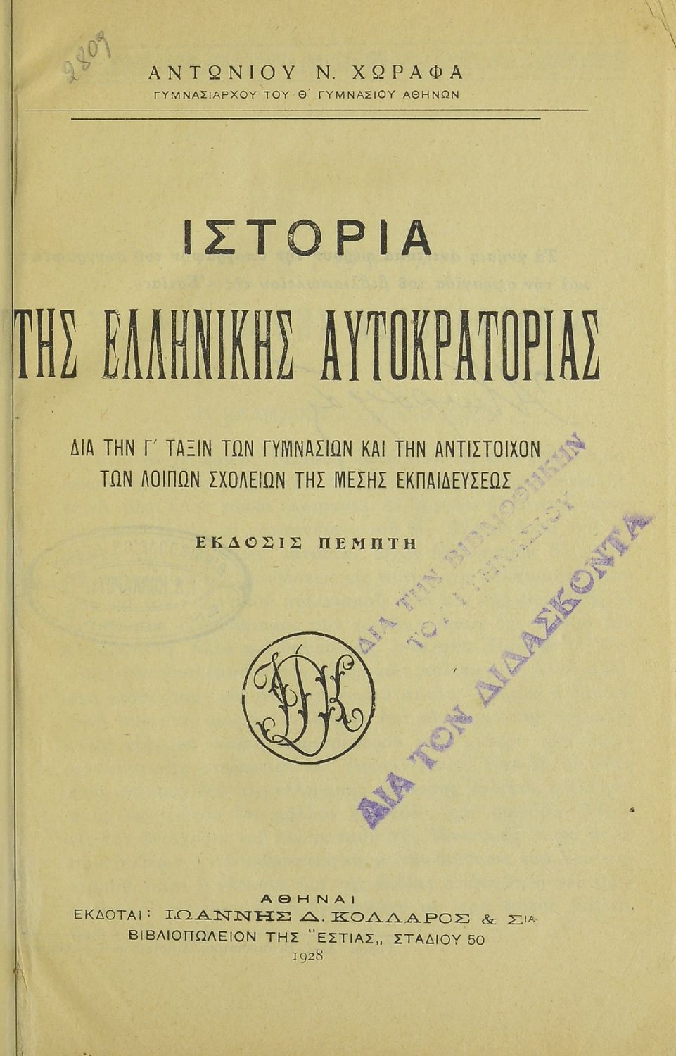 Συγγραφέας: Αντώνιος Ν. Χωραφάς