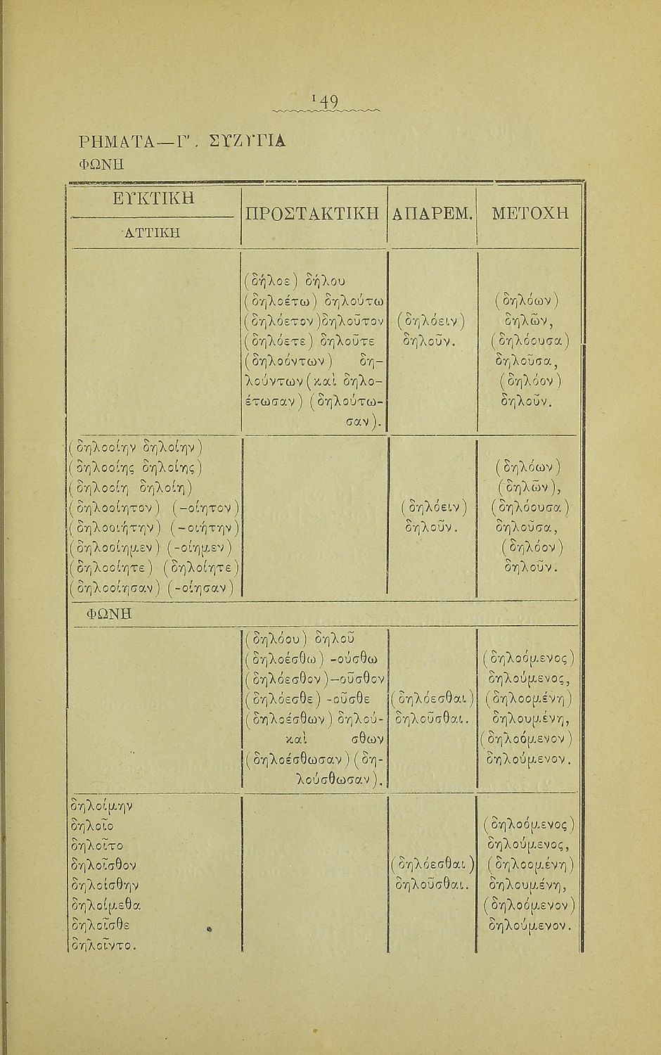 Μαθητικό βοήθημα Αρχαίων Ελληνικών για τα Γυμνάσια, Παρθεναγωγεία και Ελληνικά σχολεία το οποίο περιέχει κατάλογο ανωμάλων ρημάτων της Αττικής διαλέκτου.