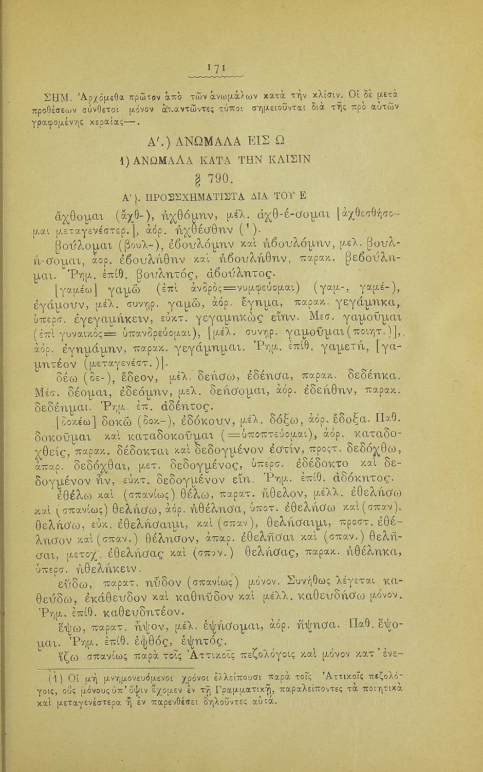 Μαθητικό βοήθημα Αρχαίων Ελληνικών για τα Γυμνάσια, Παρθεναγωγεία και Ελληνικά σχολεία το οποίο περιέχει κατάλογο ανωμάλων ρημάτων της Αττικής διαλέκτου.