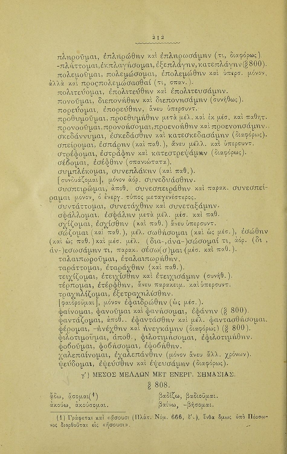 Μαθητικό βοήθημα Αρχαίων Ελληνικών για τα Γυμνάσια, Παρθεναγωγεία και Ελληνικά σχολεία το οποίο περιέχει κατάλογο ανωμάλων ρημάτων της Αττικής διαλέκτου.