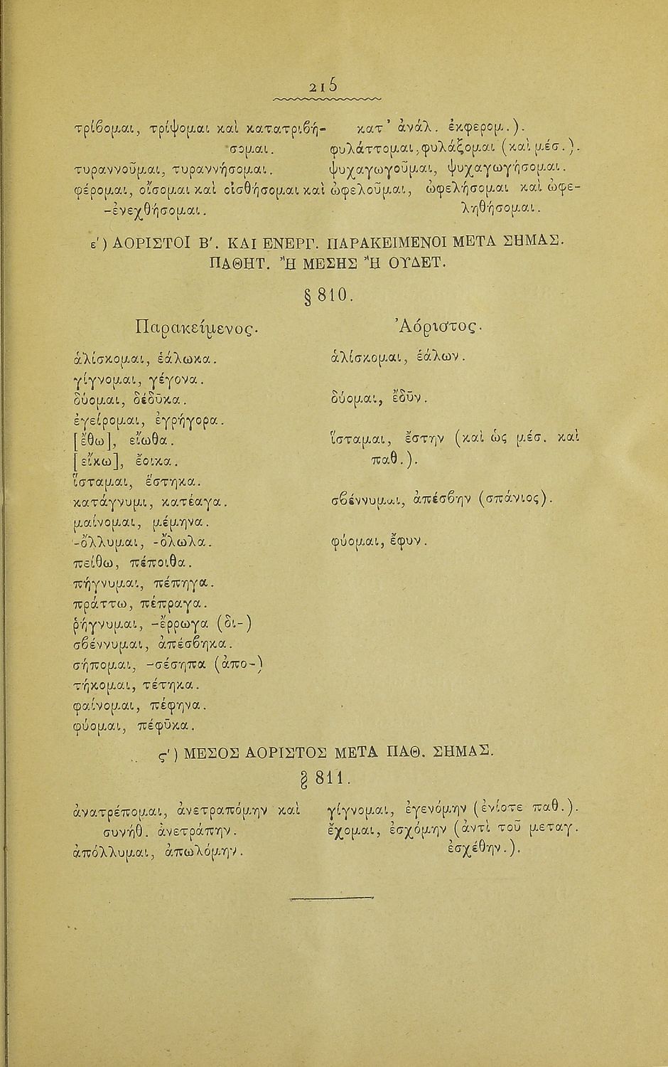 Μαθητικό βοήθημα Αρχαίων Ελληνικών για τα Ελληνικά Σχολεία, Παρθεναγωγεία και Γυμνάσια που περιλαμβάνει γραμματική της αρχαίας ελληνικής και κατάλογο ανωμάλων ρημάτων.
