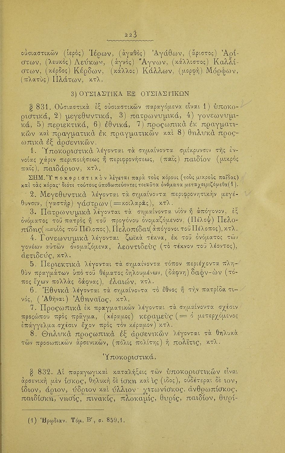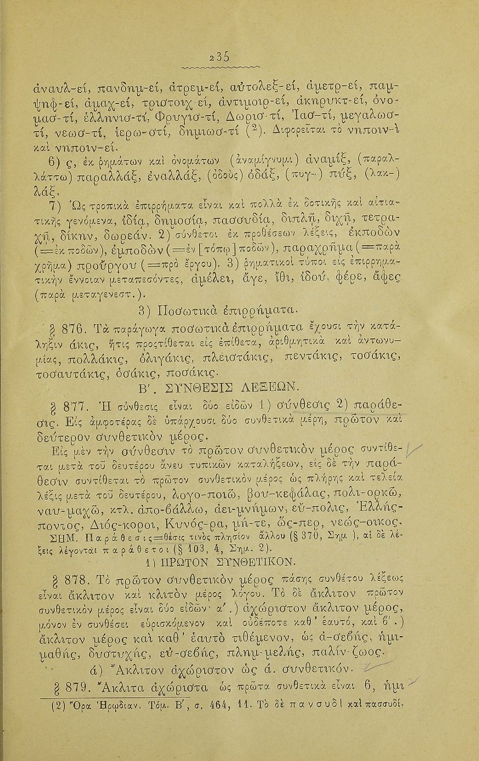 Σχολικό εγχειρίδιο Αρχαίων Ελληνικών για τα Ελληνικά Σχολεία και Γυμνάσια που περιλαμβάνει γραμματική της αρχαίας ελληνικής και είναι χωρισμένο σε φθογγολογικό, τυπολογικό και ετυμολογικό μέρος.