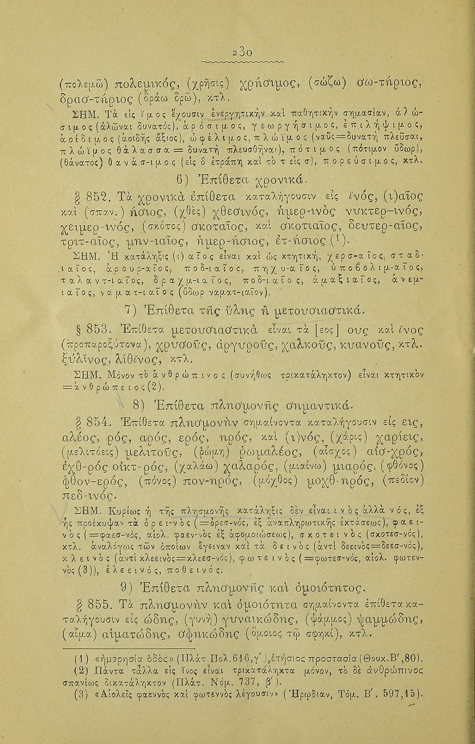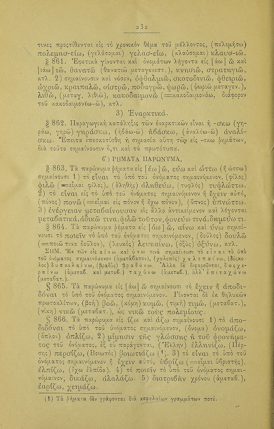 Σχολικό εγχειρίδιο Αρχαίων Ελληνικών για τα Ελληνικά Σχολεία, Παρθεναγωγεία και Γυμνάσια που περιέχει τους κανόνες γραμματικής και είναι χωρισμένο σε φθογγολογικό, τυπολογικό και ετυμολογικό μέρος.