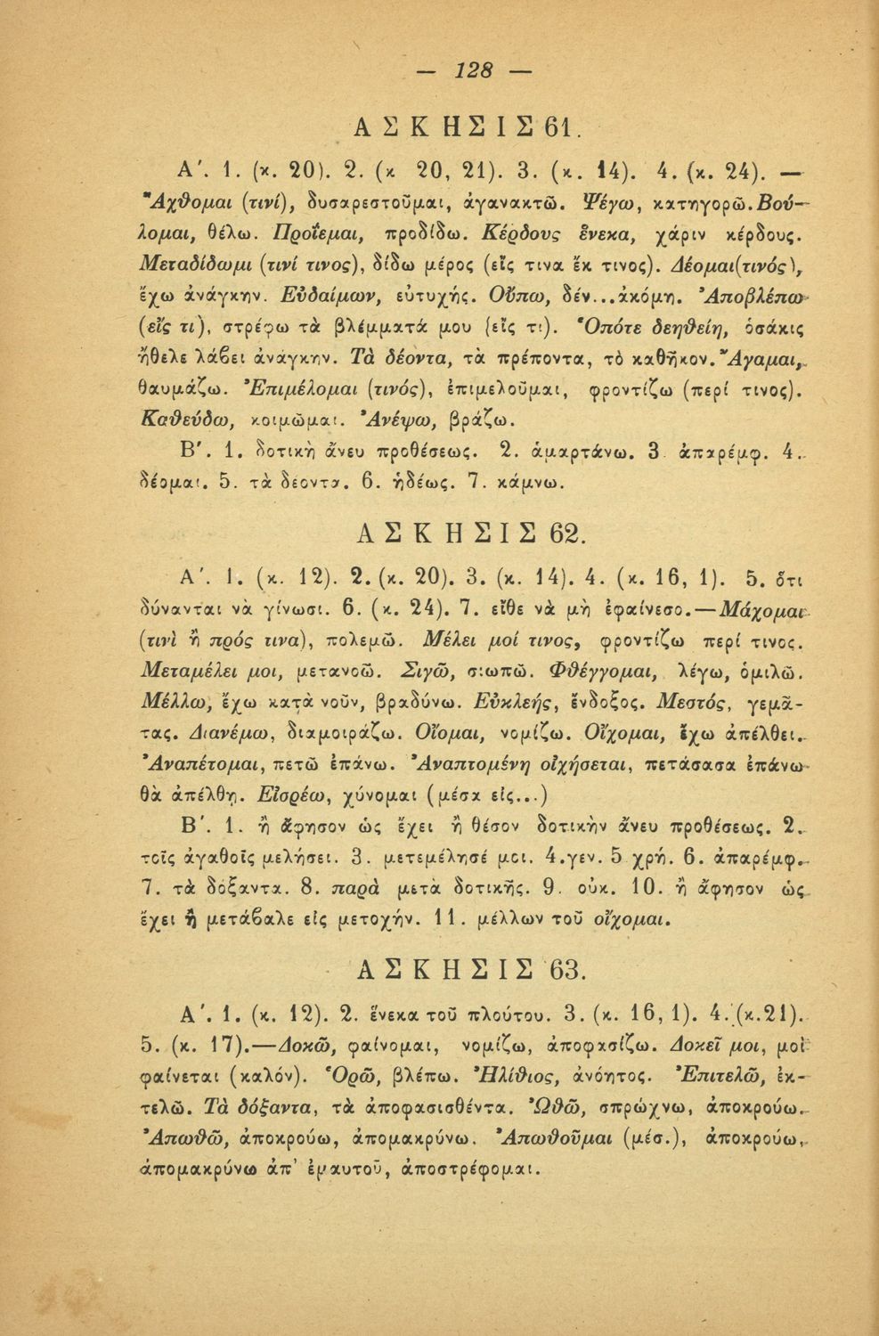Γραμματικαί ασκήσεις εις το τυπικόν και ετυμολογικόν της αττικής διαλέκτου προς χρήσιν των μαθητών της Β΄ και Γ΄ τάξεως των Ελληνικών Σχολείων