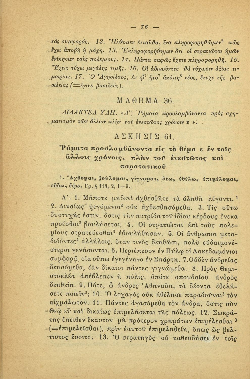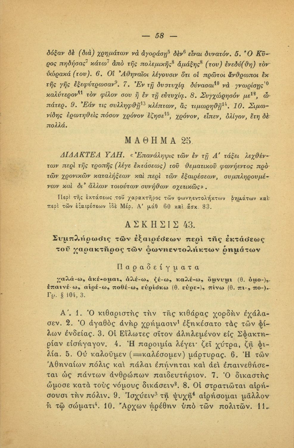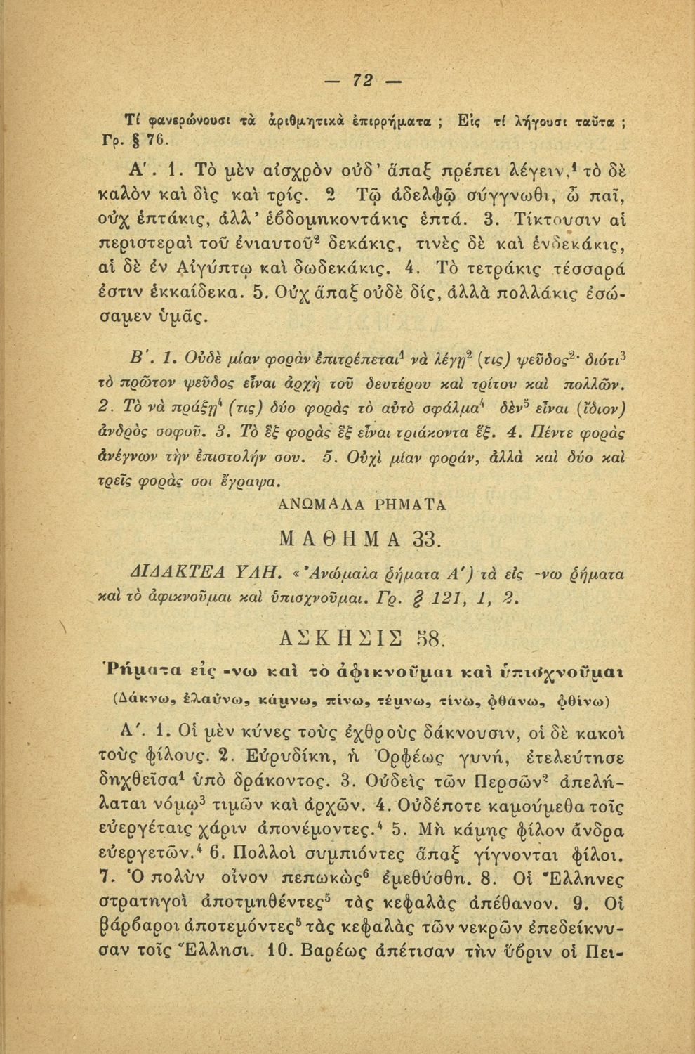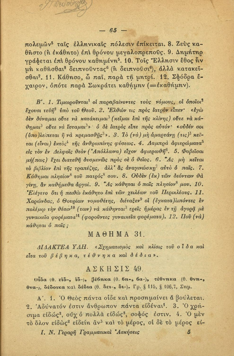 Γραμματικαί ασκήσεις εις το τυπικόν και ετυμολογικόν της αττικής διαλέκτου προς χρήσιν των μαθητών της Β΄ και Γ΄ τάξεως των Ελληνικών Σχολείων
