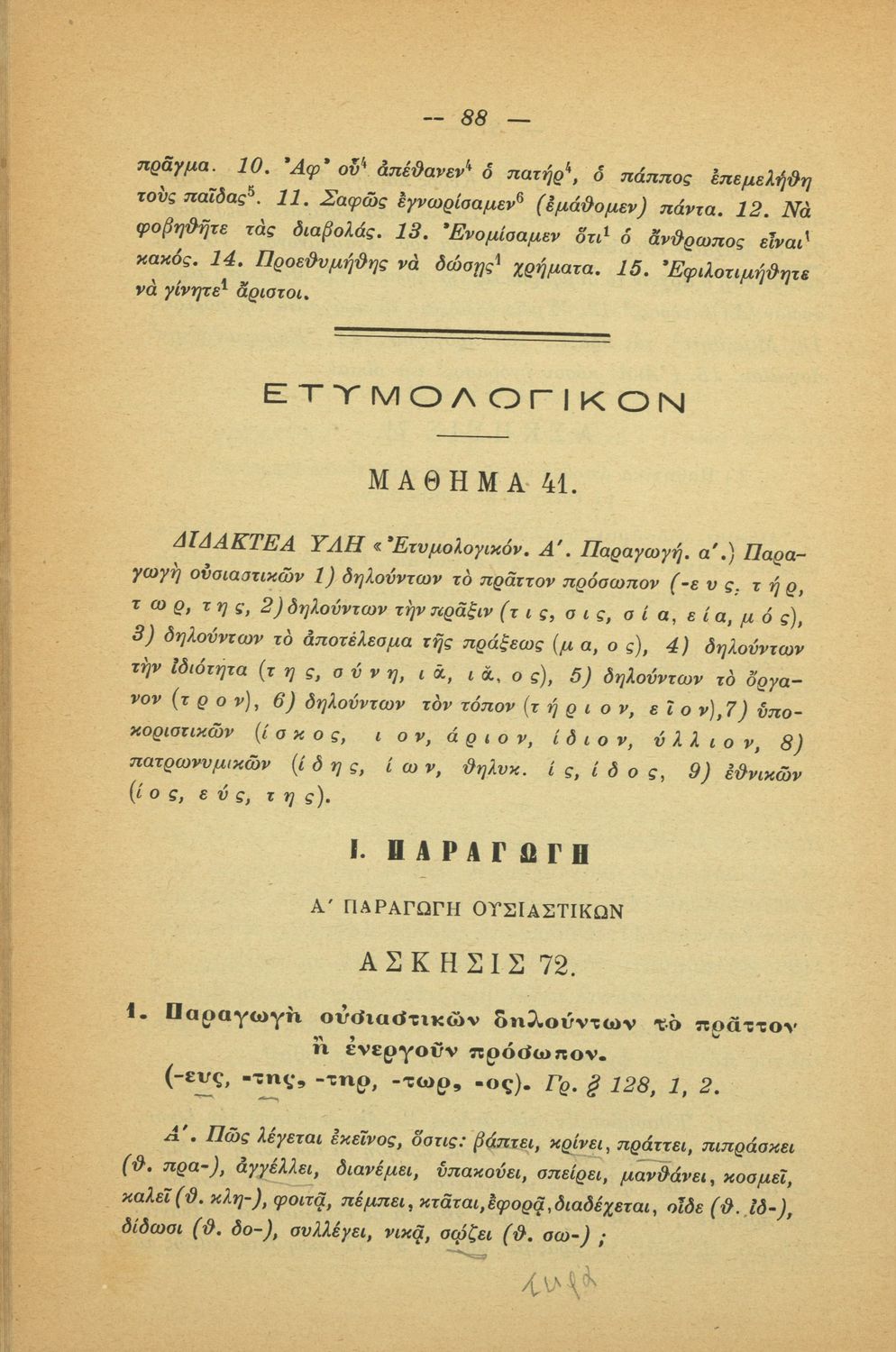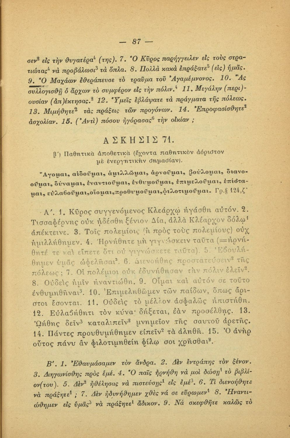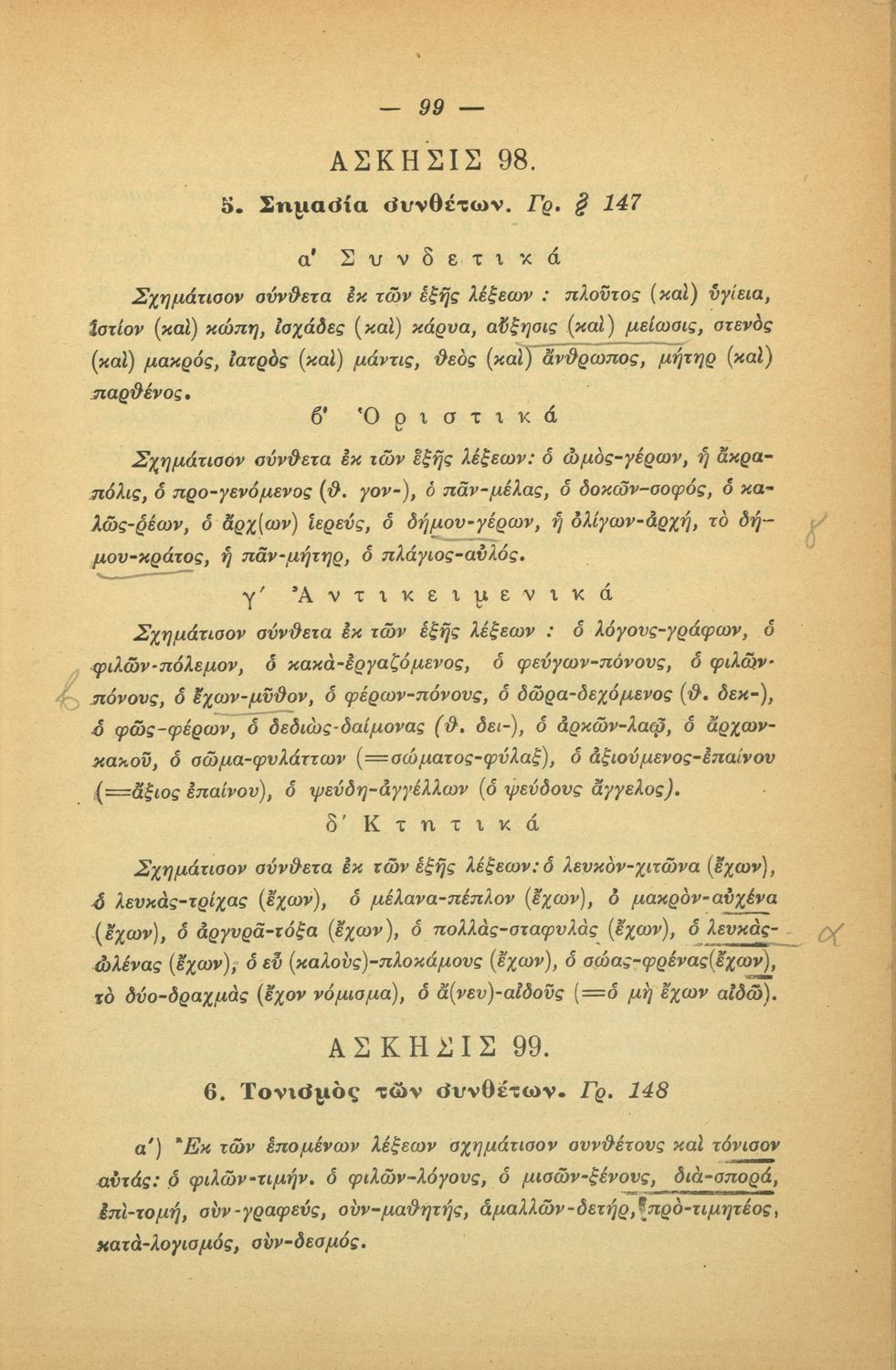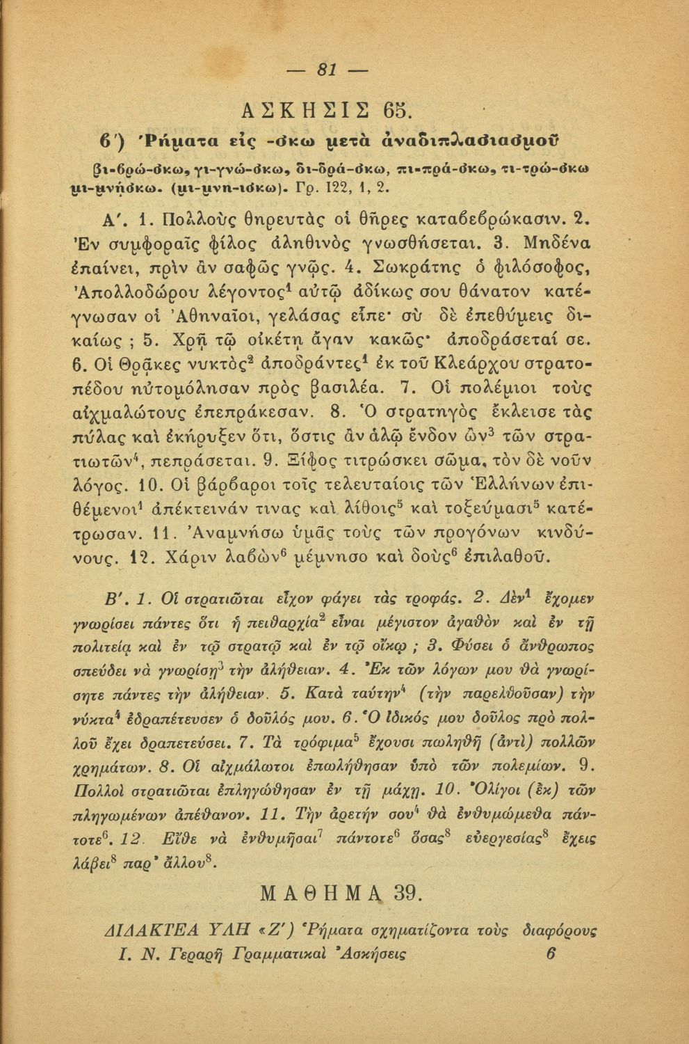 Γραμματικαί ασκήσεις εις το τυπικόν και ετυμολογικόν της αττικής διαλέκτου προς χρήσιν των μαθητών της Β΄ και Γ΄ τάξεως των Ελληνικών Σχολείων