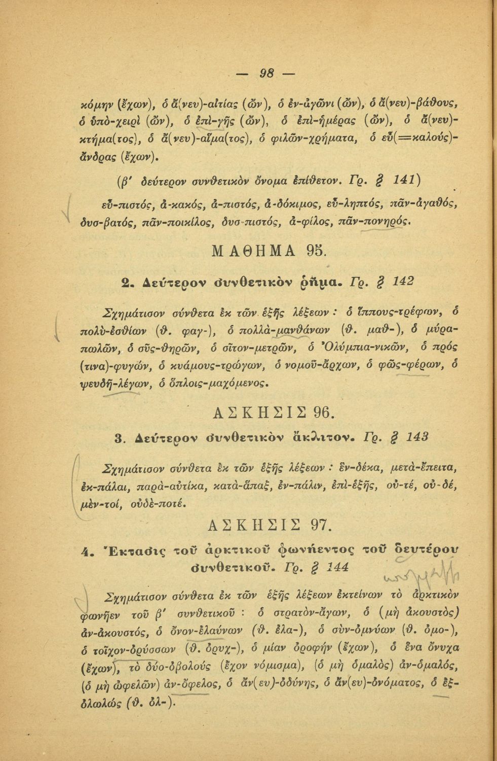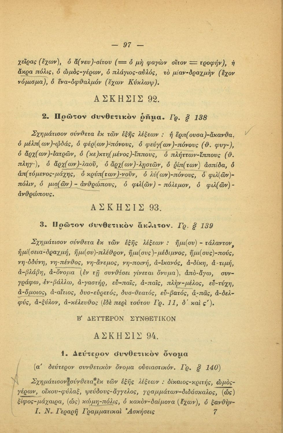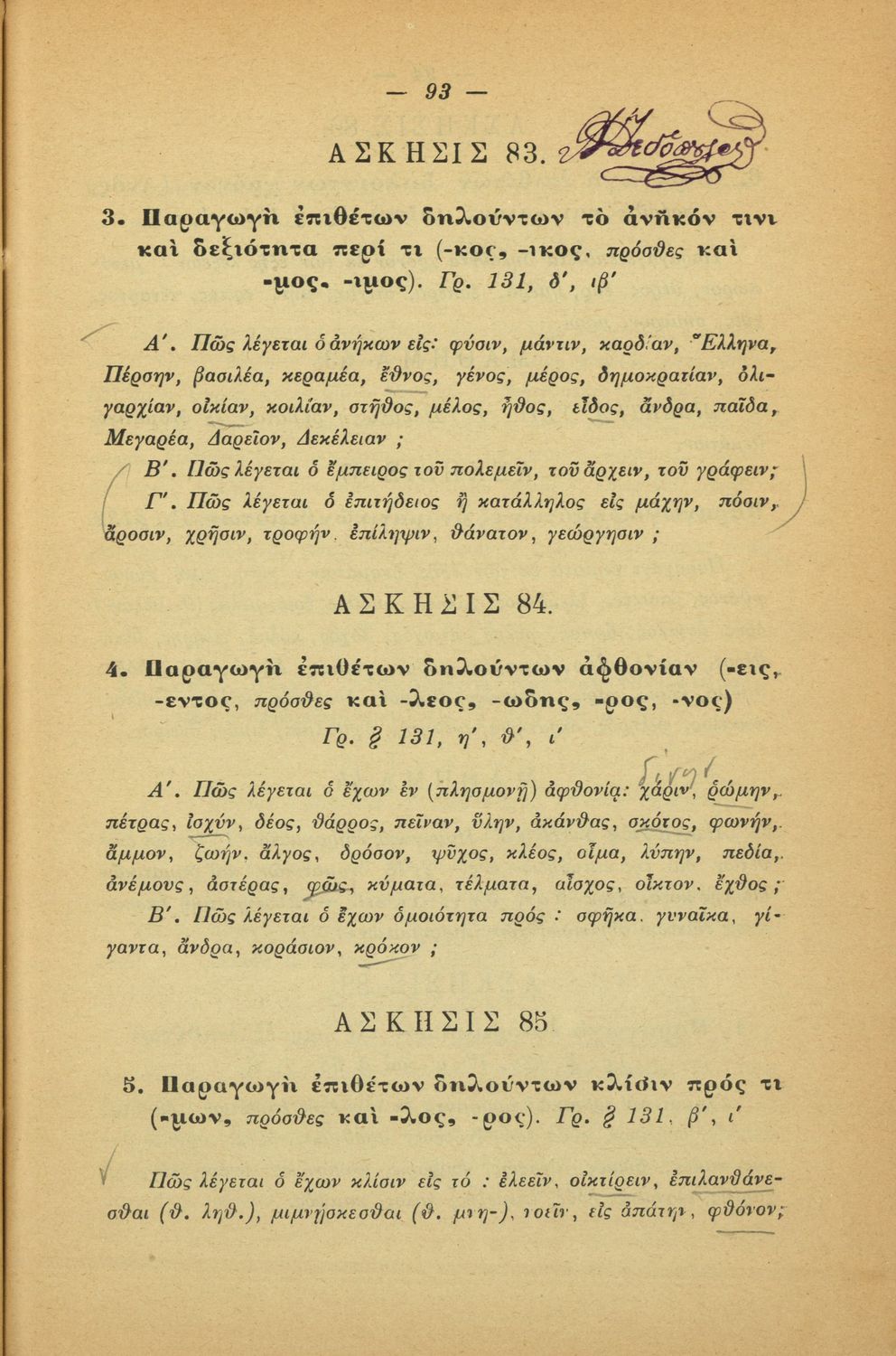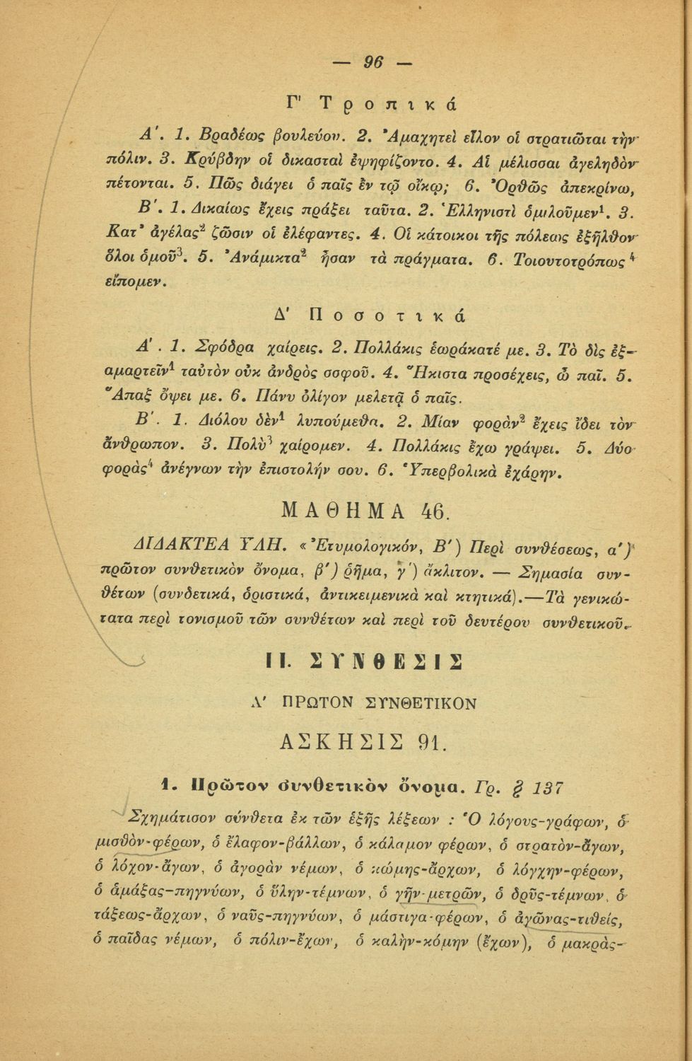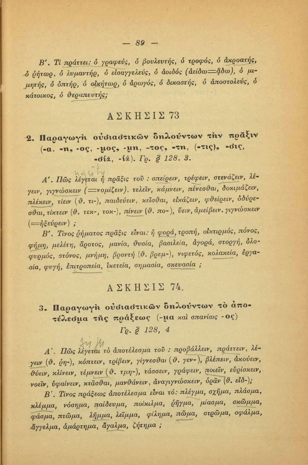 Γραμματικαί ασκήσεις εις το τυπικόν και ετυμολογικόν της αττικής διαλέκτου προς χρήσιν των μαθητών της Β΄ και Γ΄ τάξεως των Ελληνικών Σχολείων