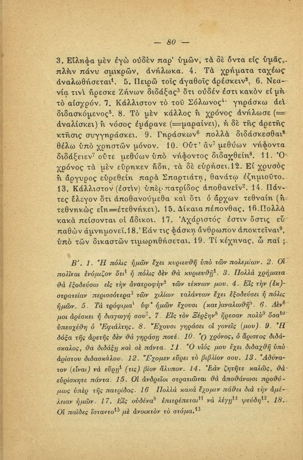 Σχολικό εγχειρίδιο Αρχαίων Ελληνικών για τις Β΄ και Γ' Ελληνικού Σχολείου που περιλαμβάνει γραμματικές ασκήσεις για τη διδασκαλία του ετυμολογικού και τυπολογικού μέρους της αττικής διαλέκτου. Περιέχει και λεξιλόγιο.