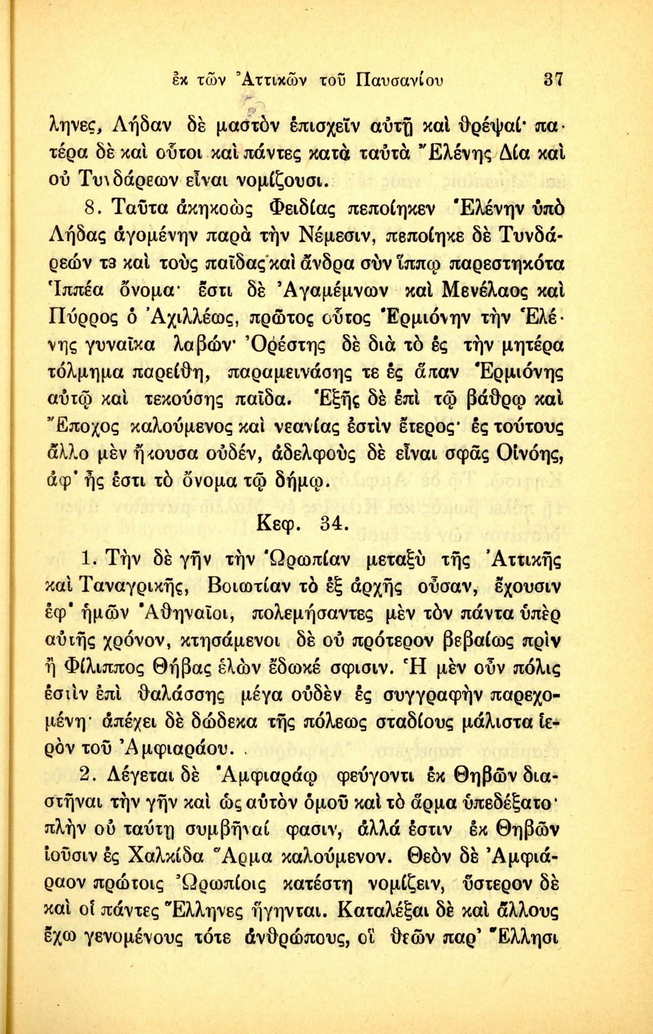 Σχολικό εγχειρίδιο Αρχαίων Ελληνικών Δ΄ Γυμνασίου που περιλαμβάνει αποσπάσματα από τα Αττικά του Παυσανία, εισαγωγή στη ζωή και το έργο του, και ερμηνευτικά και πραγματολογικά σχόλια.