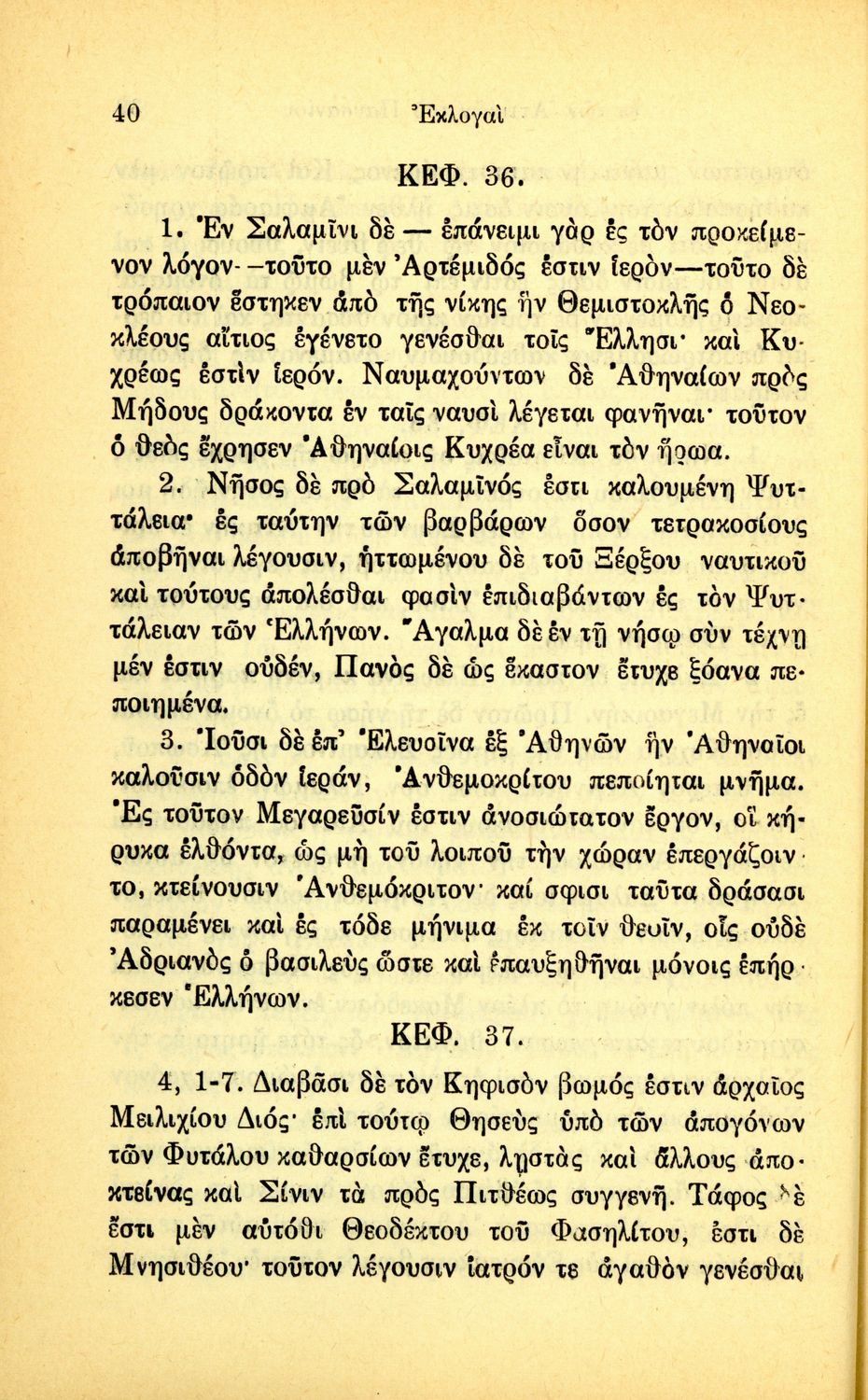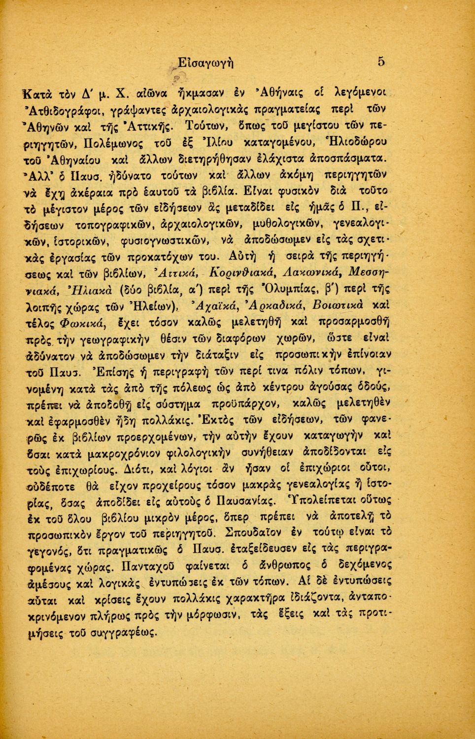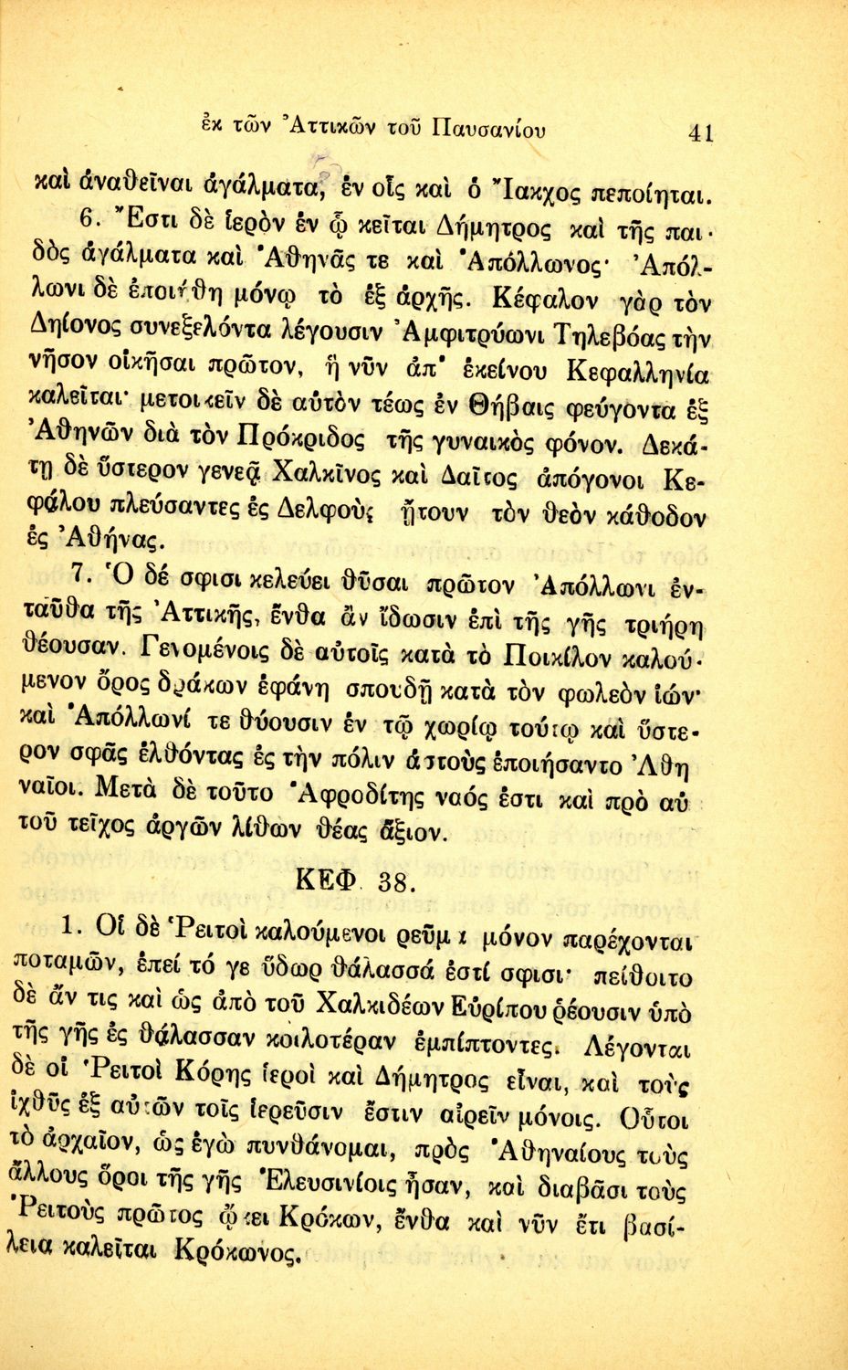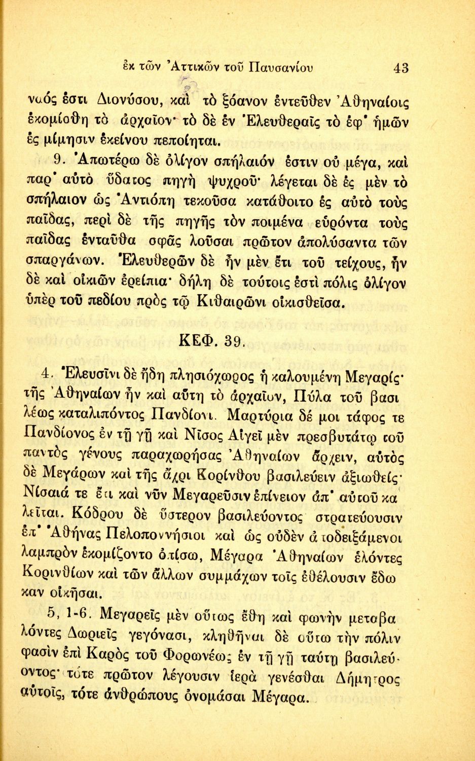 Βαθμίδα εκπαίδευσης: Δευτεροβάθμια Τάξη: Δ΄ Εξαταξίου Γυμνασίου Μάθημα: Αρχαία Ελληνικά Γλώσσα: Καθαρεύουσα Παρουσίαση περιεχομένου: Σχολικό εγχειρίδιο Αρχαίων Ελληνικών Δ΄ Γυμνασίου που περιλαμβάνει αποσπάσματα από τα Αττικά του Παυσανία, εισαγωγή στη ζωή και το έργο του, και ερμηνευτικά και πραγματολογικά σχόλια. |