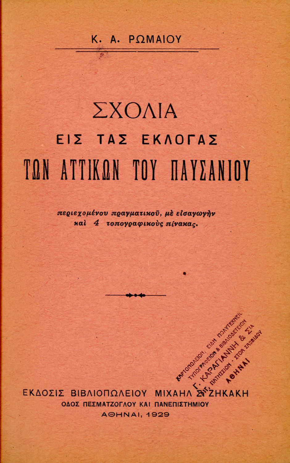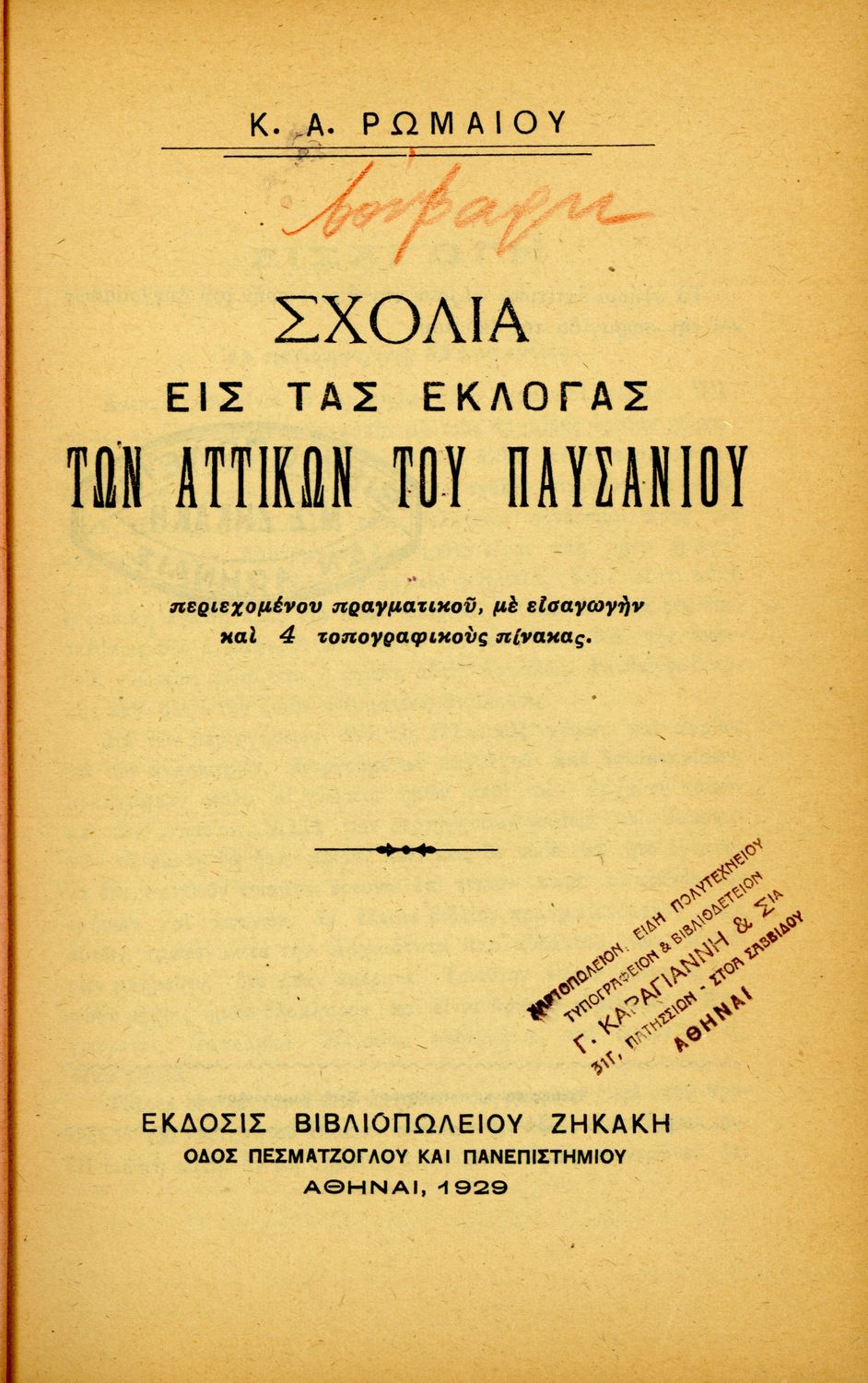 Εκδότης: Μ. Σ. Ζηκάκης Έτος έκδοσης: 1929 Τόπος έκδοσης: Αθήνα Έκδοση: 2η Υπουργική απόφαση / Σύμβαση: 21384/11-7-1928 Έτος έγκρισης: 1928 |