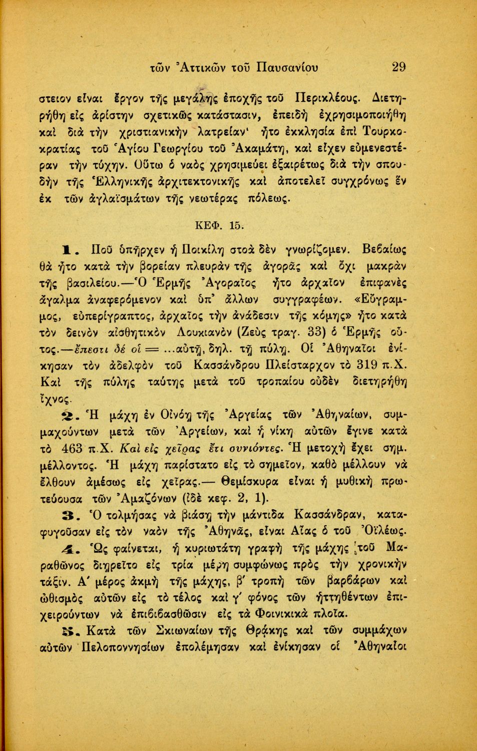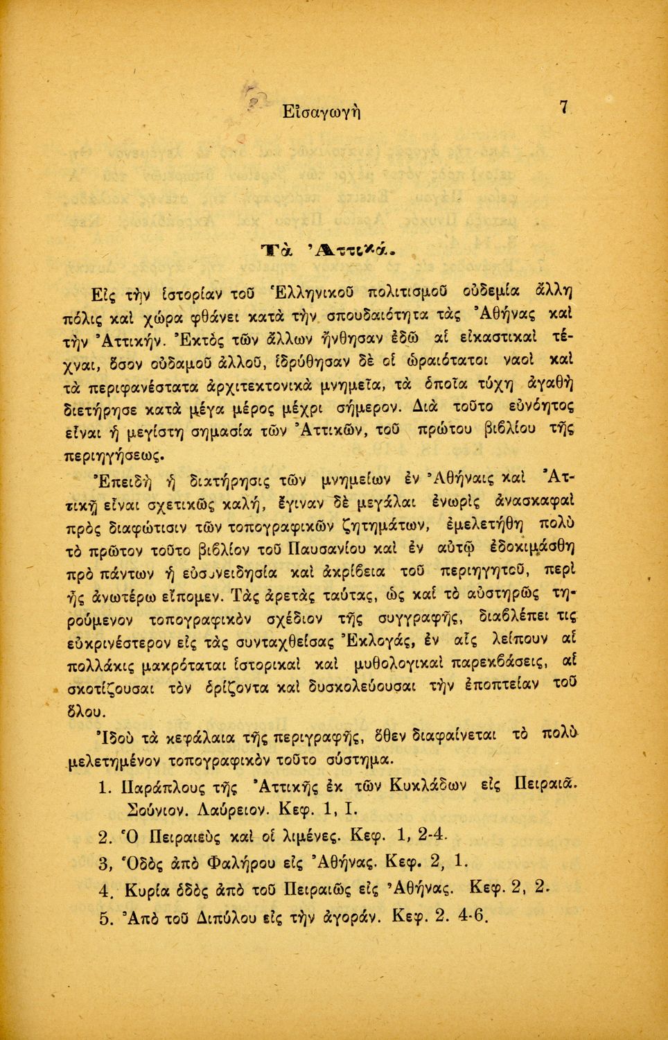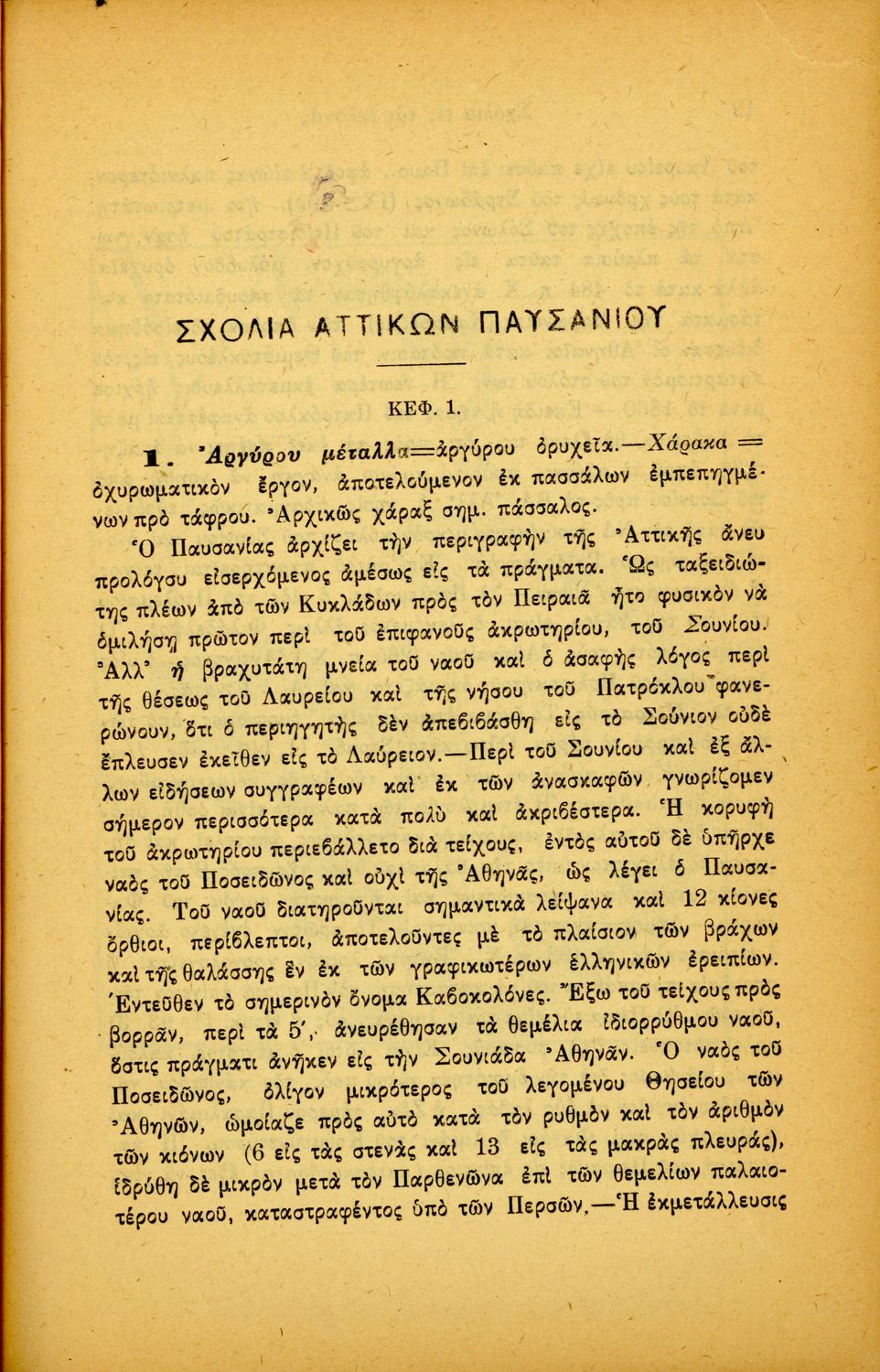 Βαθμίδα εκπαίδευσης: Δευτεροβάθμια Τάξη: Δ΄ Εξαταξίου Γυμνασίου Μάθημα: Αρχαία Ελληνικά Γλώσσα: Καθαρεύουσα Παρουσίαση περιεχομένου: Σχολικό εγχειρίδιο Αρχαίων Ελληνικών Δ΄ Γυμνασίου που περιλαμβάνει αποσπάσματα από τα Αττικά του Παυσανία, εισαγωγή στη ζωή και το έργο του, και ερμηνευτικά και πραγματολογικά σχόλια. |