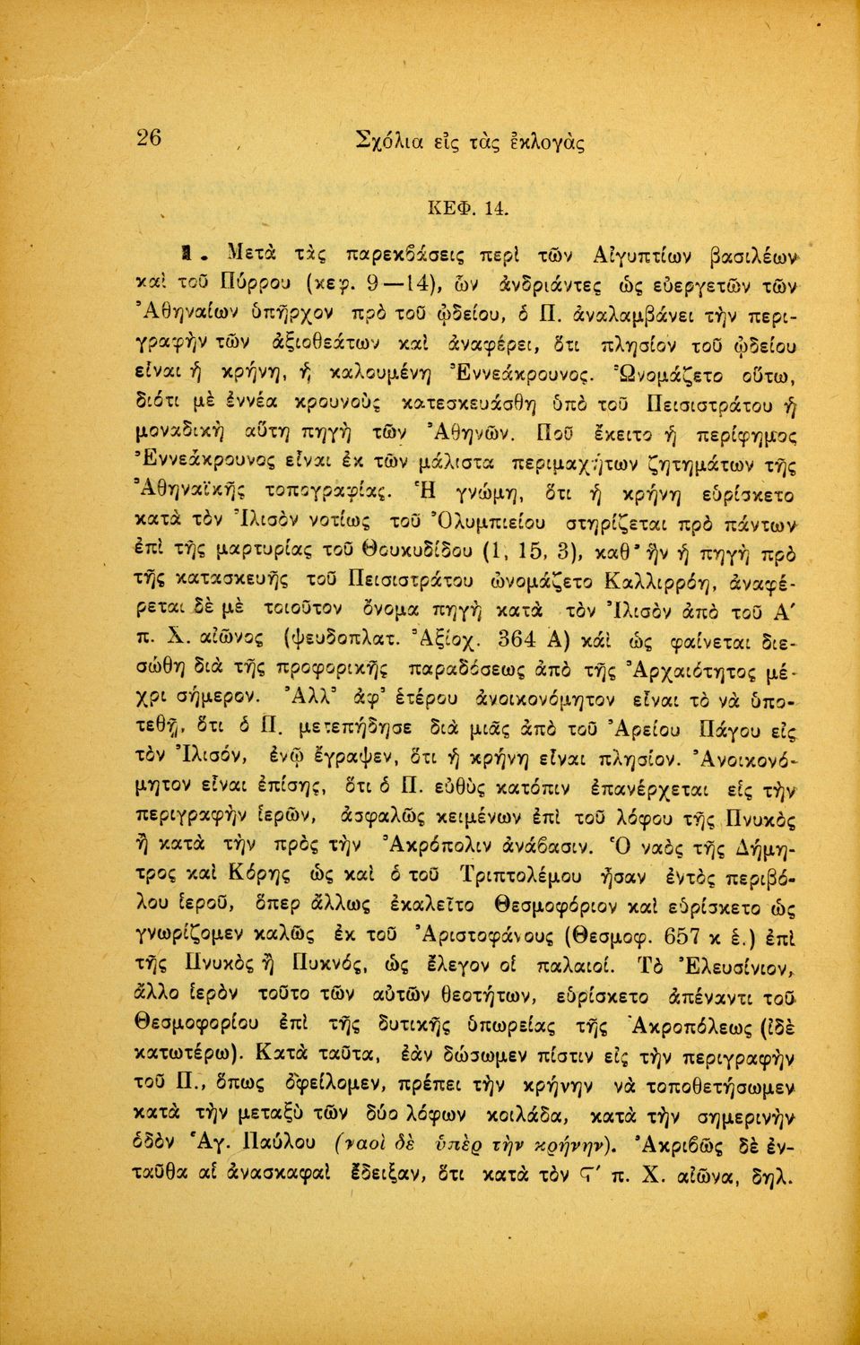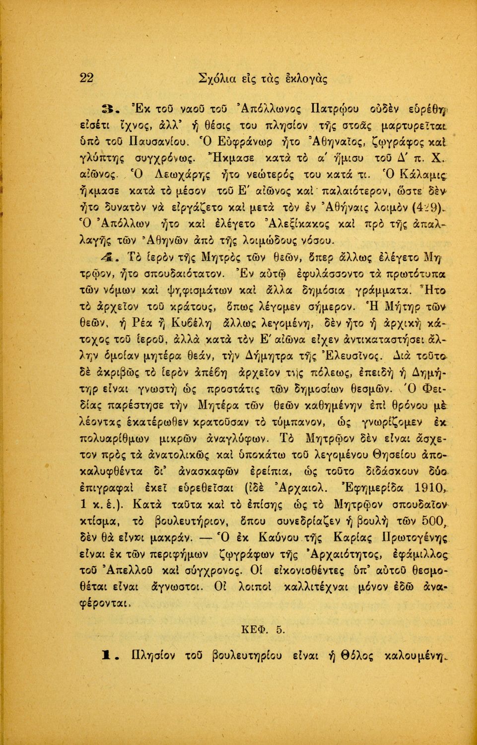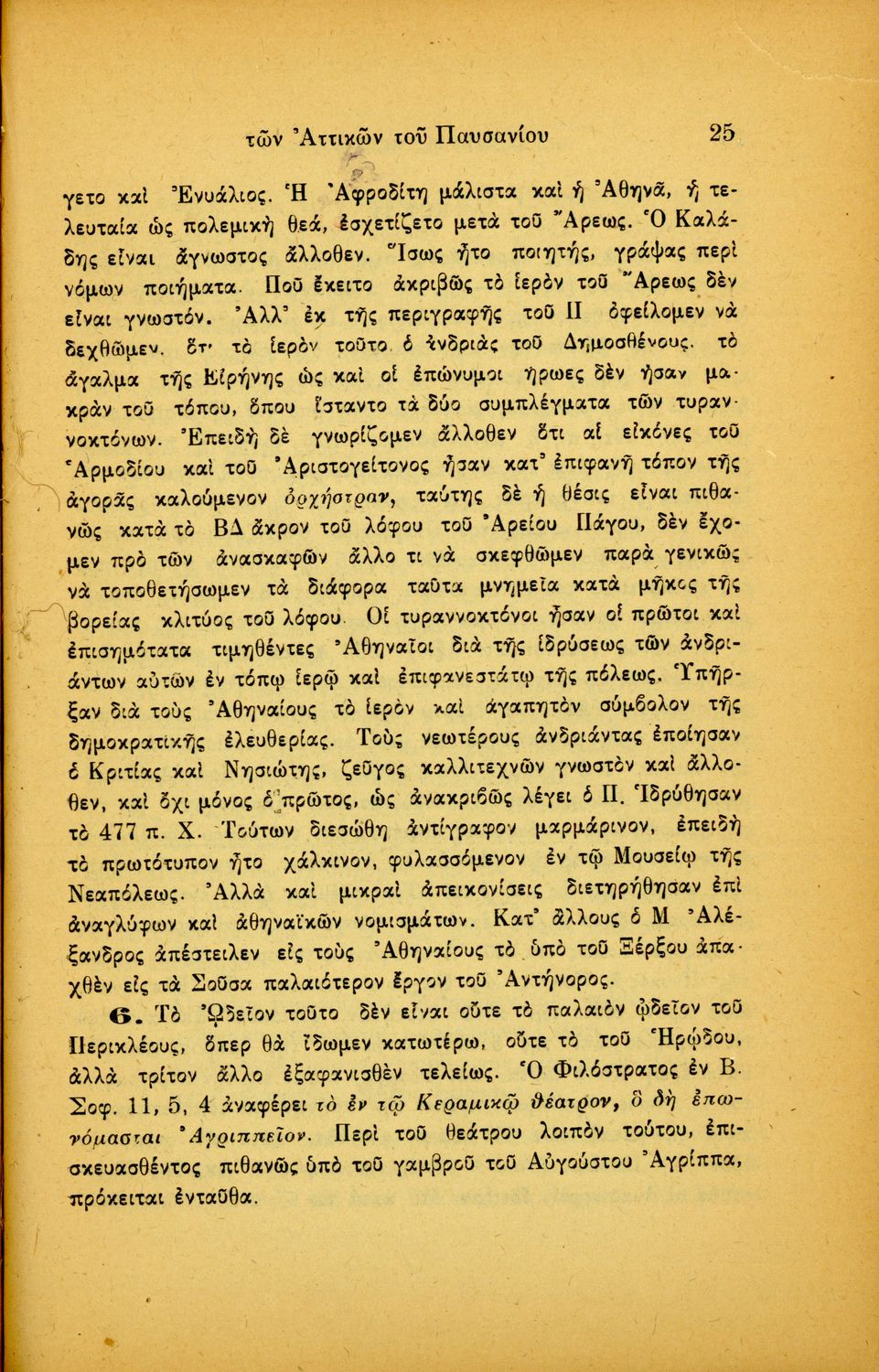 Βαθμίδα εκπαίδευσης: Δευτεροβάθμια Τάξη: Δ΄ Εξαταξίου Γυμνασίου Μάθημα: Αρχαία Ελληνικά Γλώσσα: Καθαρεύουσα Παρουσίαση περιεχομένου: Σχολικό εγχειρίδιο Αρχαίων Ελληνικών Δ΄ Γυμνασίου που περιλαμβάνει αποσπάσματα από τα Αττικά του Παυσανία, εισαγωγή στη ζωή και το έργο του, και ερμηνευτικά και πραγματολογικά σχόλια. |