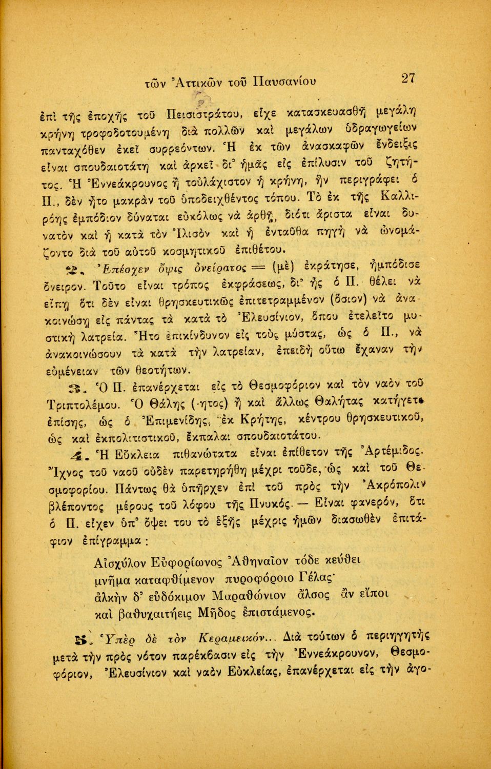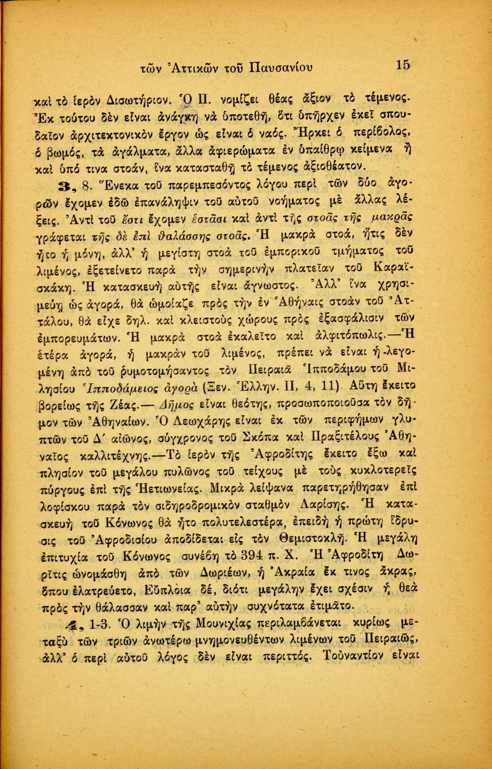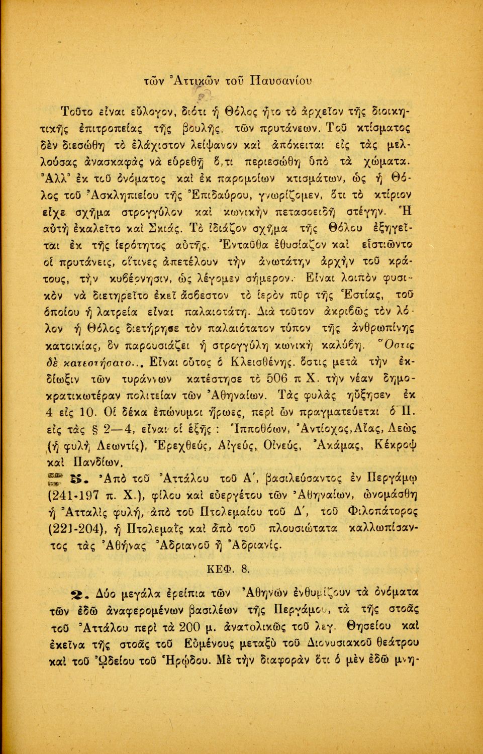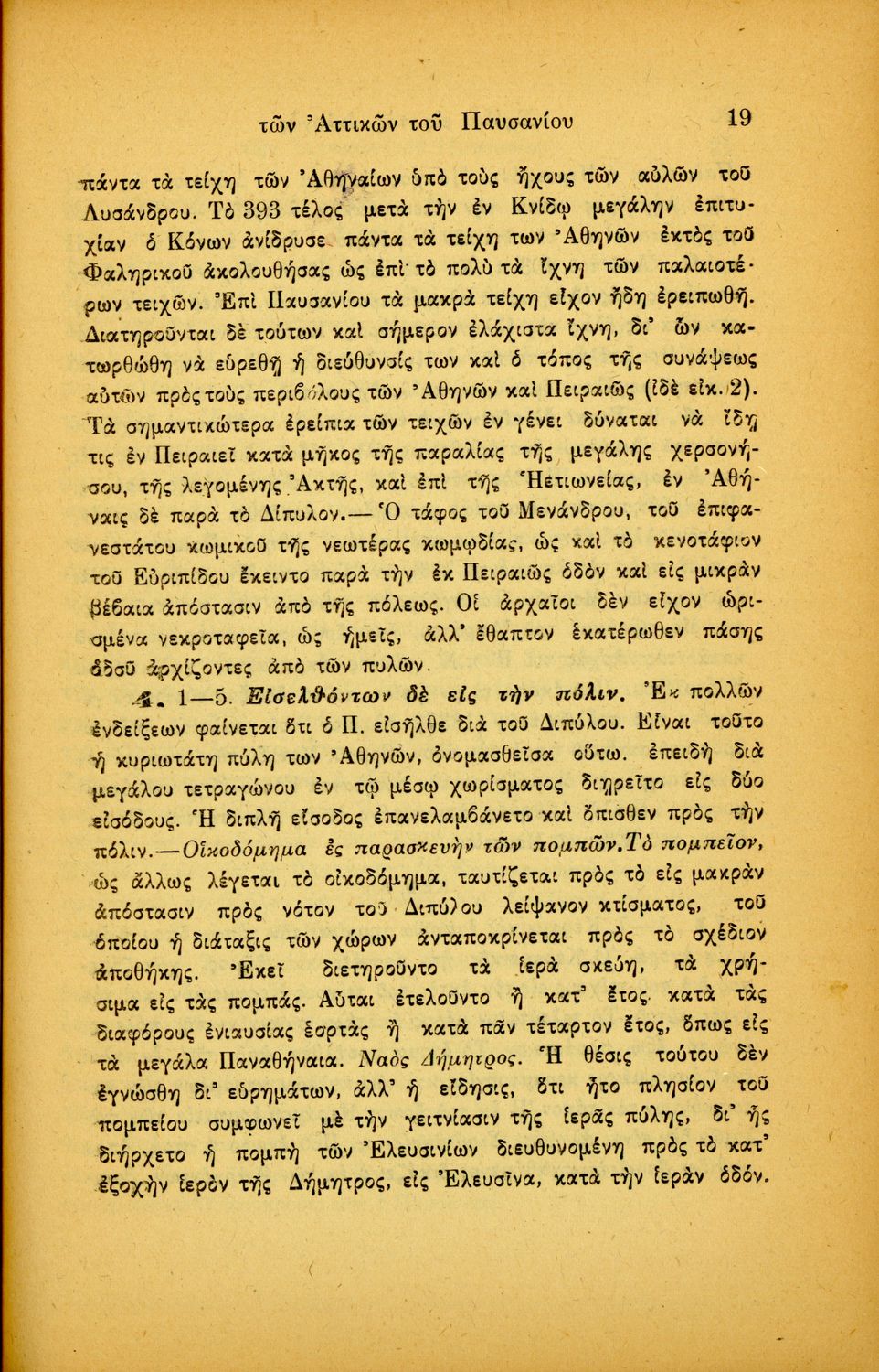 Σχολικό εγχειρίδιο Αρχαίων Ελληνικών Δ΄ Γυμνασίου που περιλαμβάνει αποσπάσματα από τα Αττικά του Παυσανία, εισαγωγή στη ζωή και το έργο του, και ερμηνευτικά και πραγματολογικά σχόλια.