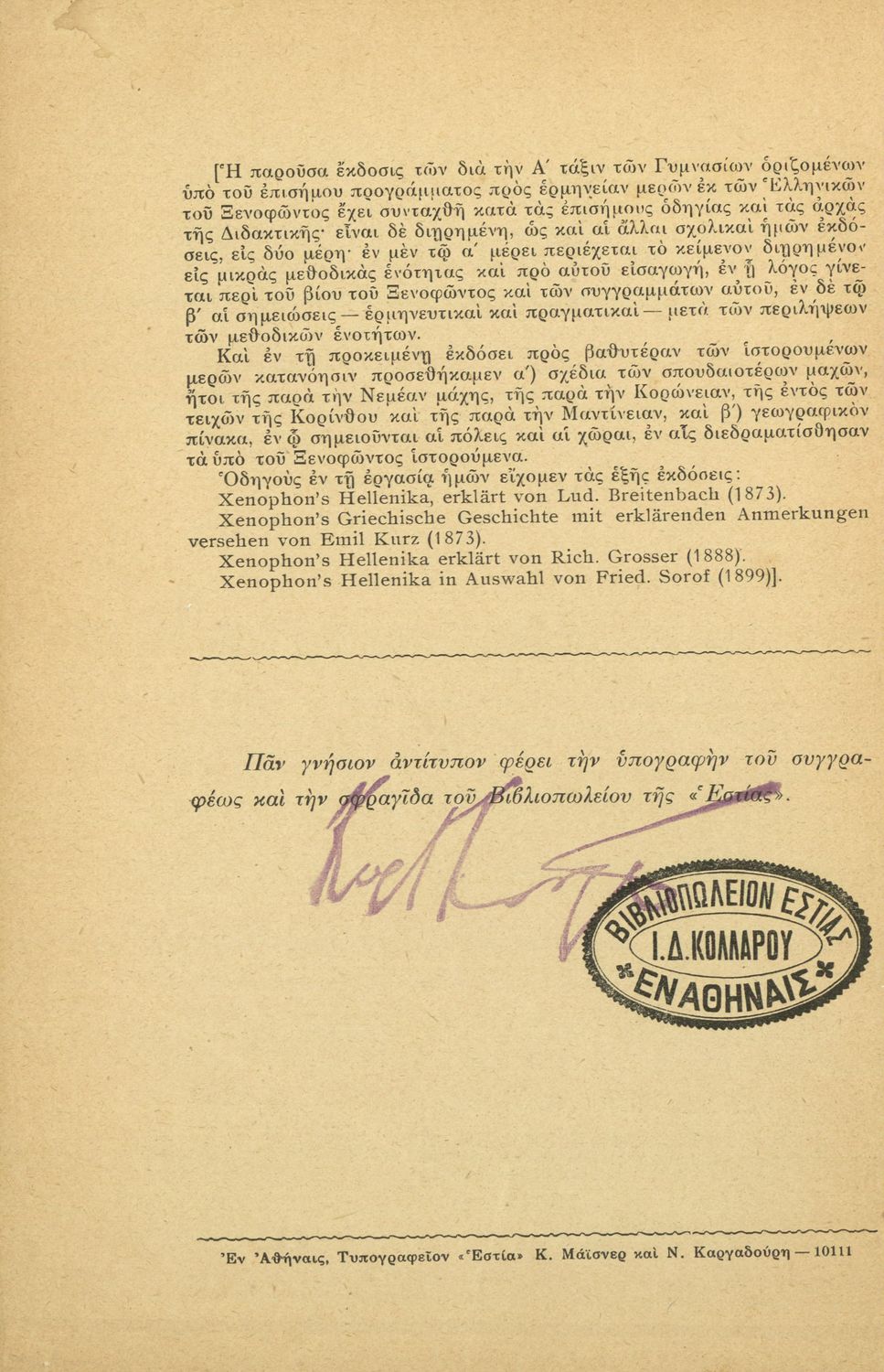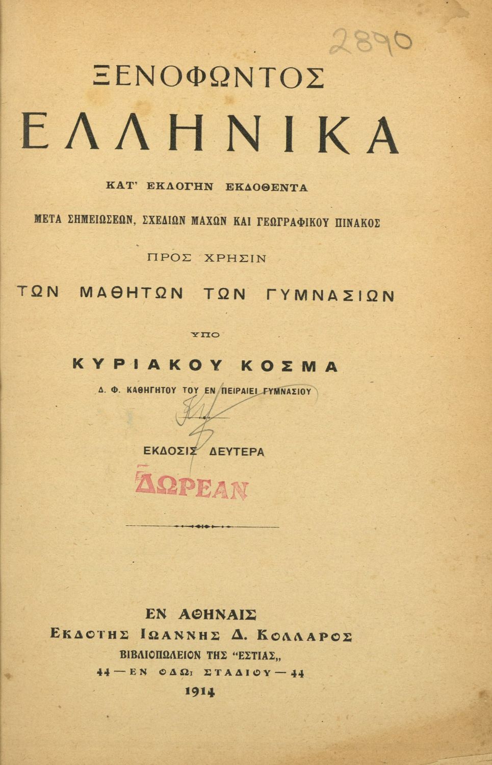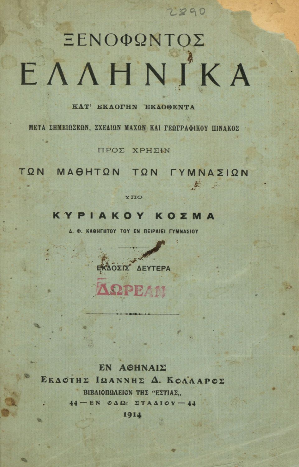 Τίτλος: Ξενοφώντος Ελληνικά προς χρήσιν των μαθητών των Γυμνασίων