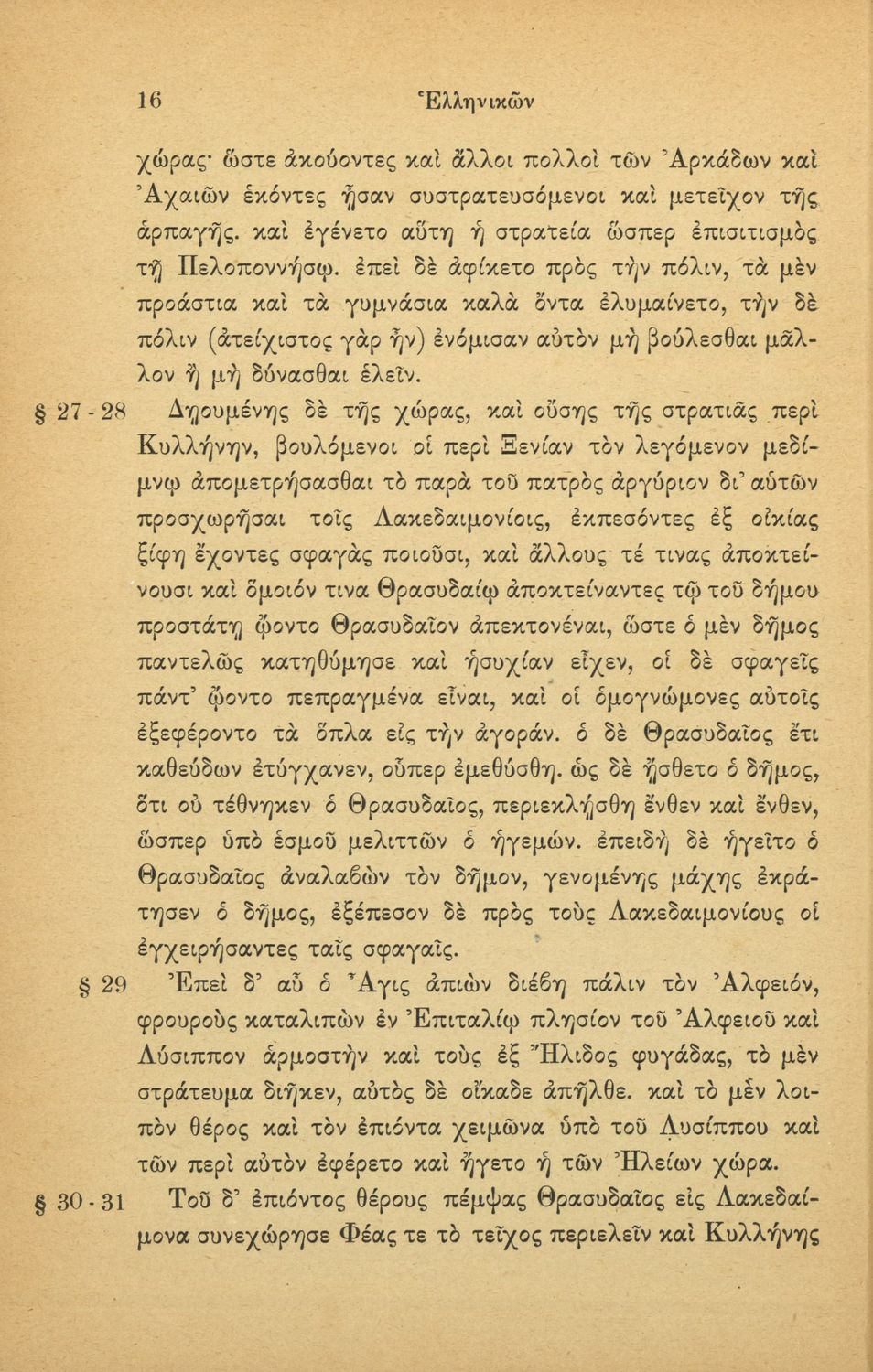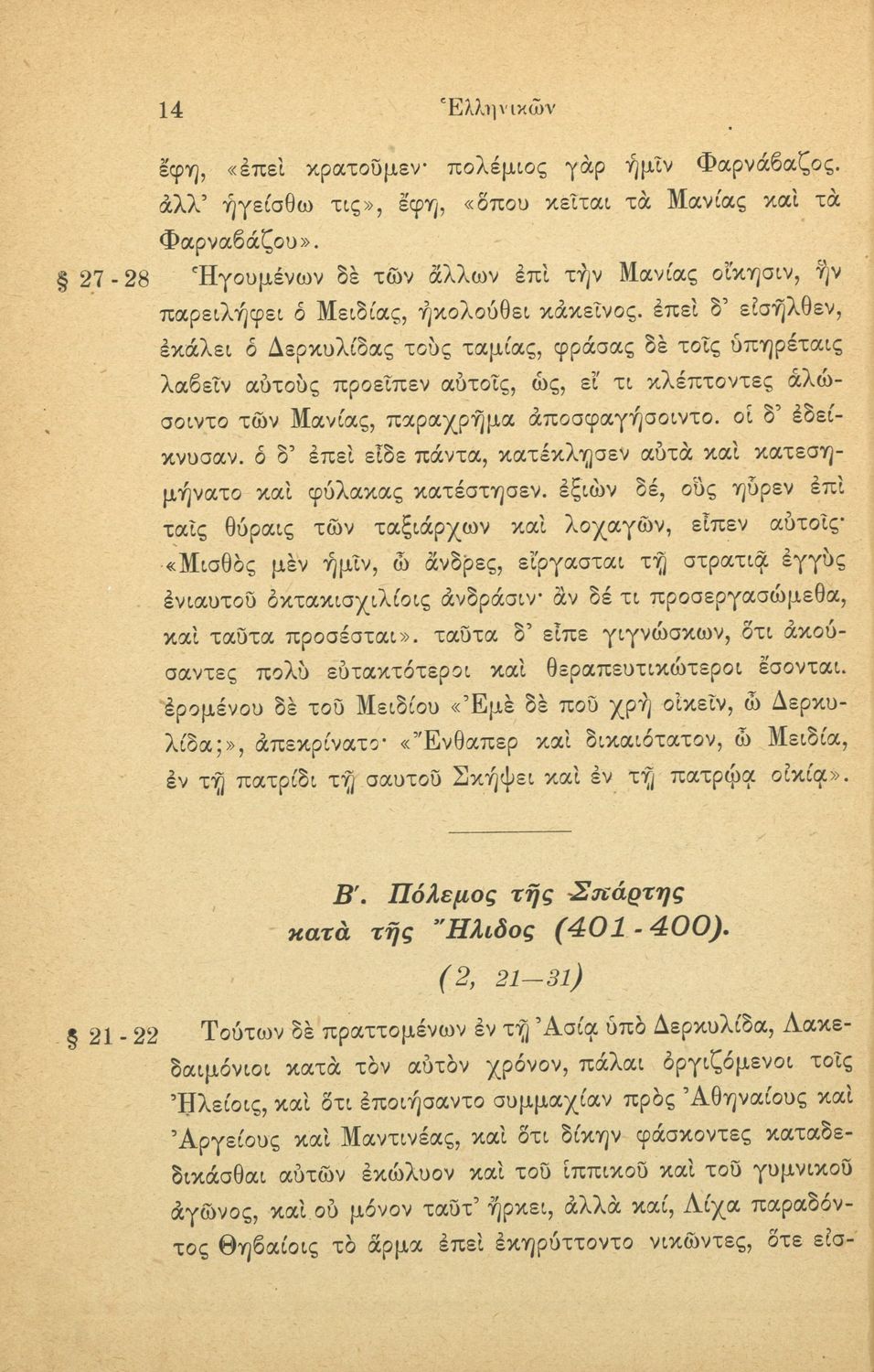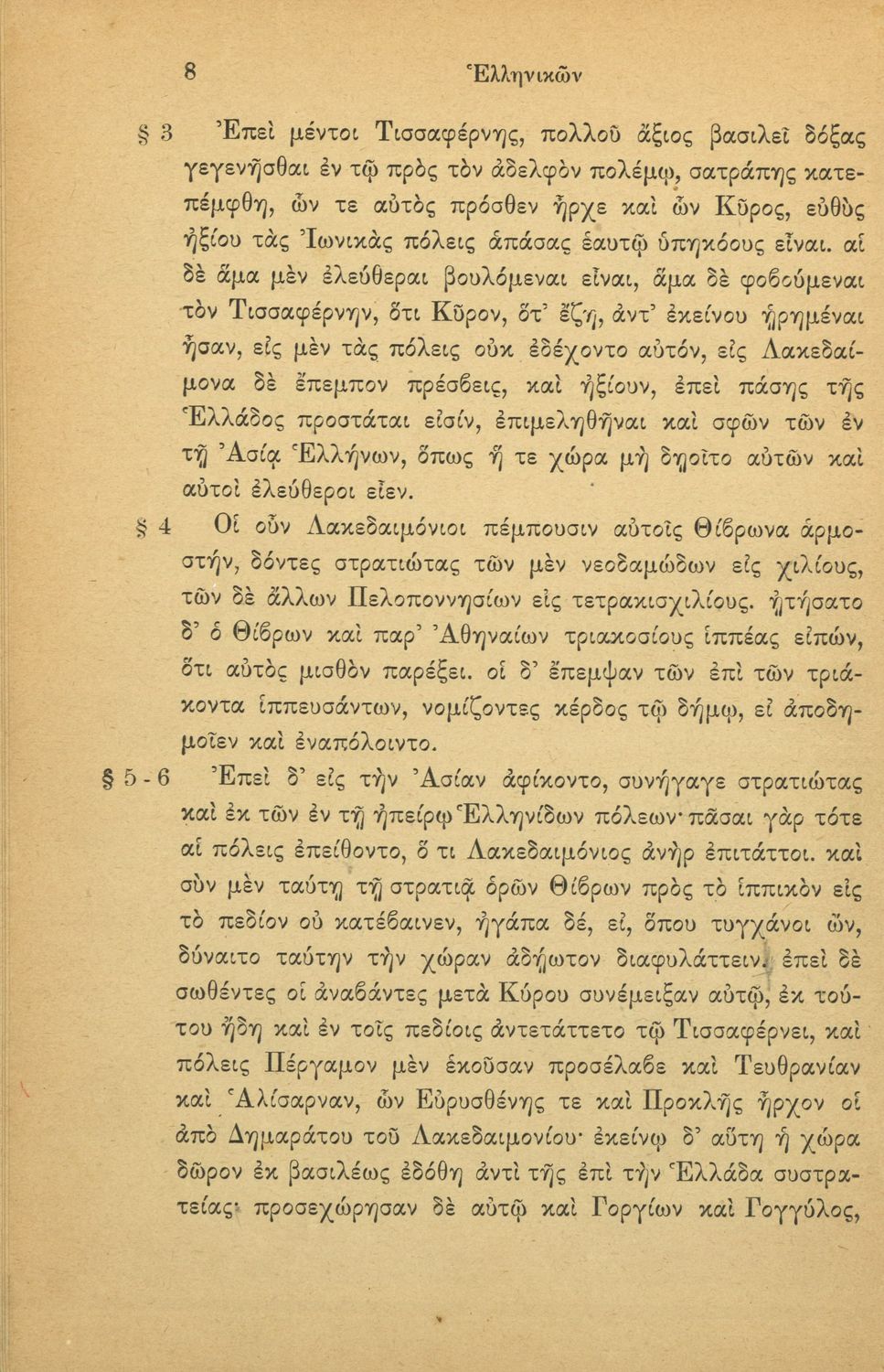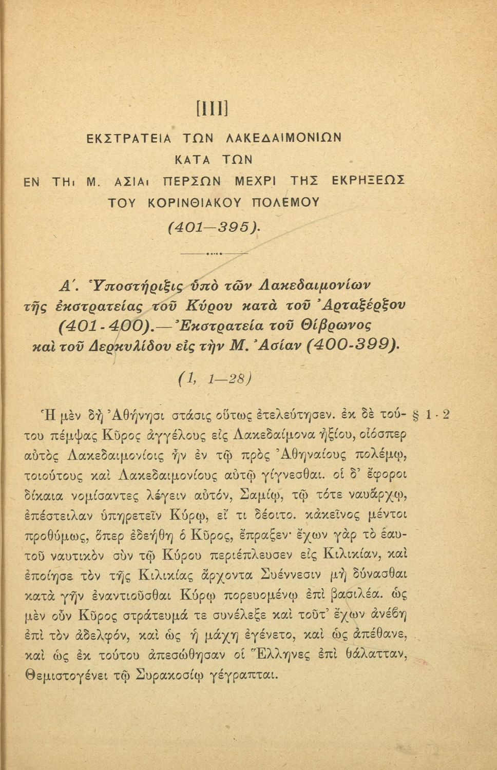 Σχολικό εγχειρίδιο Αρχαίων Ελληνικών για τη Β΄ Γυμνασίου που περιλαμβάνει αποσπάσματα από το III και IV βιβλίο των Ελληνικών του Ξενοφώντα και ετυμολογικές σημειώσεις
