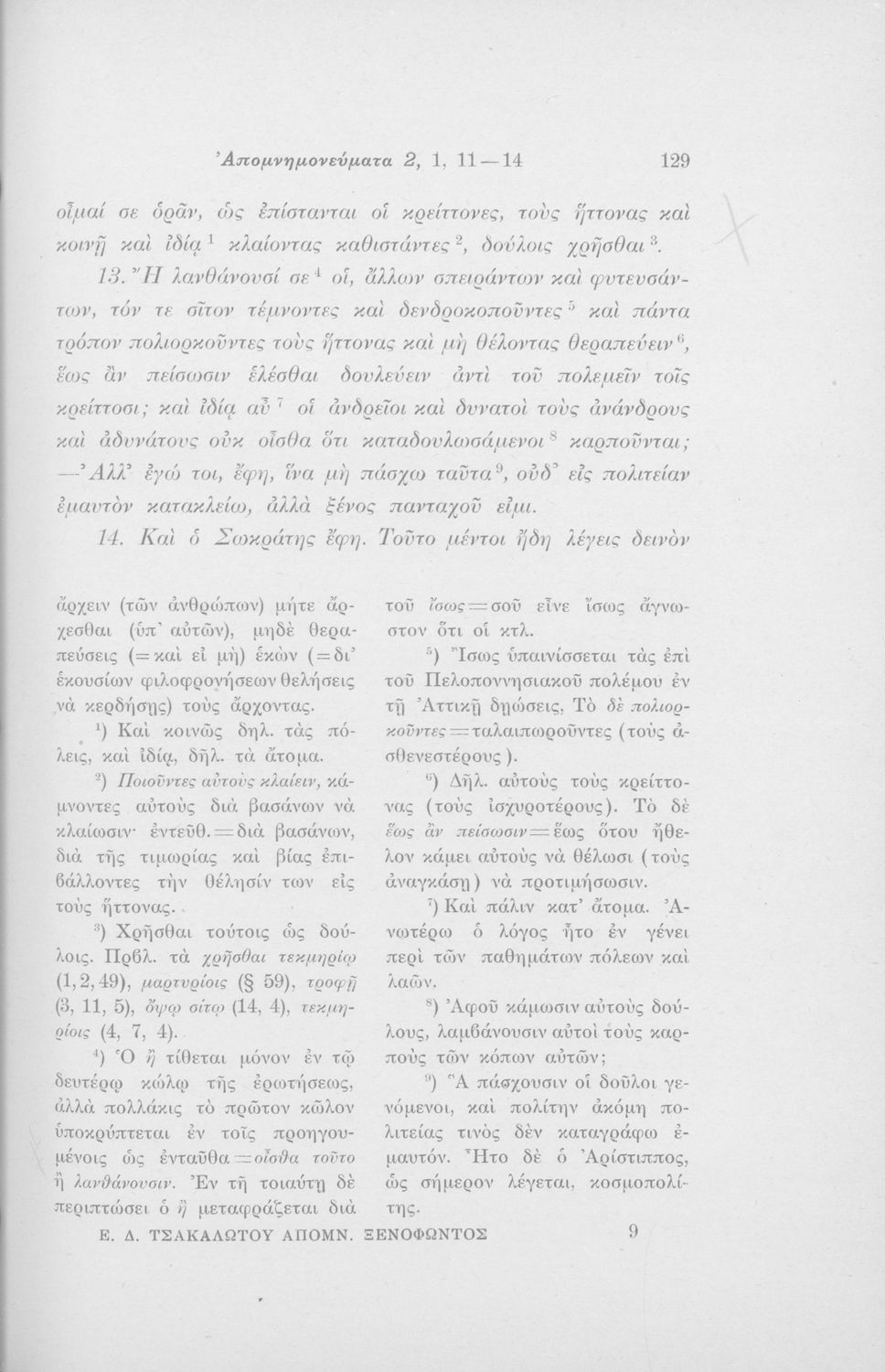 Ξενοφών, Νικόλαος Εμμ. Φραγκίσκος (σχόλια)