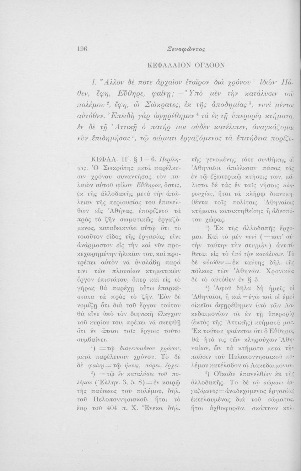 Σχολικό εγχειρίδιο Λατινικών που περιλαμβάνει εισαγωγή στη ζωή, το έργο και το ύφος του Ξενοφώντα, τα Απομνημονεύματά του και ερμηνευτικά και πραγματολογικά σχόλια.