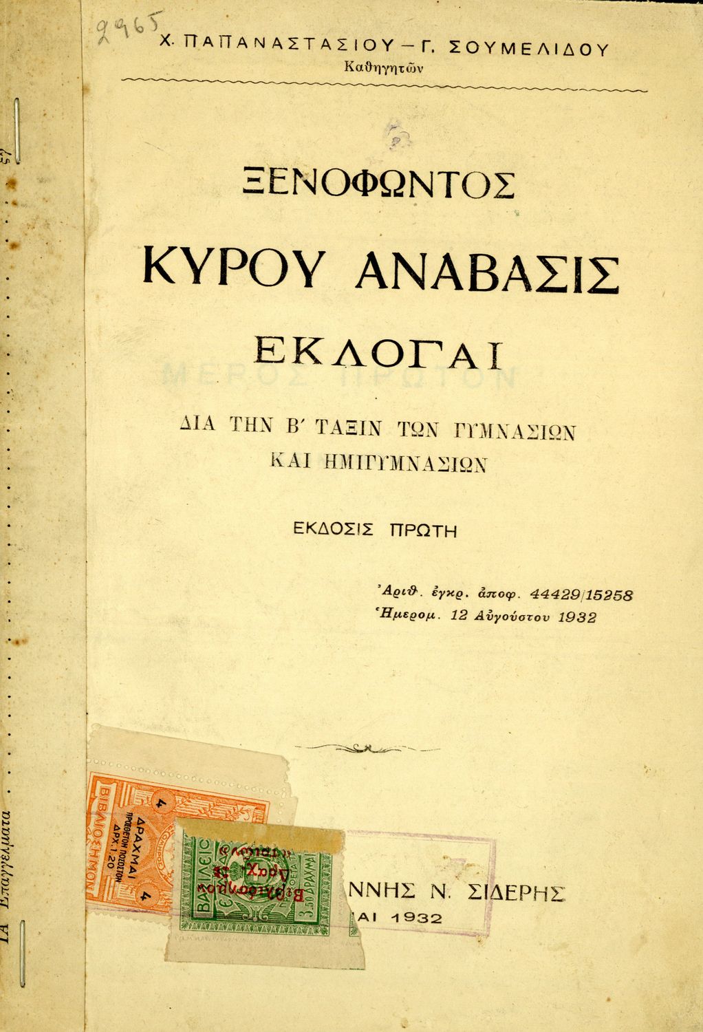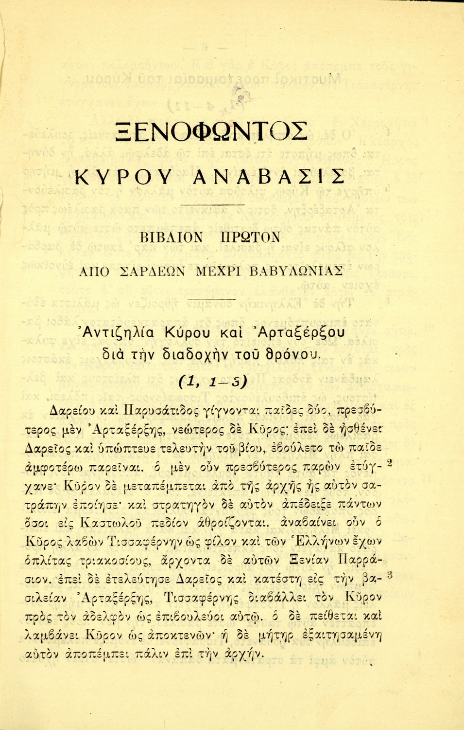 Τίτλος: Ξενοφώντος Κύρου Ανάβασις εκλογαί διά την Β΄ τάξιν των Γυμνασίων και Ημιγυμνασίων