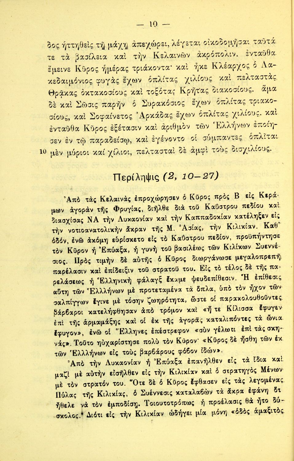 Ξενοφώντος Κύρου Ανάβασις εκλογαί διά την Β΄ τάξιν των Γυμνασίων και Ημιγυμνασίων
