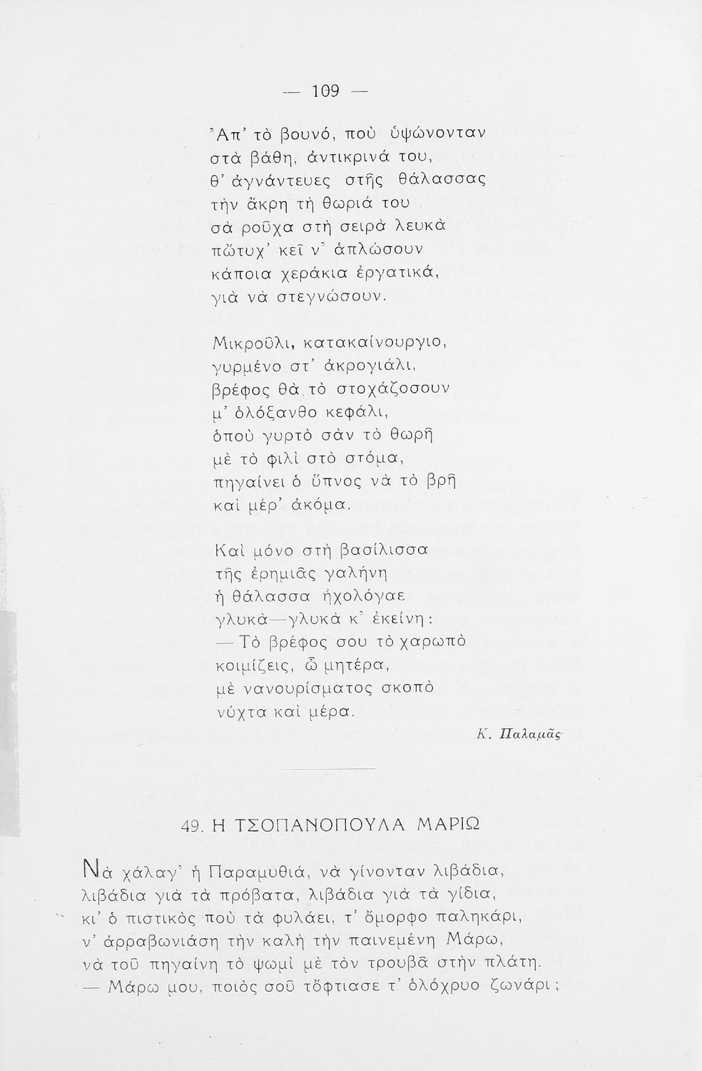 Σχετιζόμενοι όροι:  Παπαντωνίου, Πολέμης, Παλαμάς, Βηλαράς