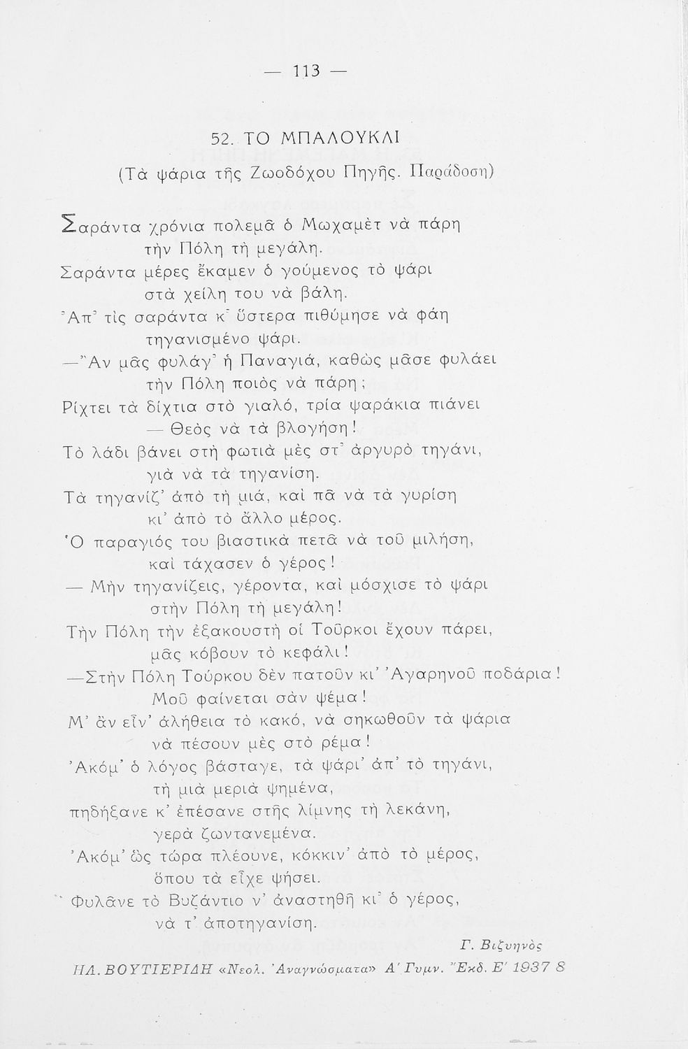 Σχολικό εγχειρίδιο Νέων Ελληνικών Γ΄ Γυμνασίου και Α' Αστικού Σχολείου που περιέχει πεζά και ποιήματα Ελλήνων συγγραφέων εμπνευσμένα από τη θρησκευτική και κοινωνική ζωή, την ελληνική μυθολογία, την αρχαία και