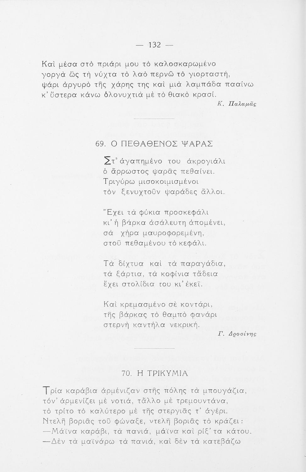 Σχετιζόμενοι όροι:  Παπαντωνίου, Πολέμης, Παλαμάς, Βηλαράς