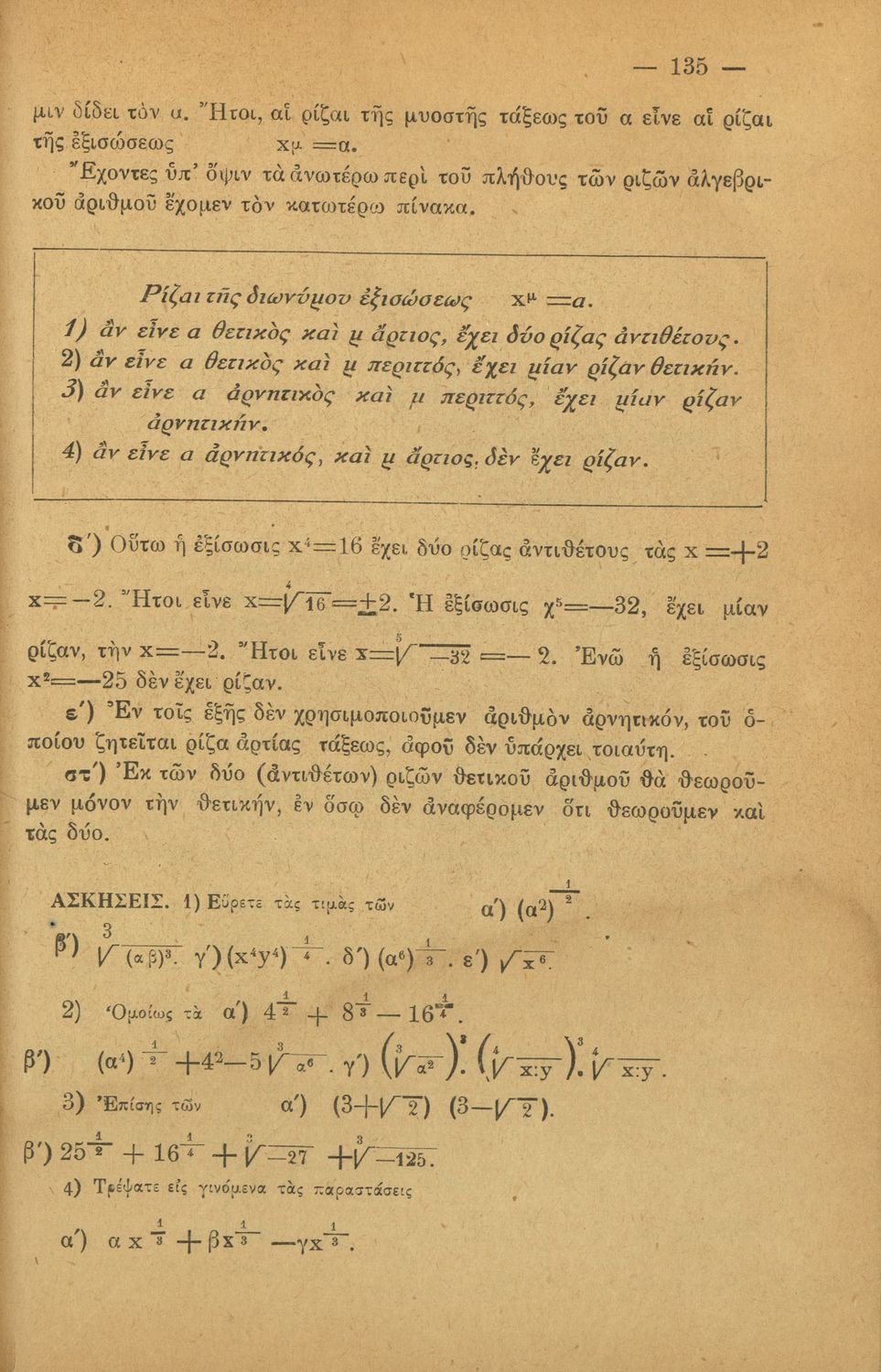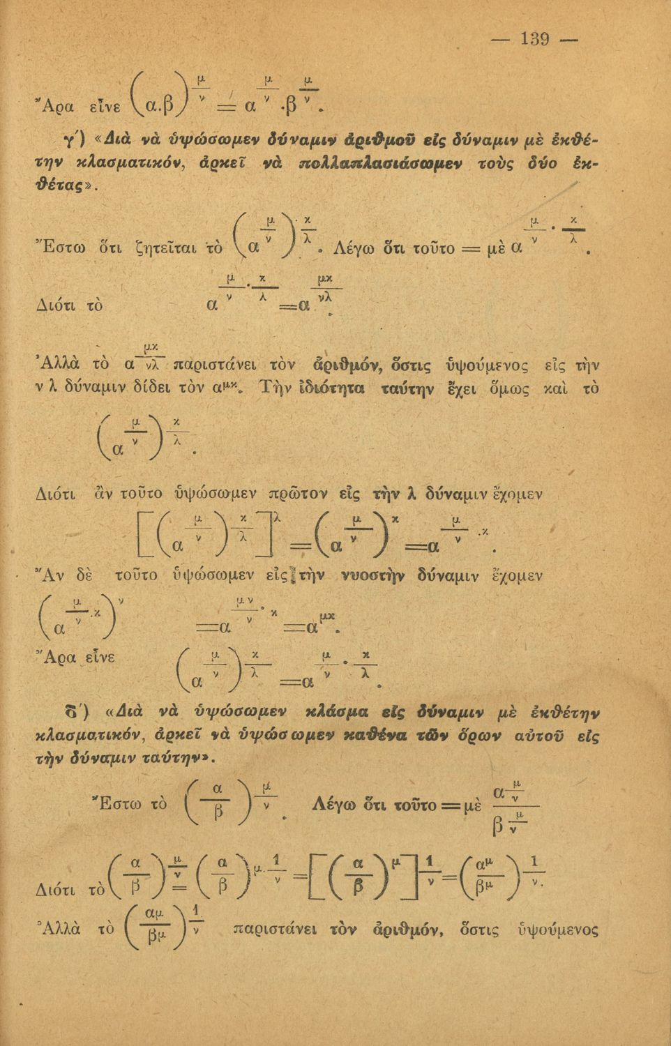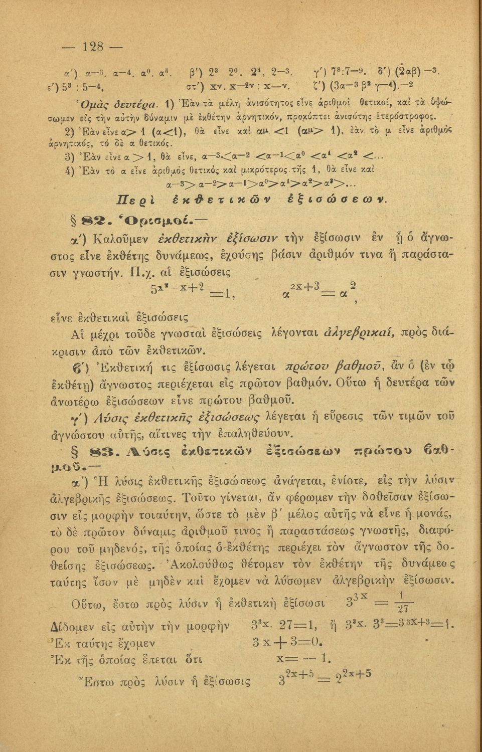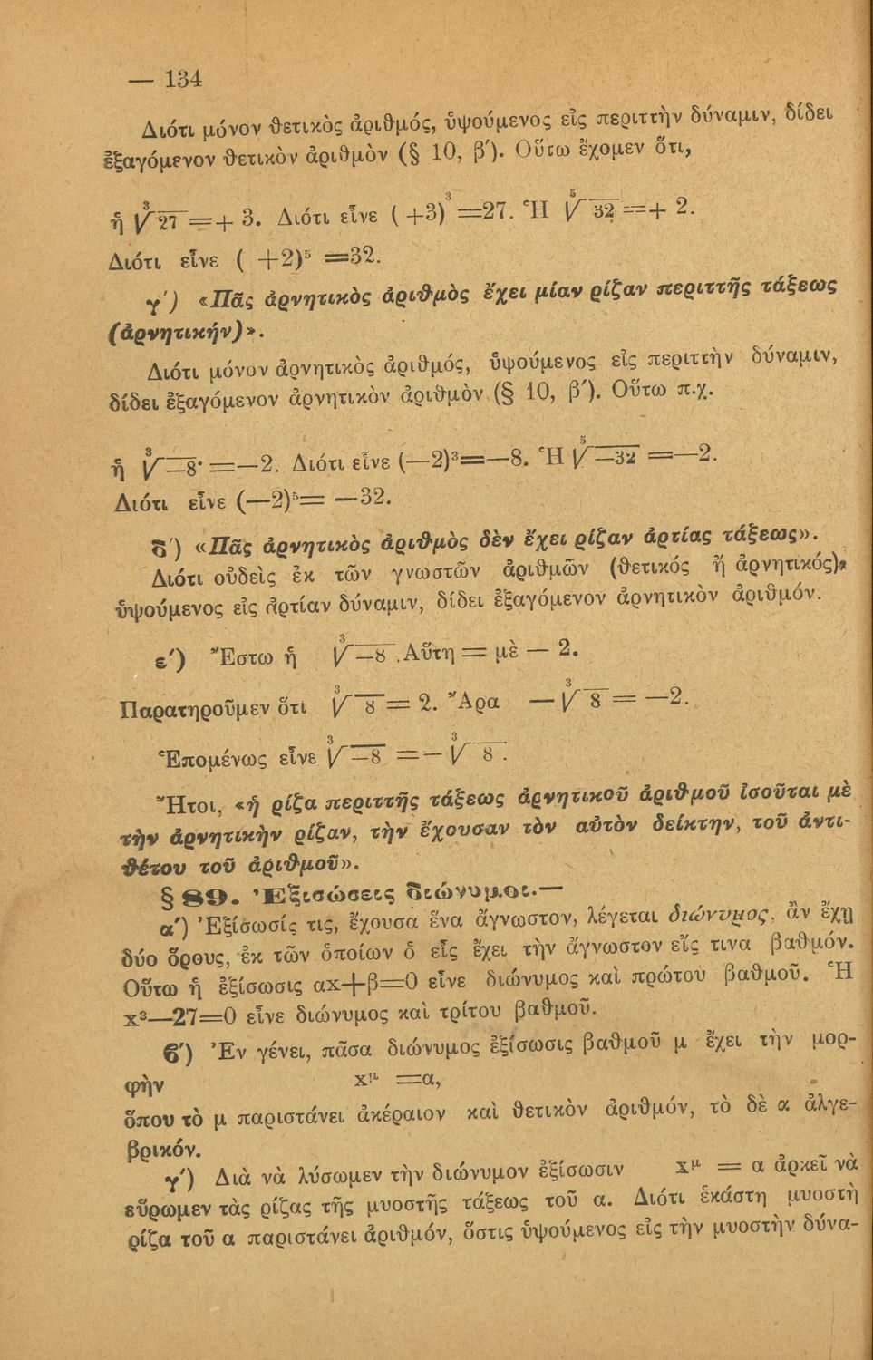 Σχολικό εγχειρίδιο Άλγεβρας για τα Γυμνάσια χωρισμένο σε θεωρία και ασκήσεις. Ο συγγραφέας ήταν καθηγητής στο Πανεπιστήμιο Αθηνών.