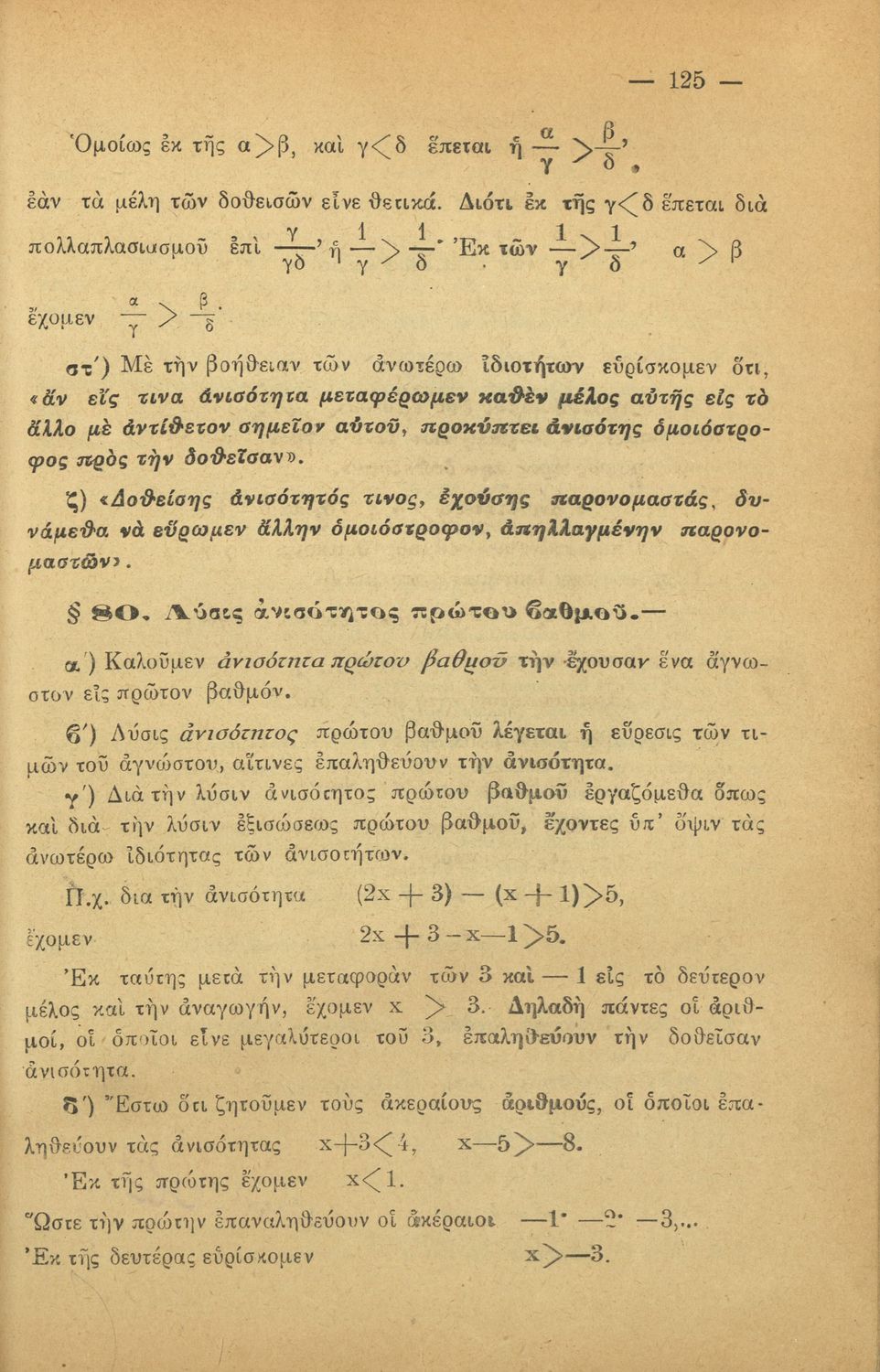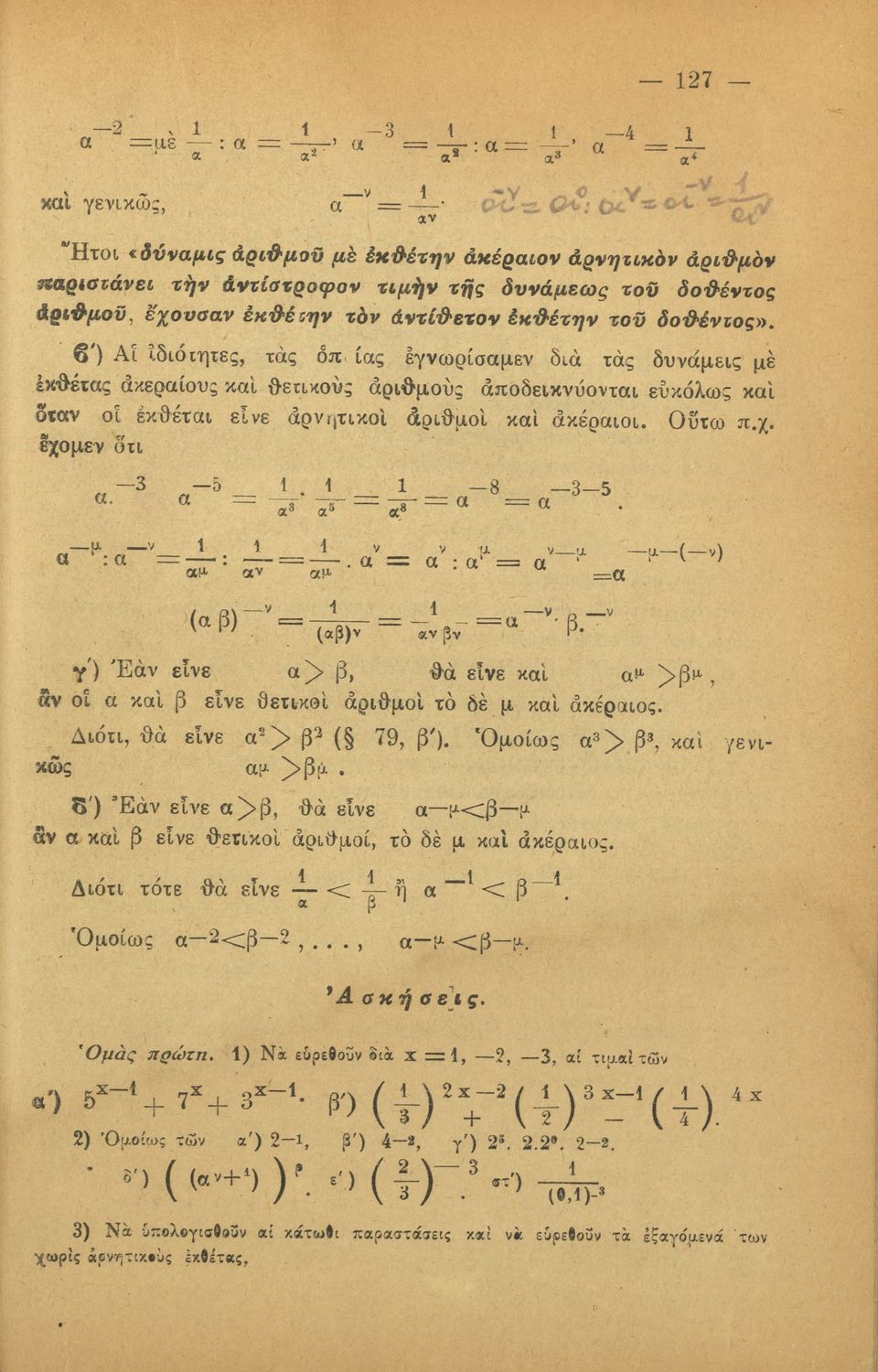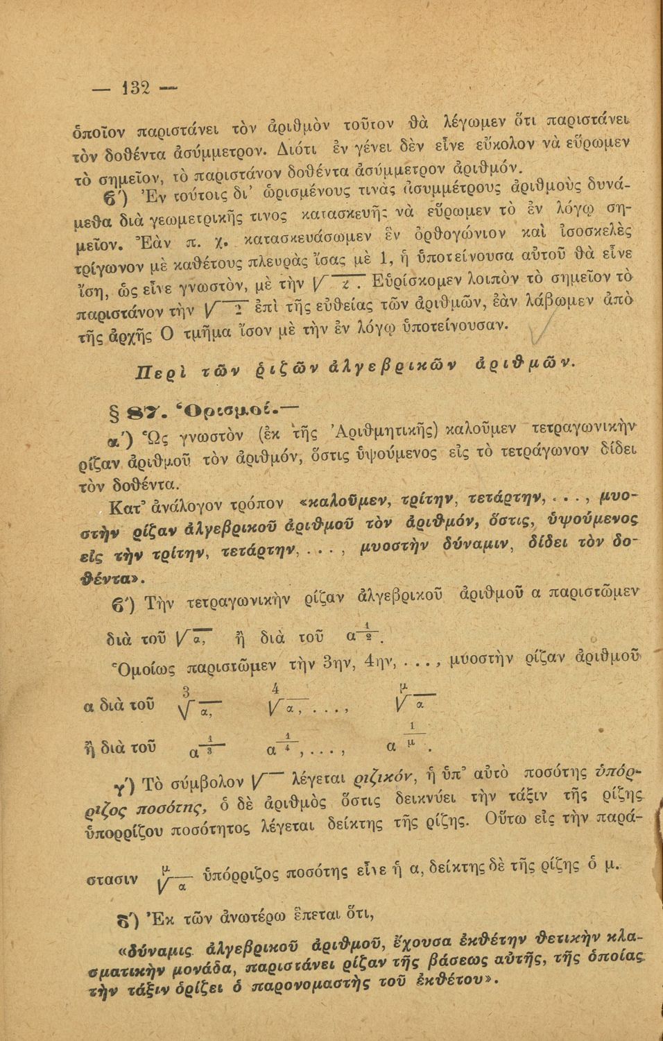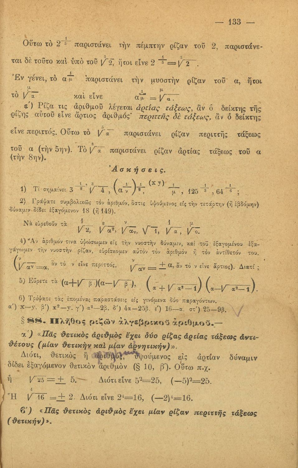 Σχολικό εγχειρίδιο Άλγεβρας για τα Γυμνάσια χωρισμένο σε θεωρία και ασκήσεις. Ο συγγραφέας ήταν καθηγητής στο Πανεπιστήμιο Αθηνών.