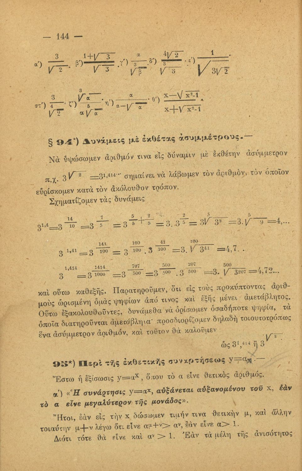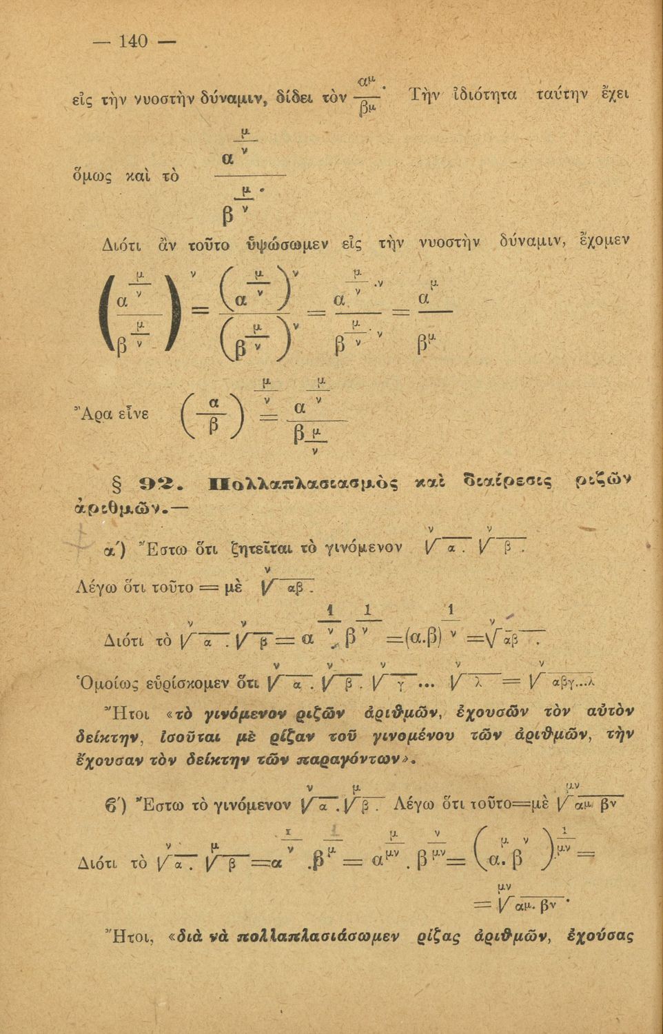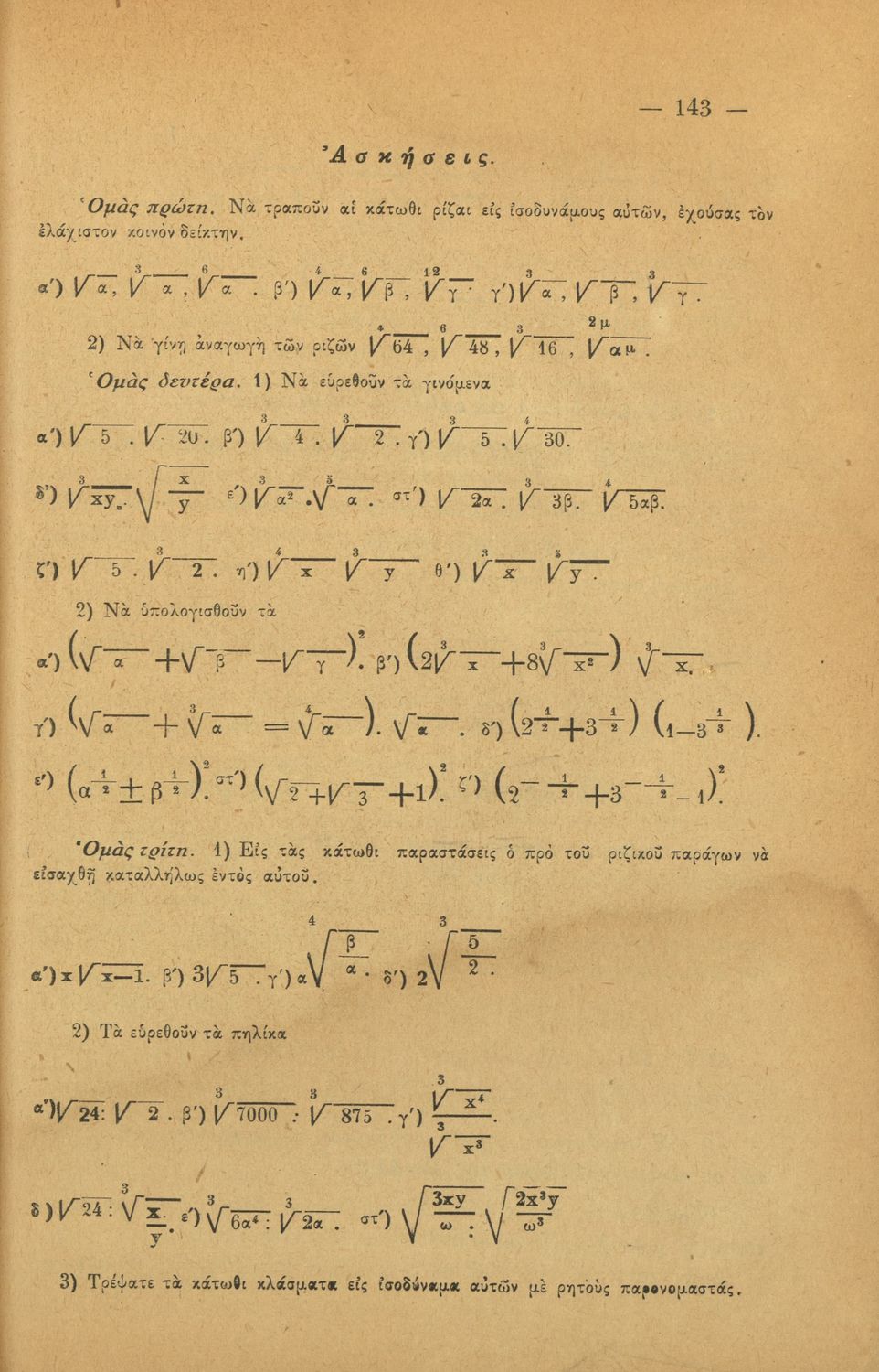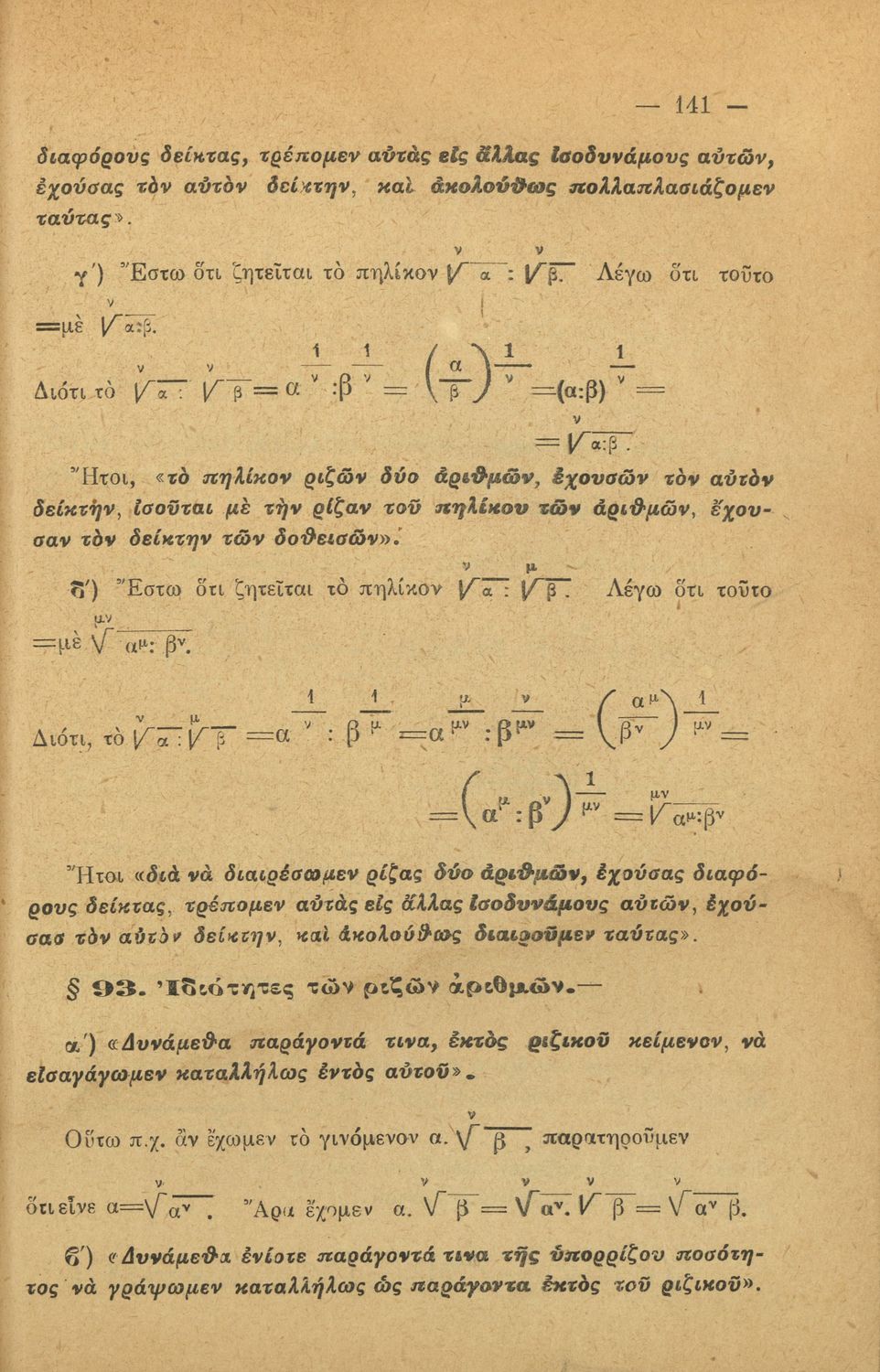 Σχολικό εγχειρίδιο Άλγεβρας για τα Γυμνάσια χωρισμένο σε θεωρία και ασκήσεις. Ο συγγραφέας ήταν καθηγητής στο Πανεπιστήμιο Αθηνών.