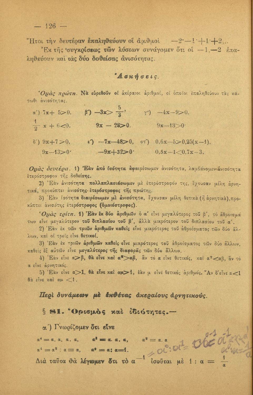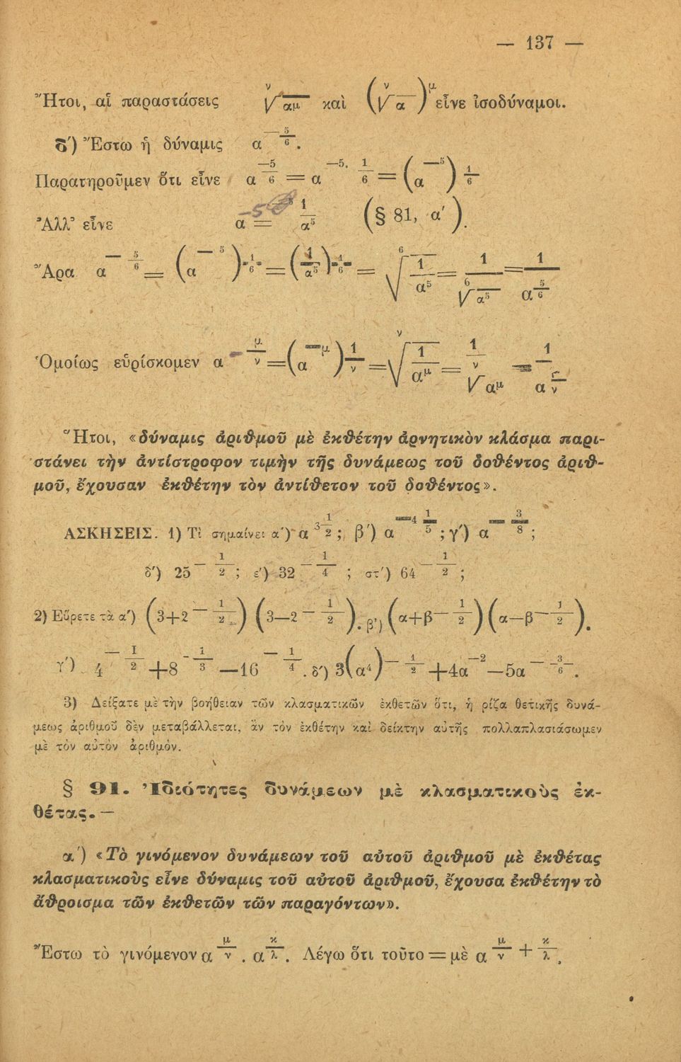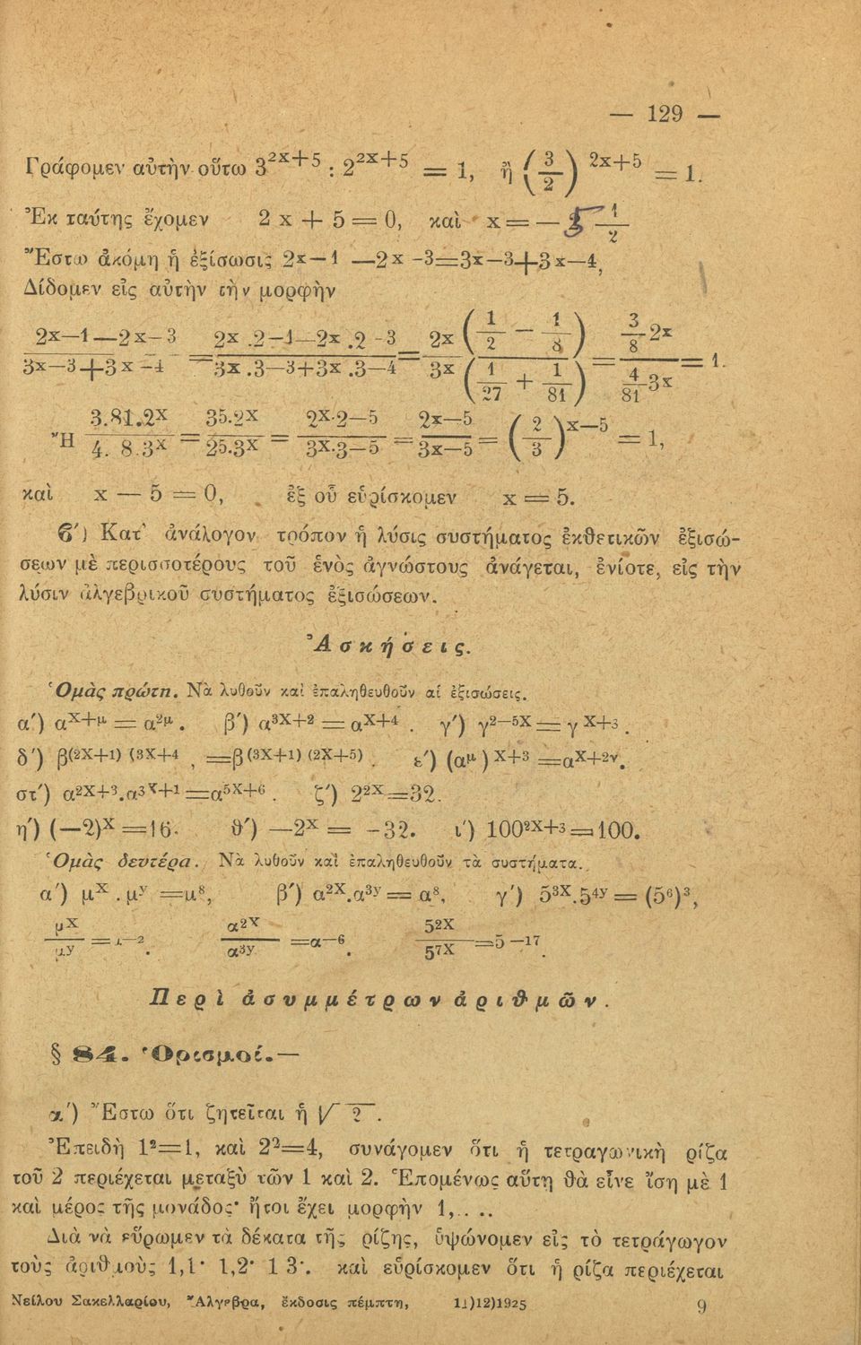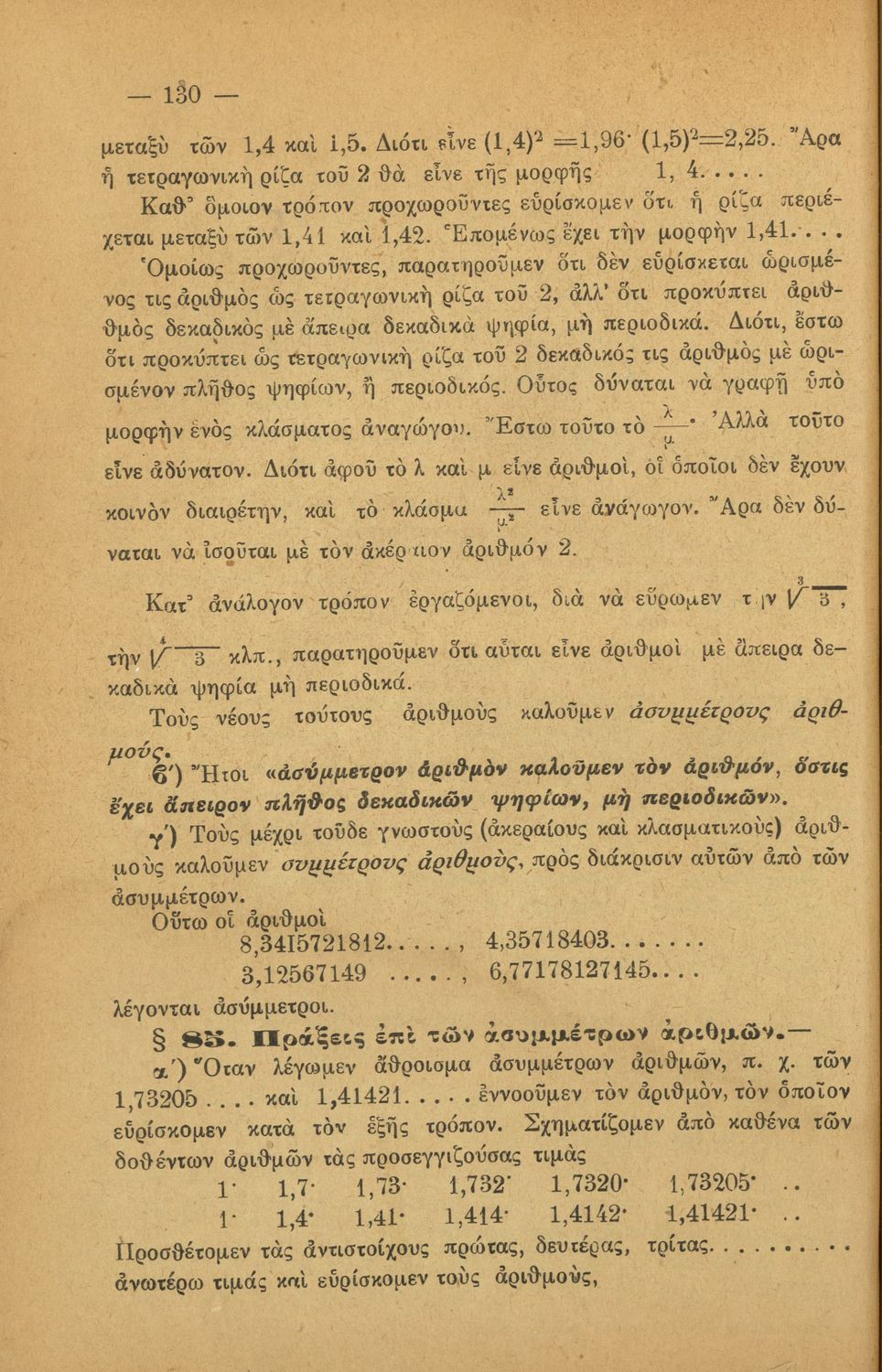 Σχολικό εγχειρίδιο Άλγεβρας για τα Γυμνάσια χωρισμένο σε θεωρία και ασκήσεις. Ο συγγραφέας ήταν καθηγητής στο Πανεπιστήμιο Αθηνών.