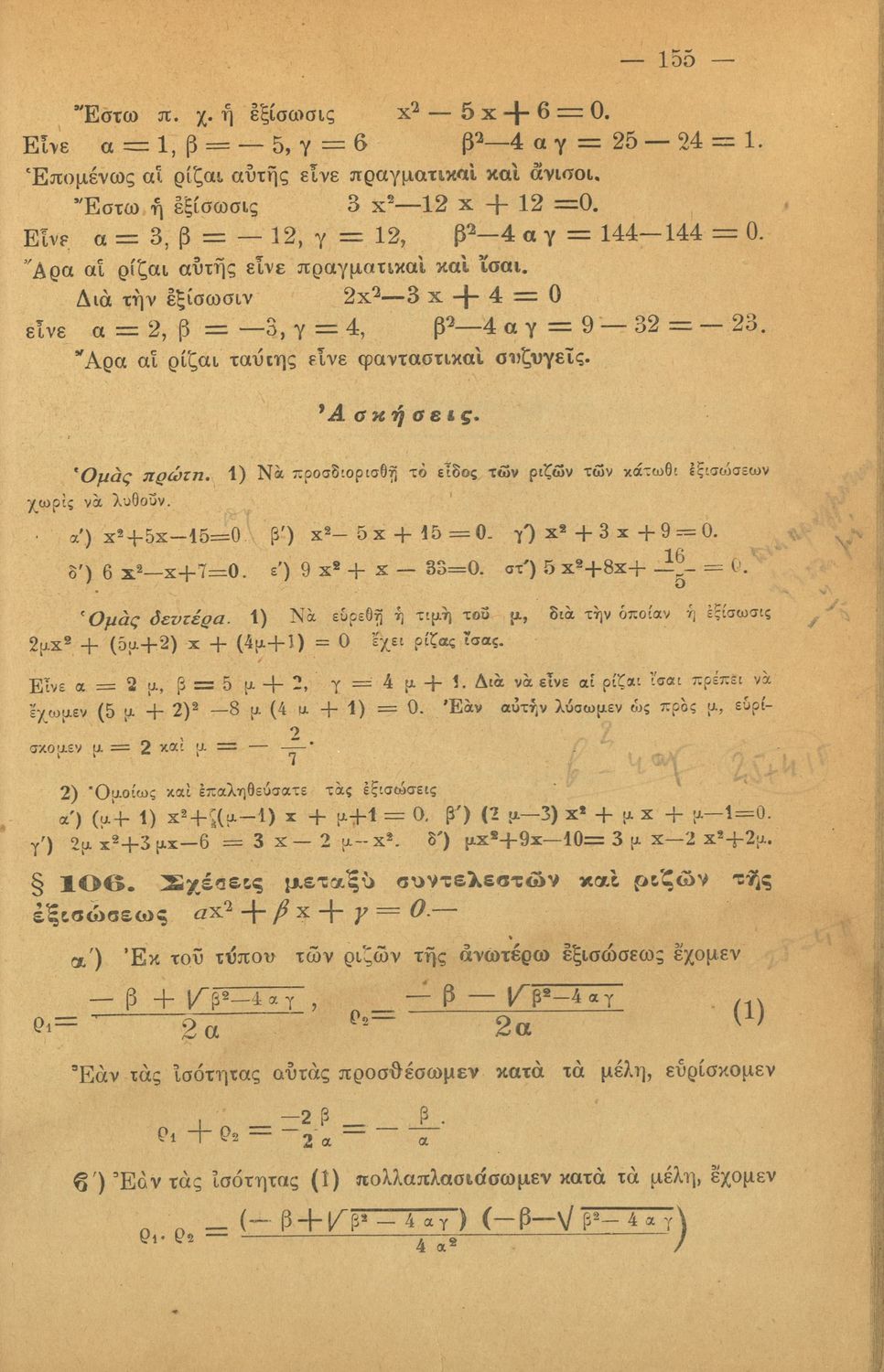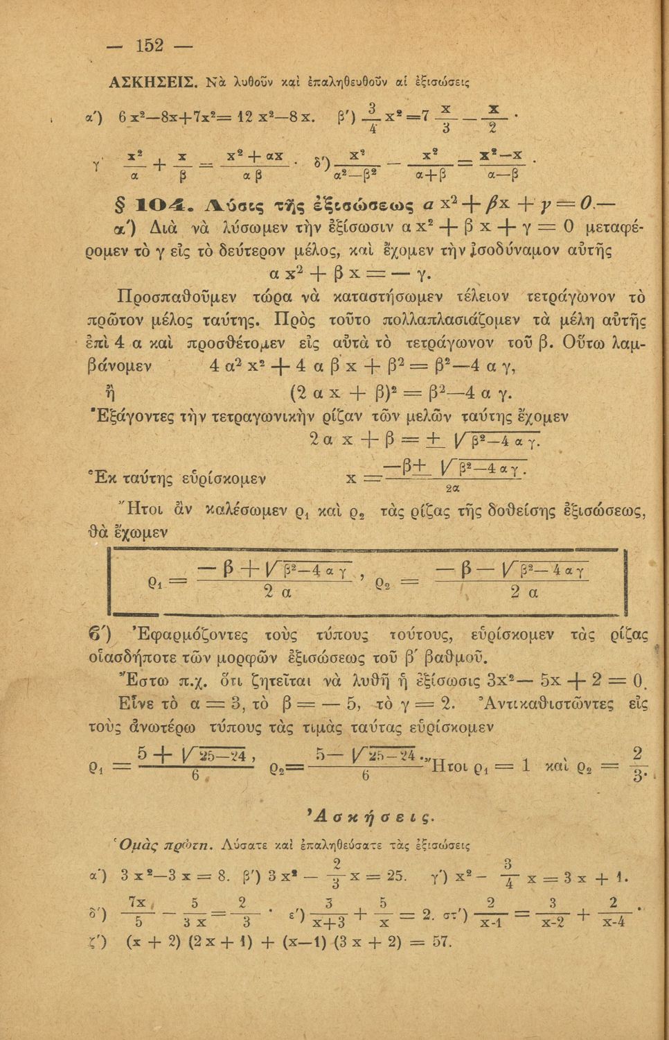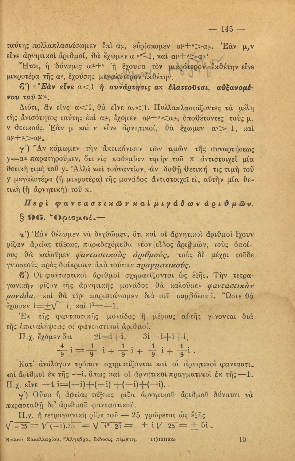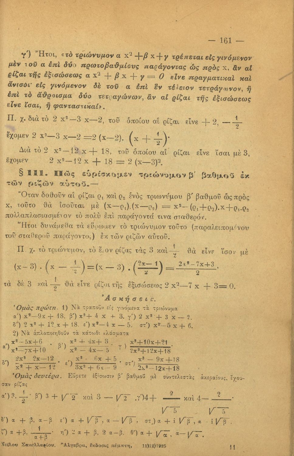 Σχολικό εγχειρίδιο Άλγεβρας για τα Γυμνάσια χωρισμένο σε θεωρία και ασκήσεις. Ο συγγραφέας ήταν καθηγητής στο Πανεπιστήμιο Αθηνών.