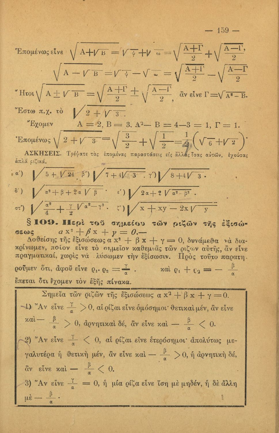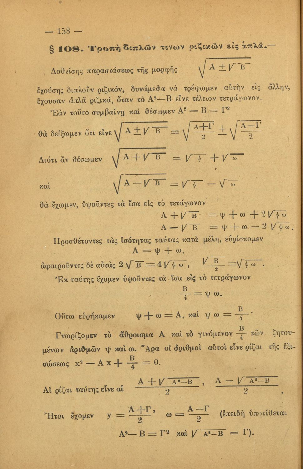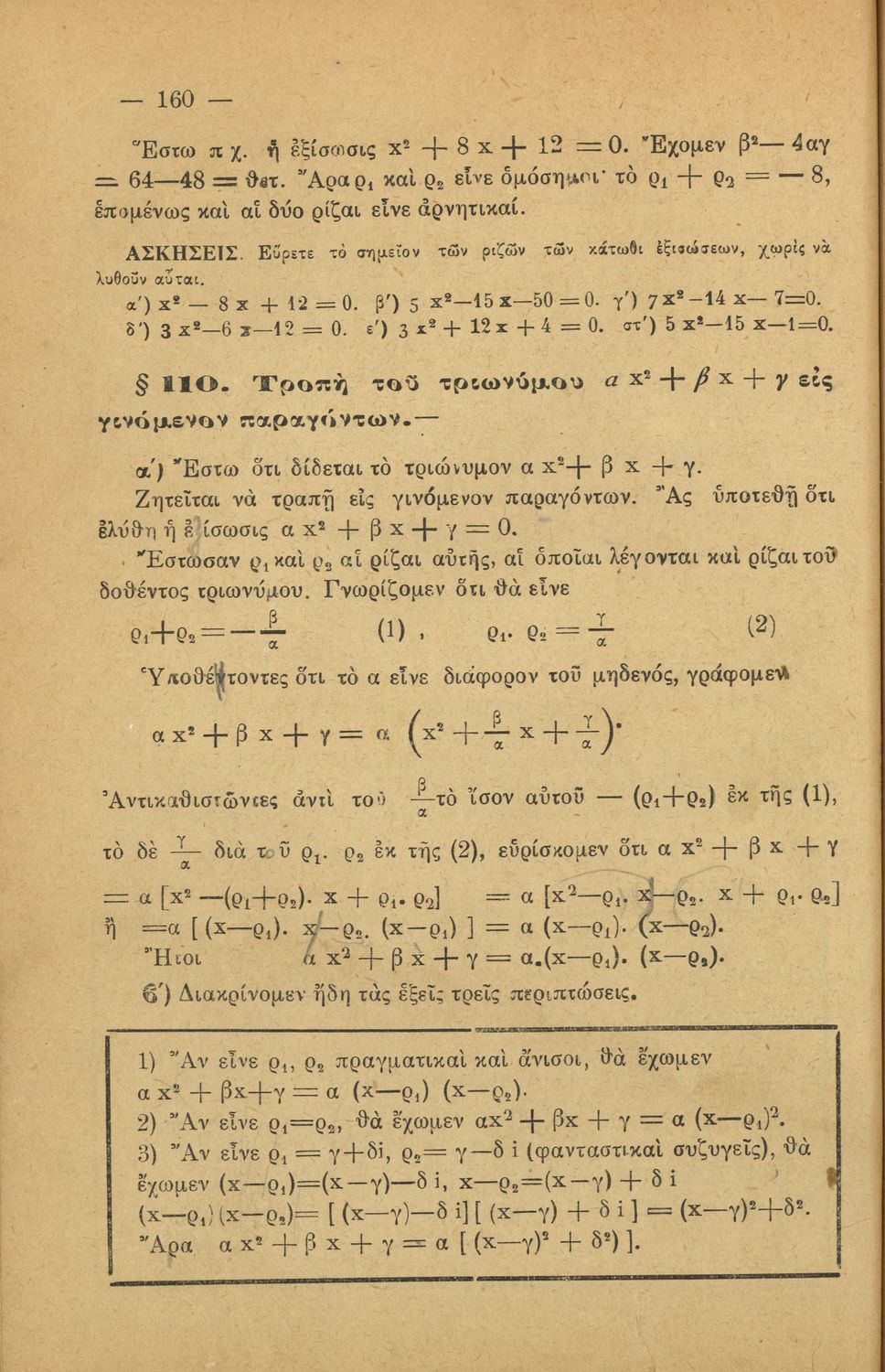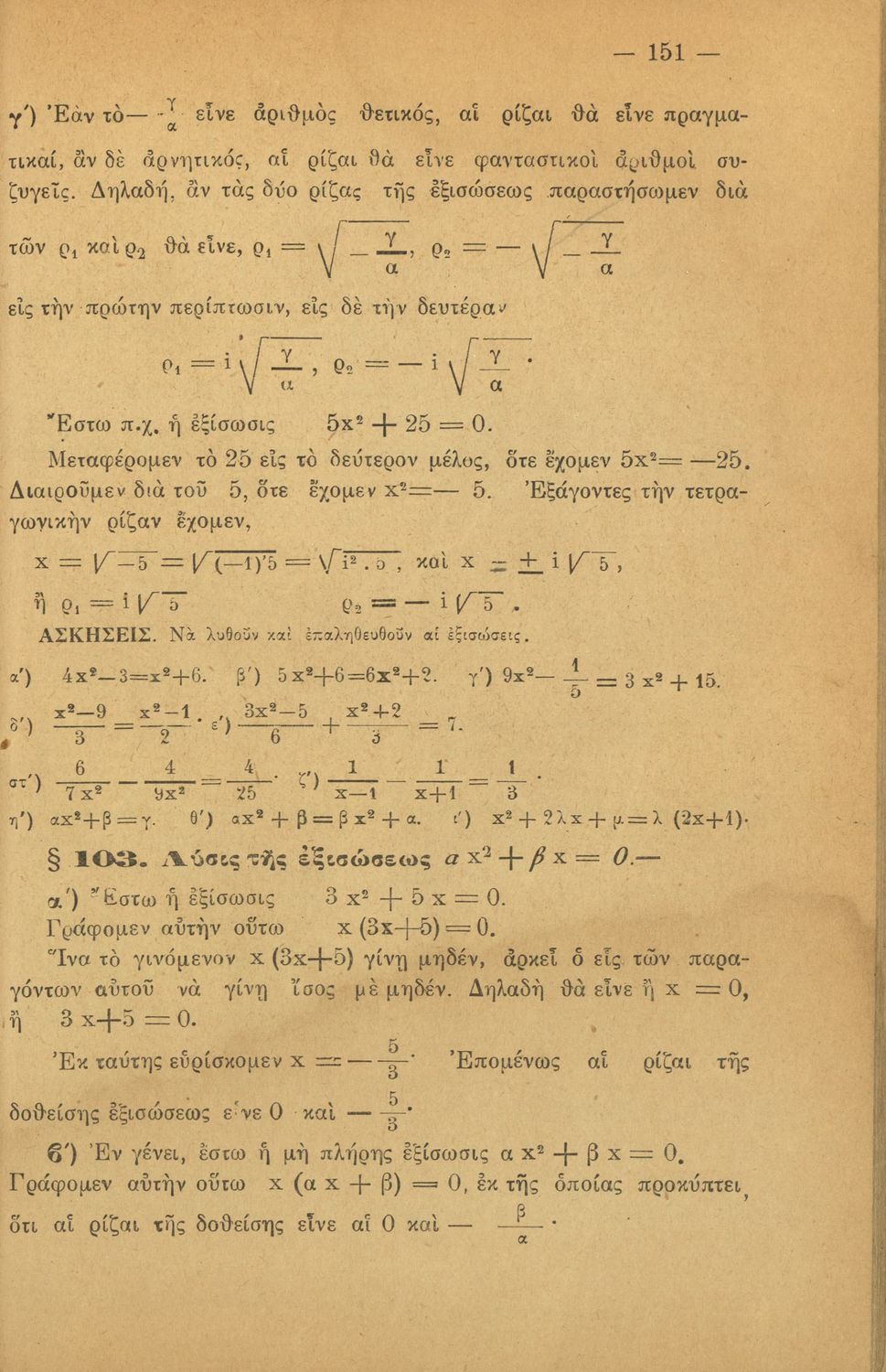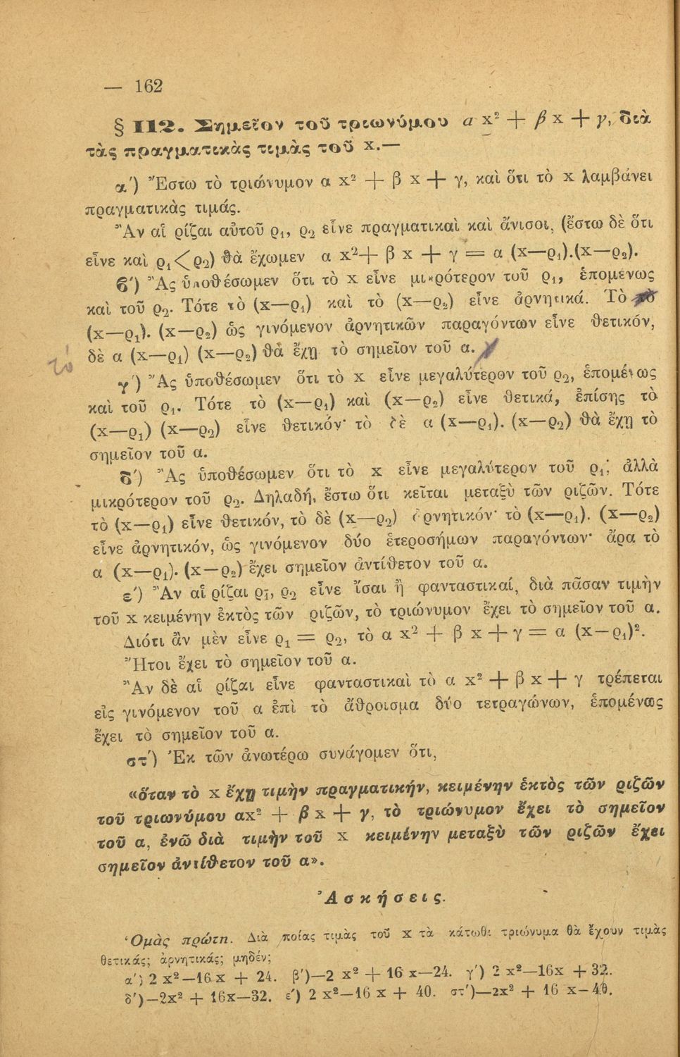 Σχολικό εγχειρίδιο Άλγεβρας για τα Γυμνάσια χωρισμένο σε θεωρία και ασκήσεις. Ο συγγραφέας ήταν καθηγητής στο Πανεπιστήμιο Αθηνών.
