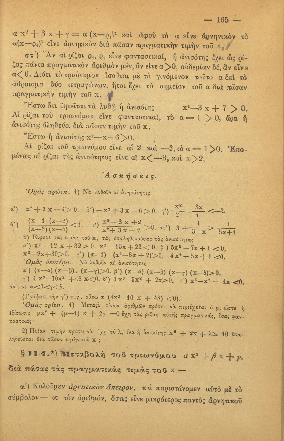 Βαθμίδα εκπαίδευσης: Δευτεροβάθμια Τάξη: Γυμνάσιο Μάθημα: Άλγεβρα Γλώσσα: Καθαρεύουσα Παρουσίαση περιεχομένου: Σχολικό εγχειρίδιο Άλγεβρας Γυμνασίου που εστιάζει στις αριθμητικές πράξεις, τις δυνάμεις, τις αλγεβρικές παραστάσεις, τις συναρτήσεις και τα πολυώνυμα και τις εξισώσεις πρώτου και δευτέρου βαθμού. |