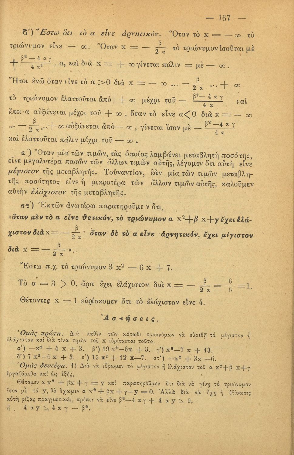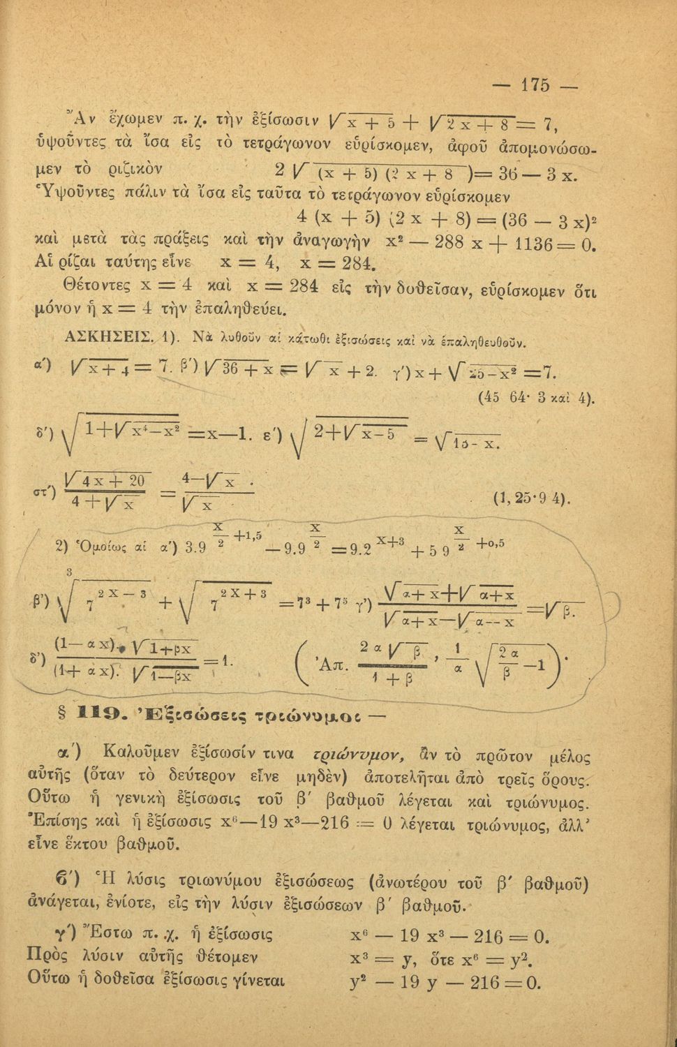 LDR 01231 2200205 4500 035 ## _a20-03156 040 ## _aΚΕΝΕΚ - Εταιρεία Σπουδών Νεοελληνικού Πολιτισμού και Παιδείας 041 ## _ael 100 ## _aΝείλος Σακελλαρίου 110 ## _a3156 245 0# _aΣτοιχειώδης άλγεβρα διά τα Γυμνάσια 250 ## _a5η Έκδοση 260 ## _aΑθήνα _bΙωάννης Ν. Σιδέρης _c1926 300 ## _a244 _c20 520 ## _aΣχολικό εγχειρίδιο Άλγεβρας Γυμνασίου που εστιάζει στις αριθμητικές πράξεις, τις δυνάμεις, τις αλγεβρικές παραστάσεις, τις συναρτήσεις και τα πολυώνυμα και τις εξισώσεις πρώτου και δευτέρου βαθμού. 521 ## _aΓυμνάσιο 522 ## _aΕλλάδα 546 ## _aΚαθαρεύουσα 563 ## _aΣκληρό Εξώφυλλο 650 #4 _aΑλγεβρικές παραστάσεις _aΔυνάμεις _aΕξισώσεις _aΘετικοί και αρνητικοί αριθμοί _aΛογάριθμοι _aΠολυώνυμα _aΠρόοδοι