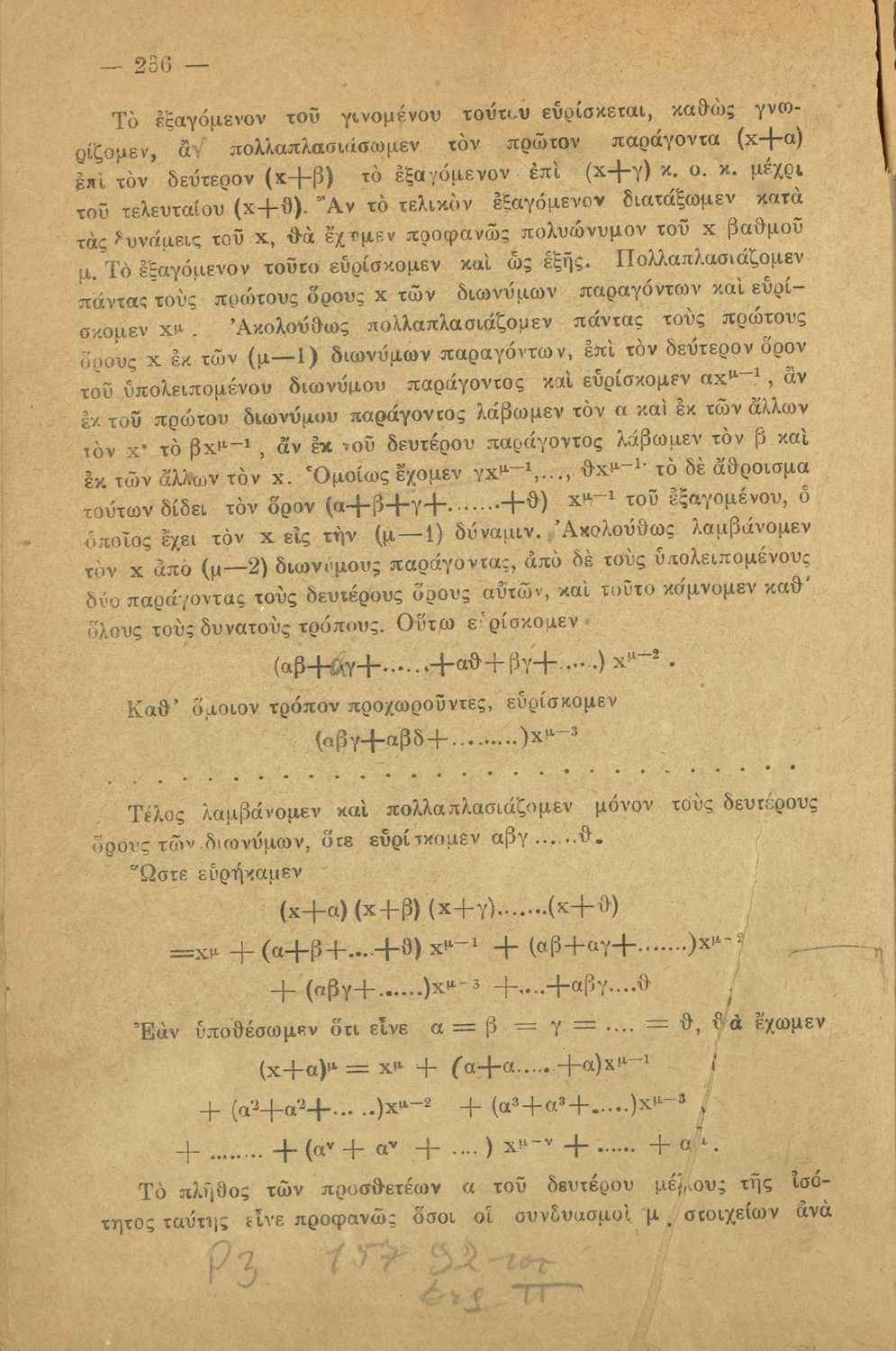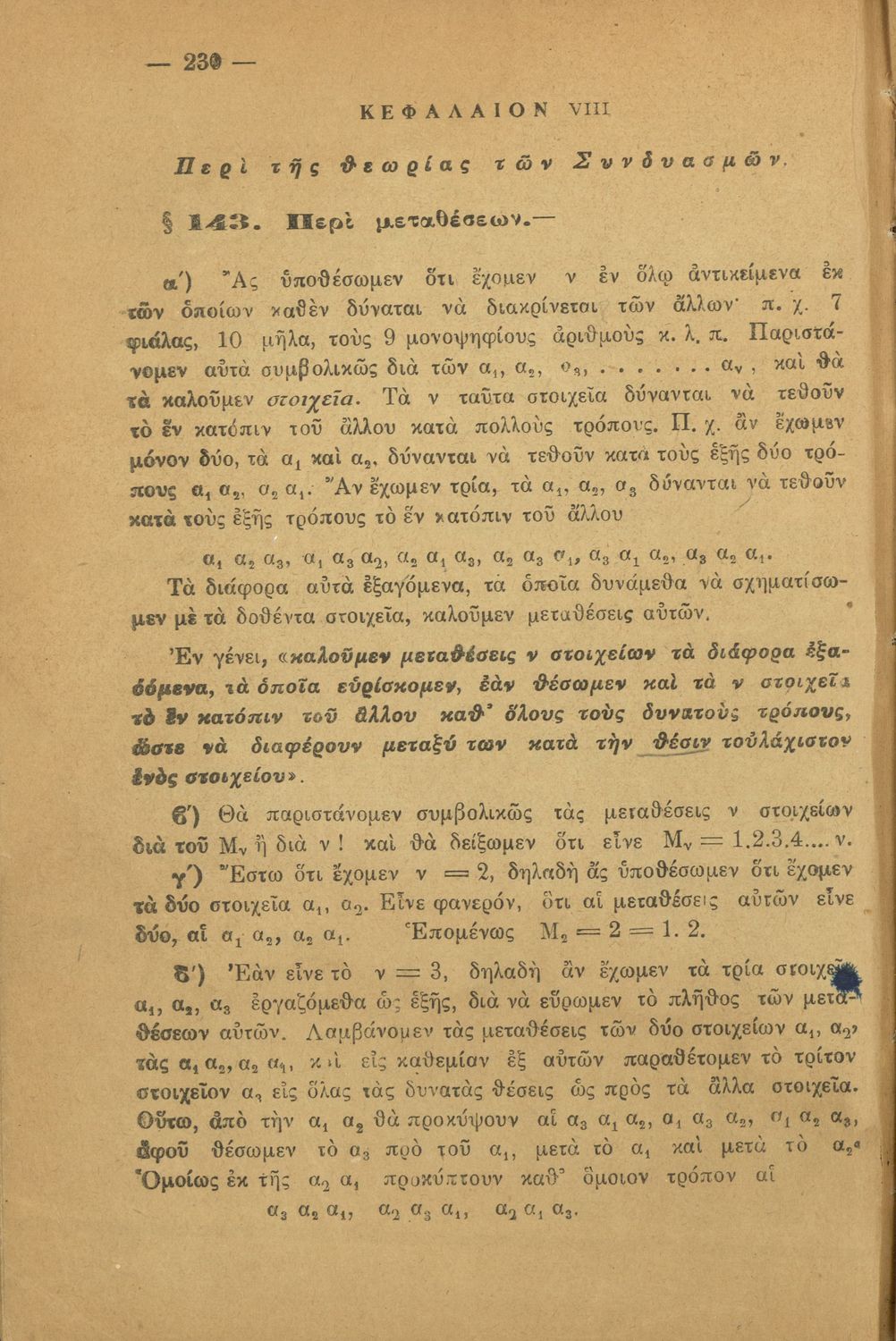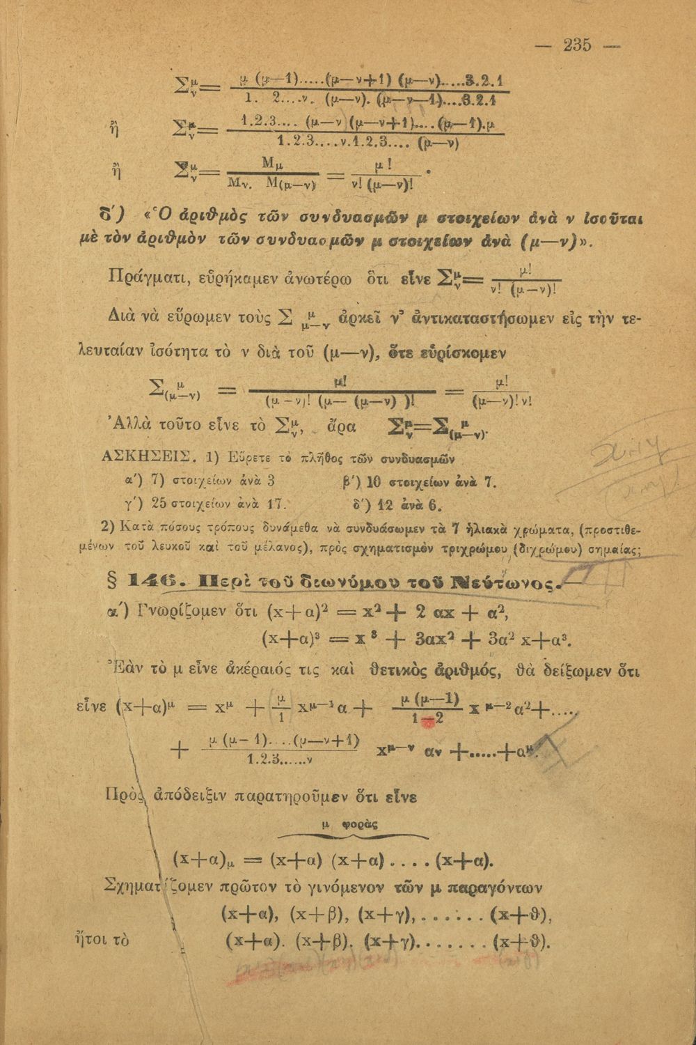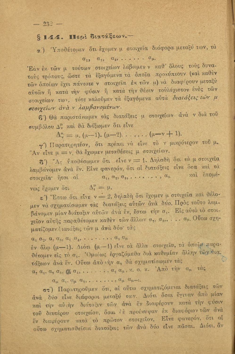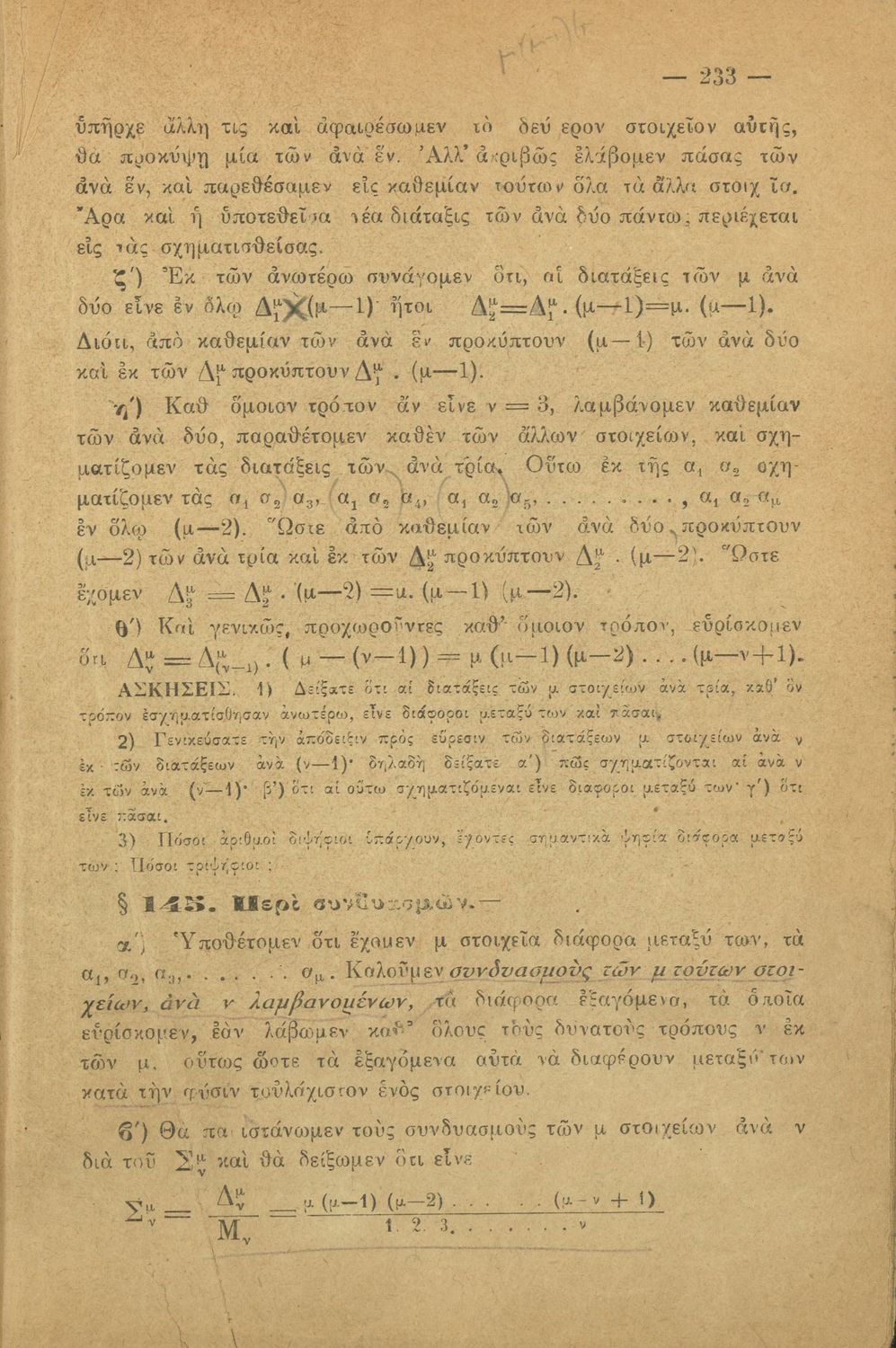 Σχολικό εγχειρίδιο Άλγεβρας για τα Γυμνάσια χωρισμένο σε θεωρία και ασκήσεις. Ο συγγραφέας ήταν καθηγητής στο Πανεπιστήμιο Αθηνών.