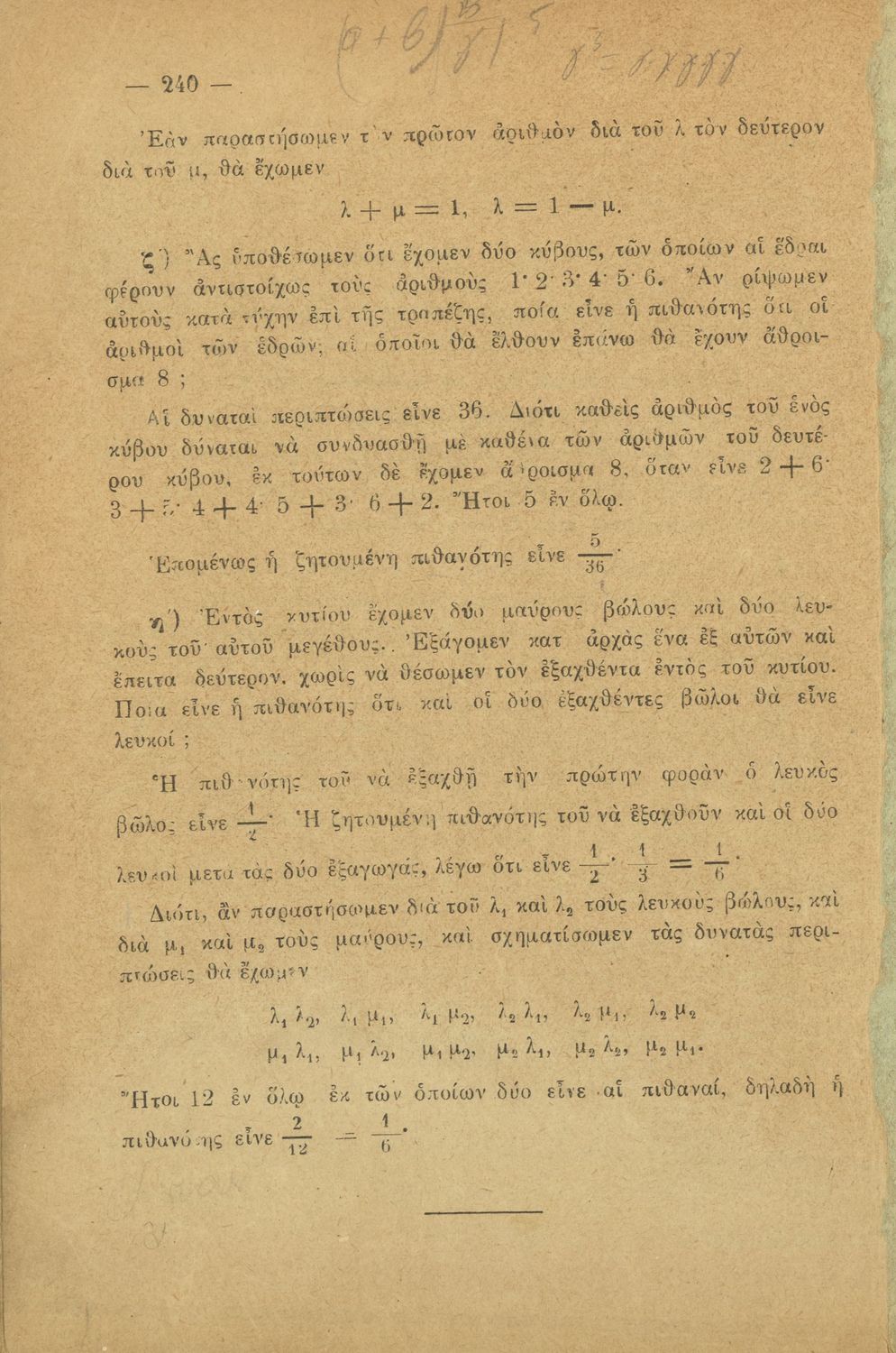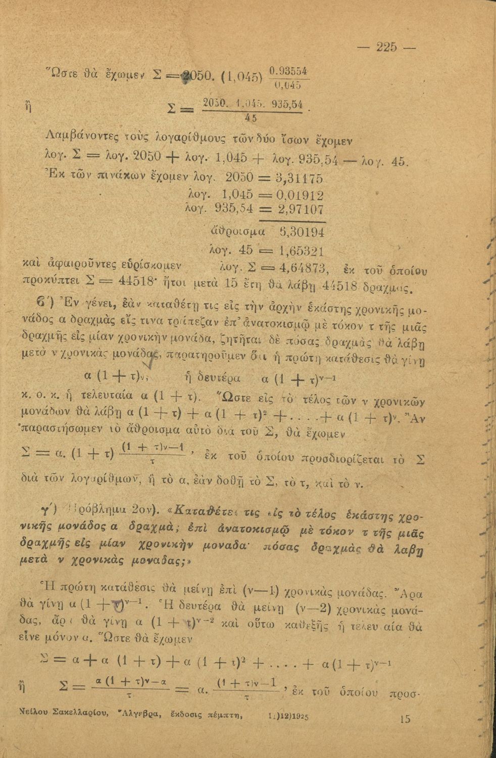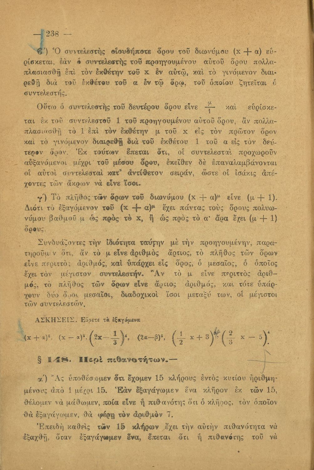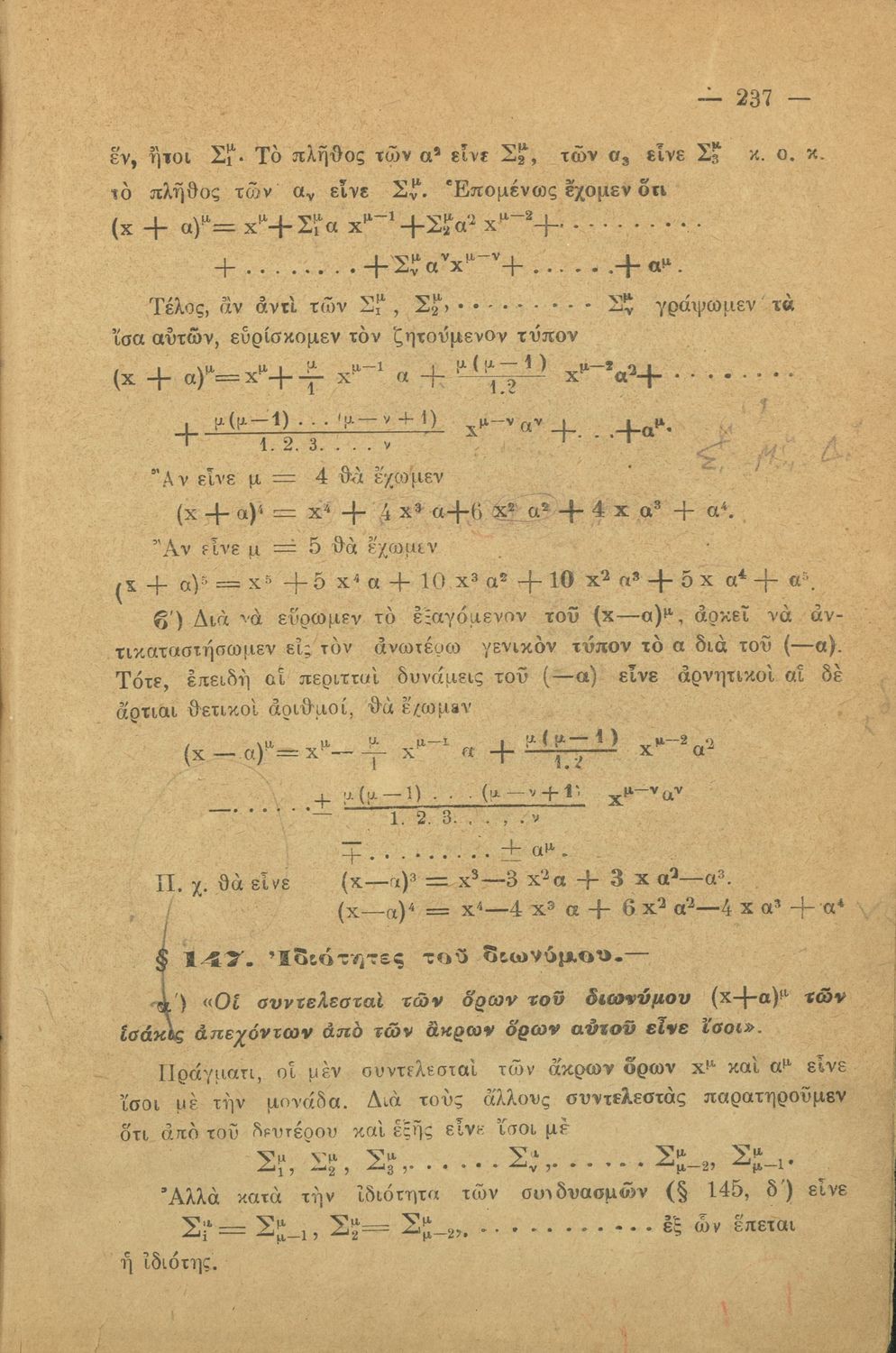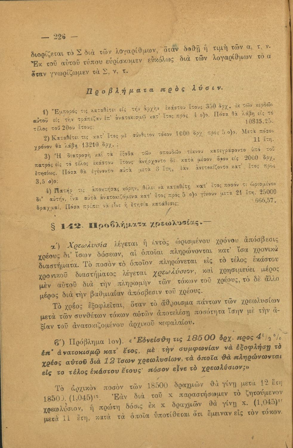 Σχολικό εγχειρίδιο Άλγεβρας για τα Γυμνάσια χωρισμένο σε θεωρία και ασκήσεις. Ο συγγραφέας ήταν καθηγητής στο Πανεπιστήμιο Αθηνών.