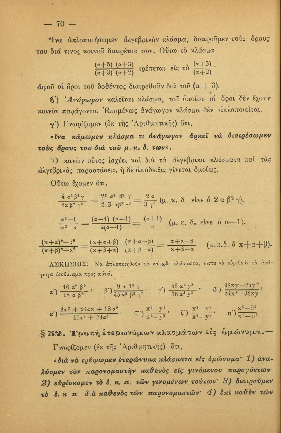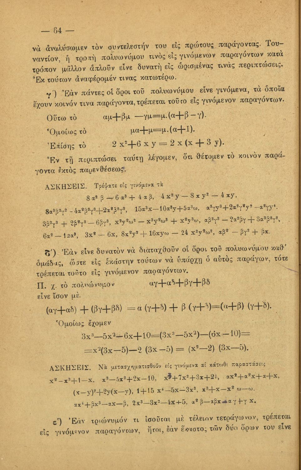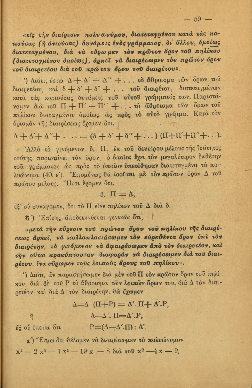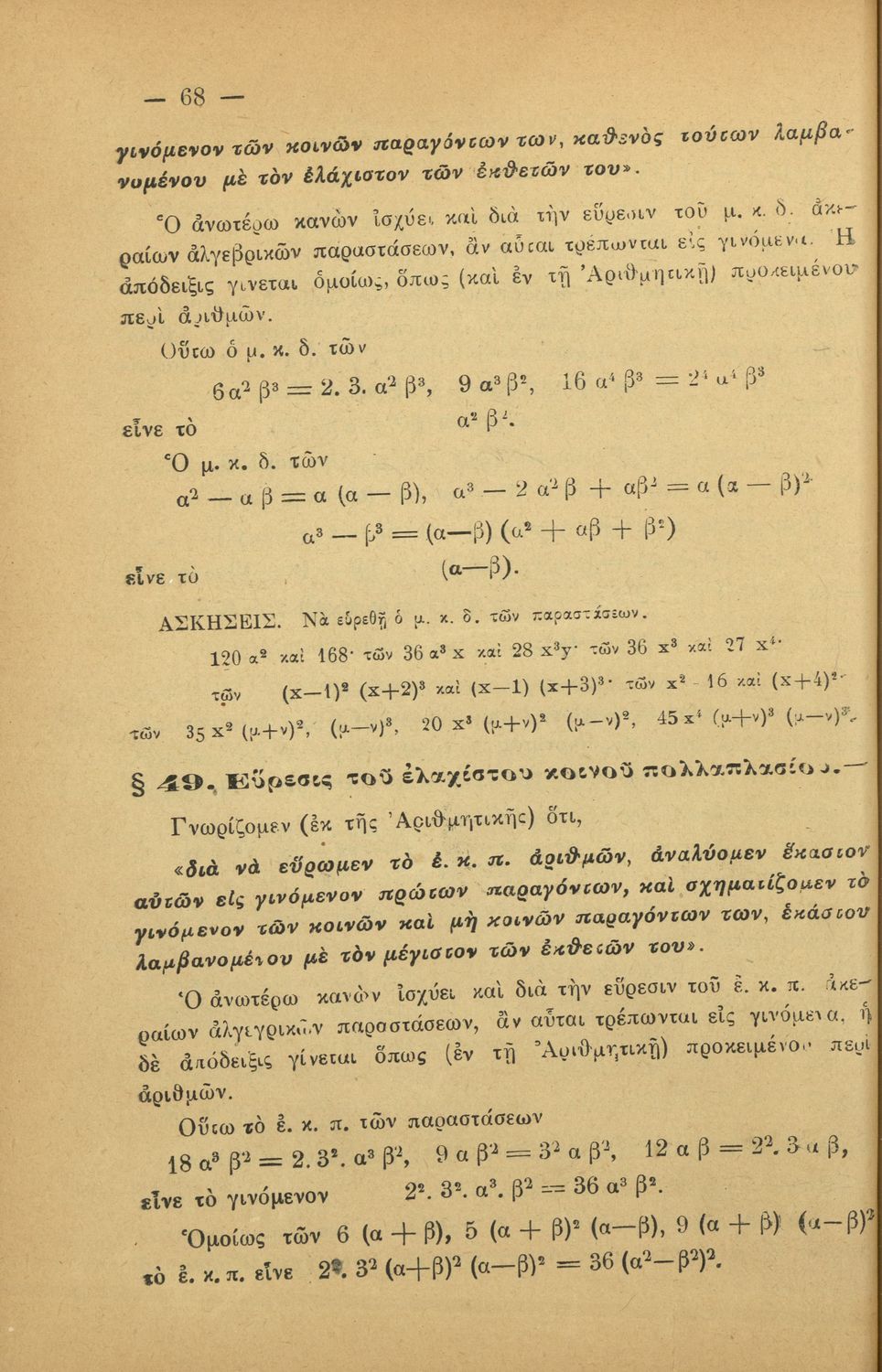 Σχολικό εγχειρίδιο Άλγεβρας για τα Γυμνάσια χωρισμένο σε θεωρία και ασκήσεις. Ο συγγραφέας ήταν καθηγητής στο Πανεπιστήμιο Αθηνών.