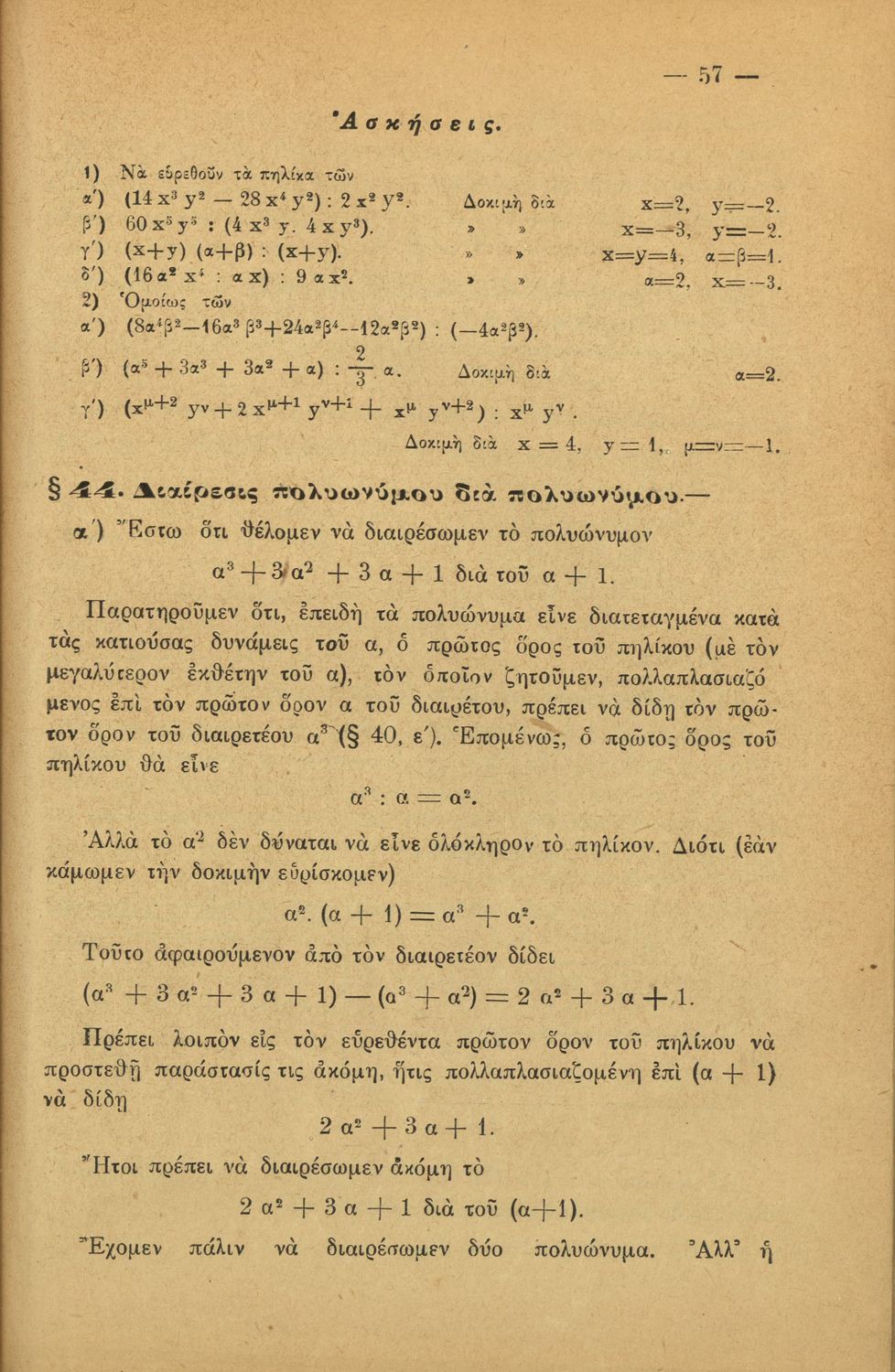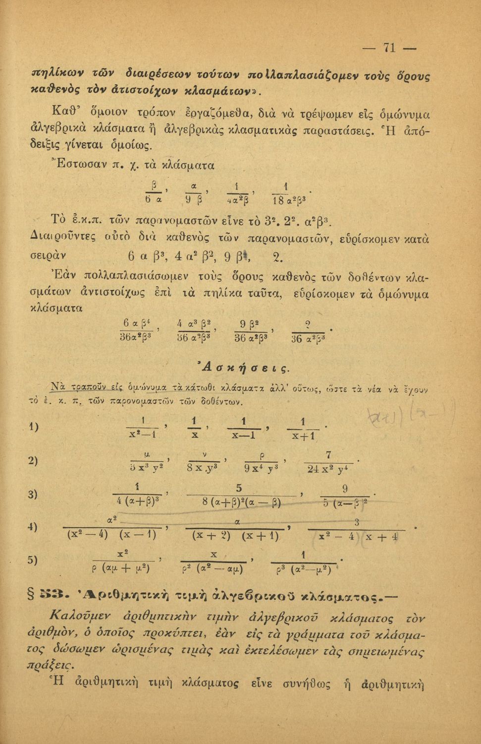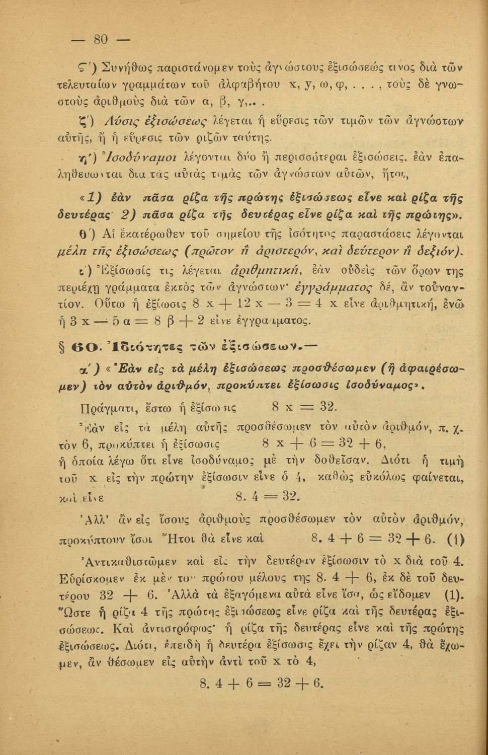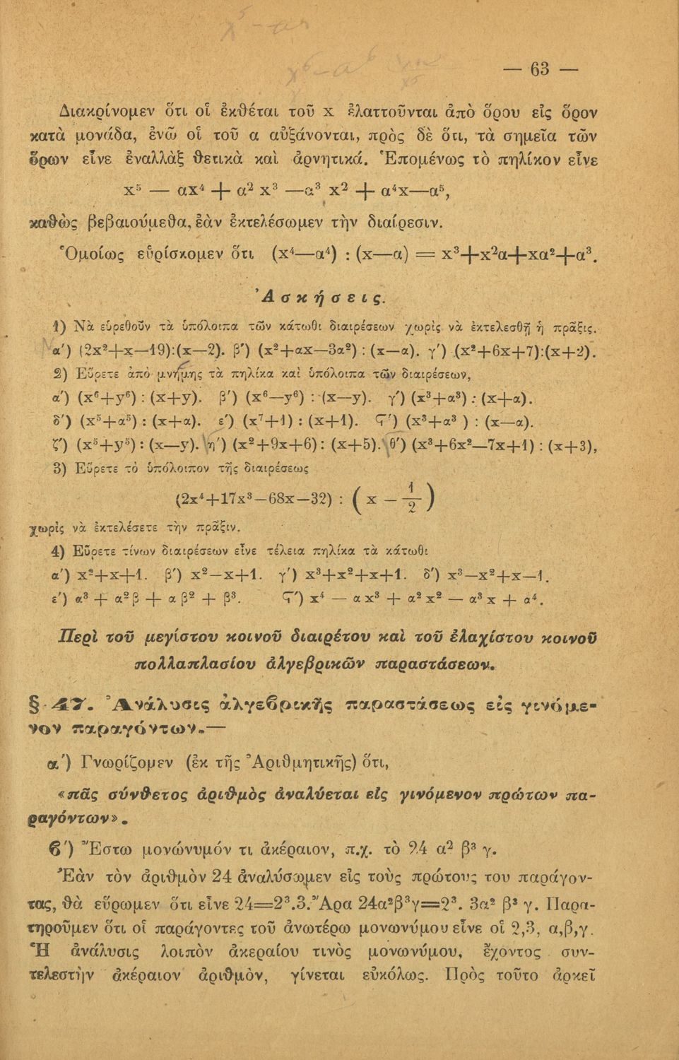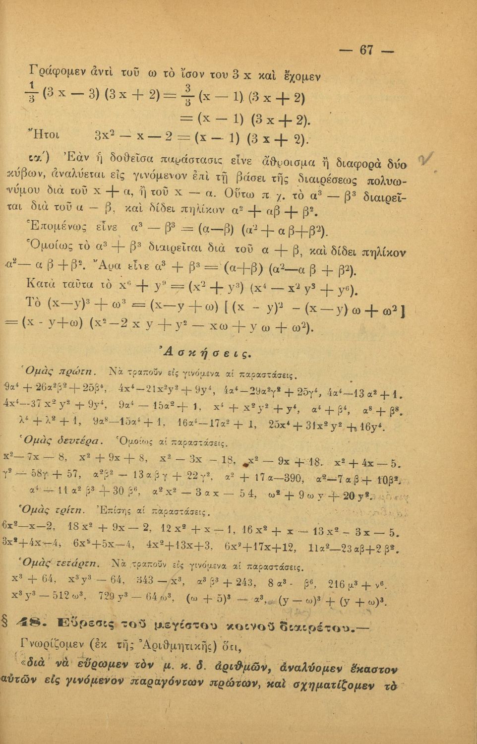 Σχολικό εγχειρίδιο Άλγεβρας για τα Γυμνάσια χωρισμένο σε θεωρία και ασκήσεις. Ο συγγραφέας ήταν καθηγητής στο Πανεπιστήμιο Αθηνών.